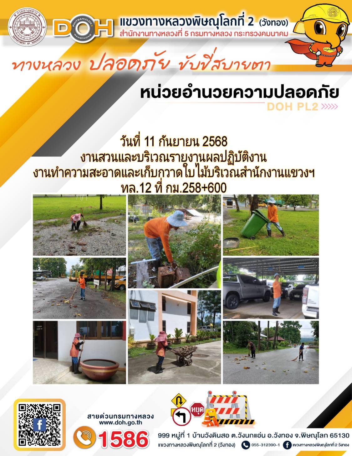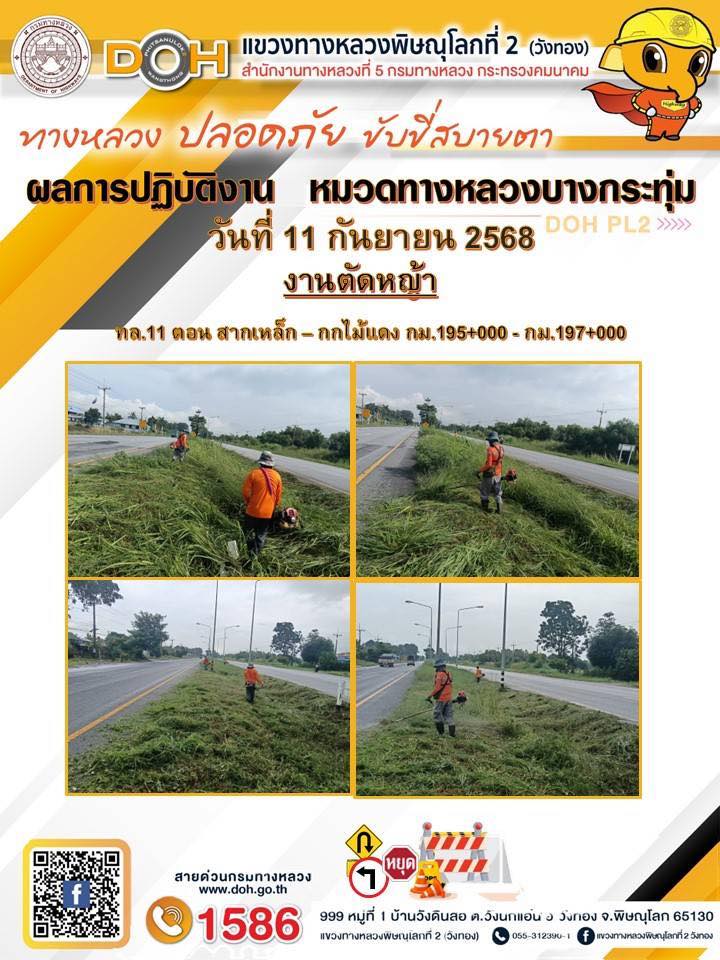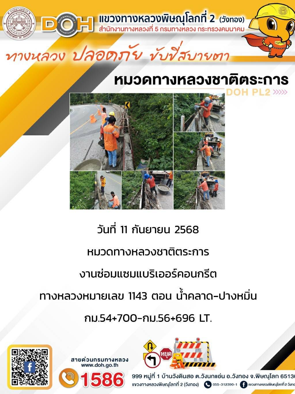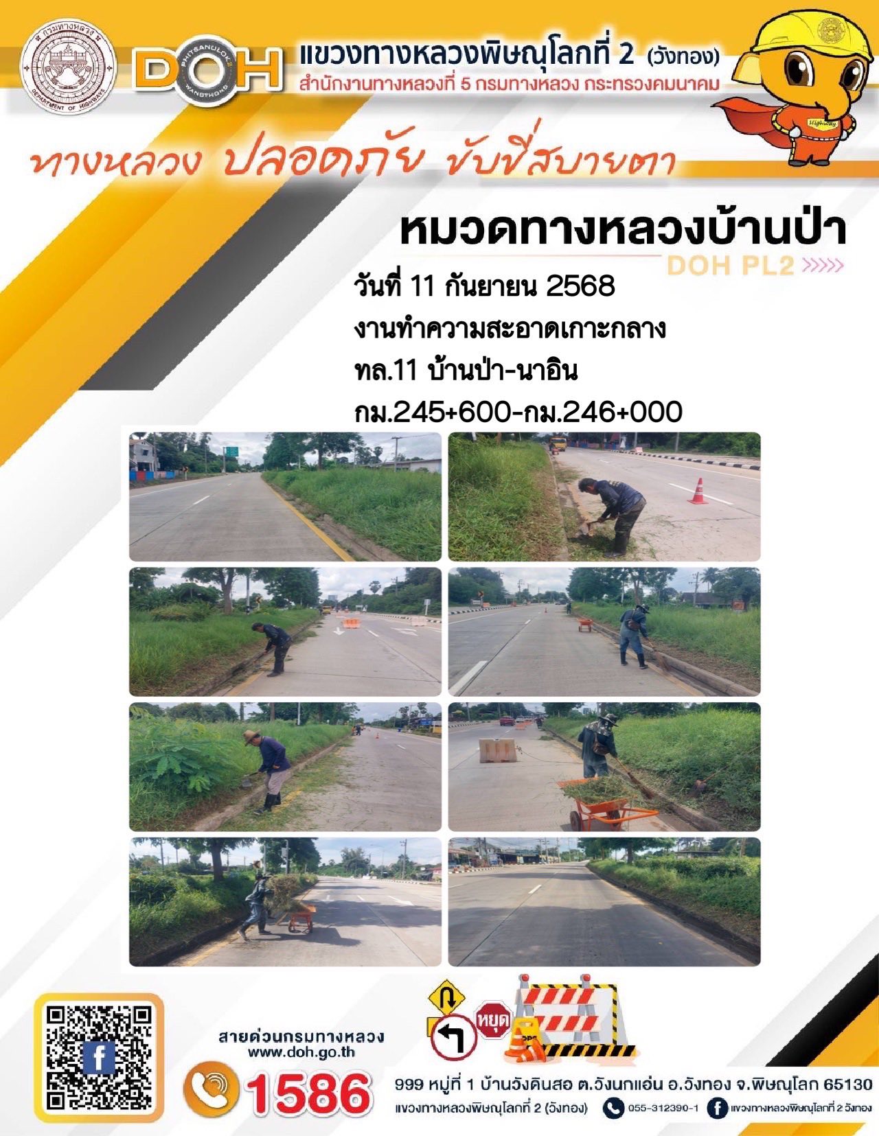 การปฏิบัติงานของ หมวดทางหลวง และ หน่วยงานในสังกัด เพื่ออำนวยความสะดวก และปลอดภัยให้กับประชาชนผู้ใช้เส้นทาง ประจำวันพฤหัสบดีที่ 11 กันยายน 2568