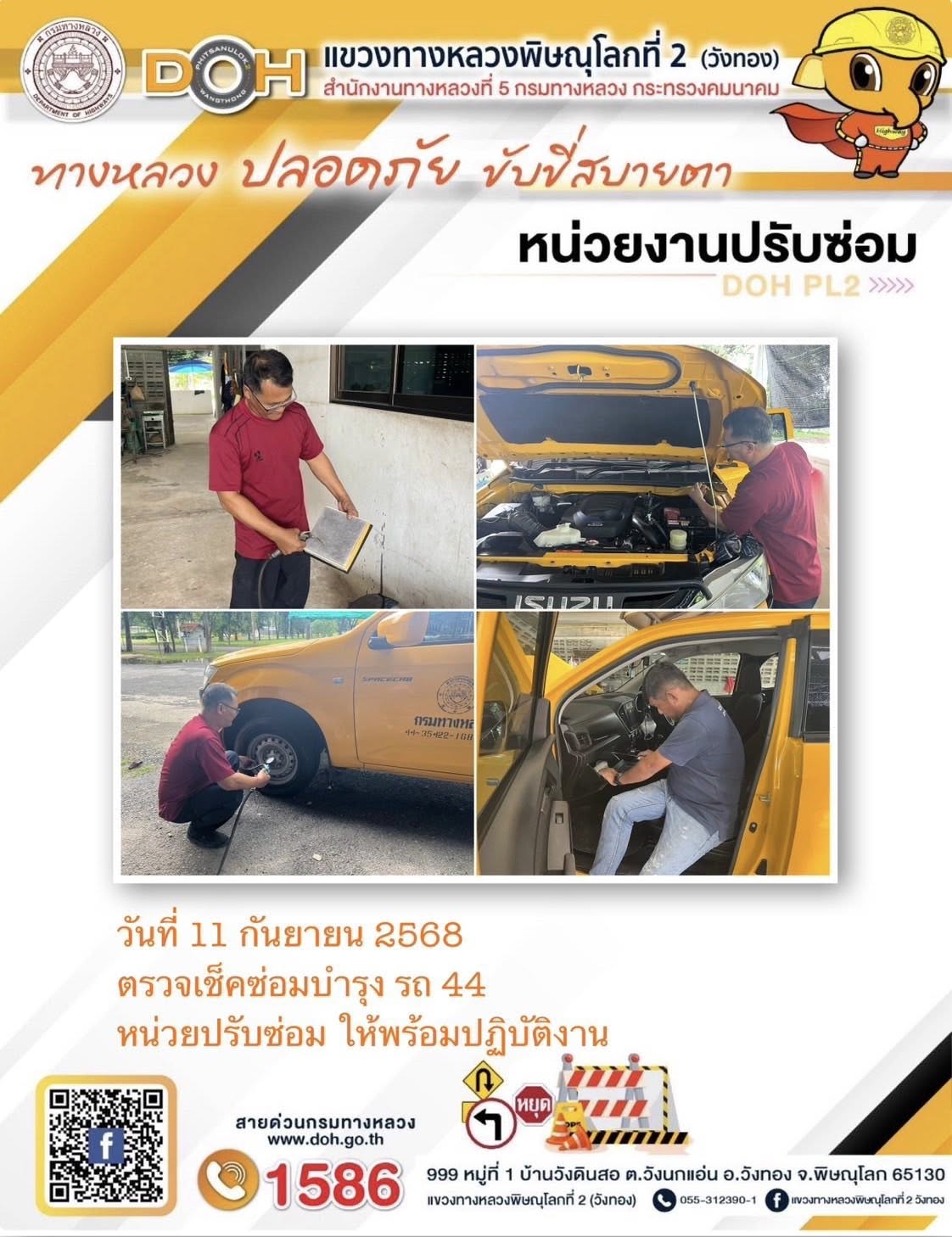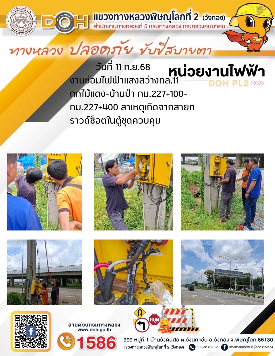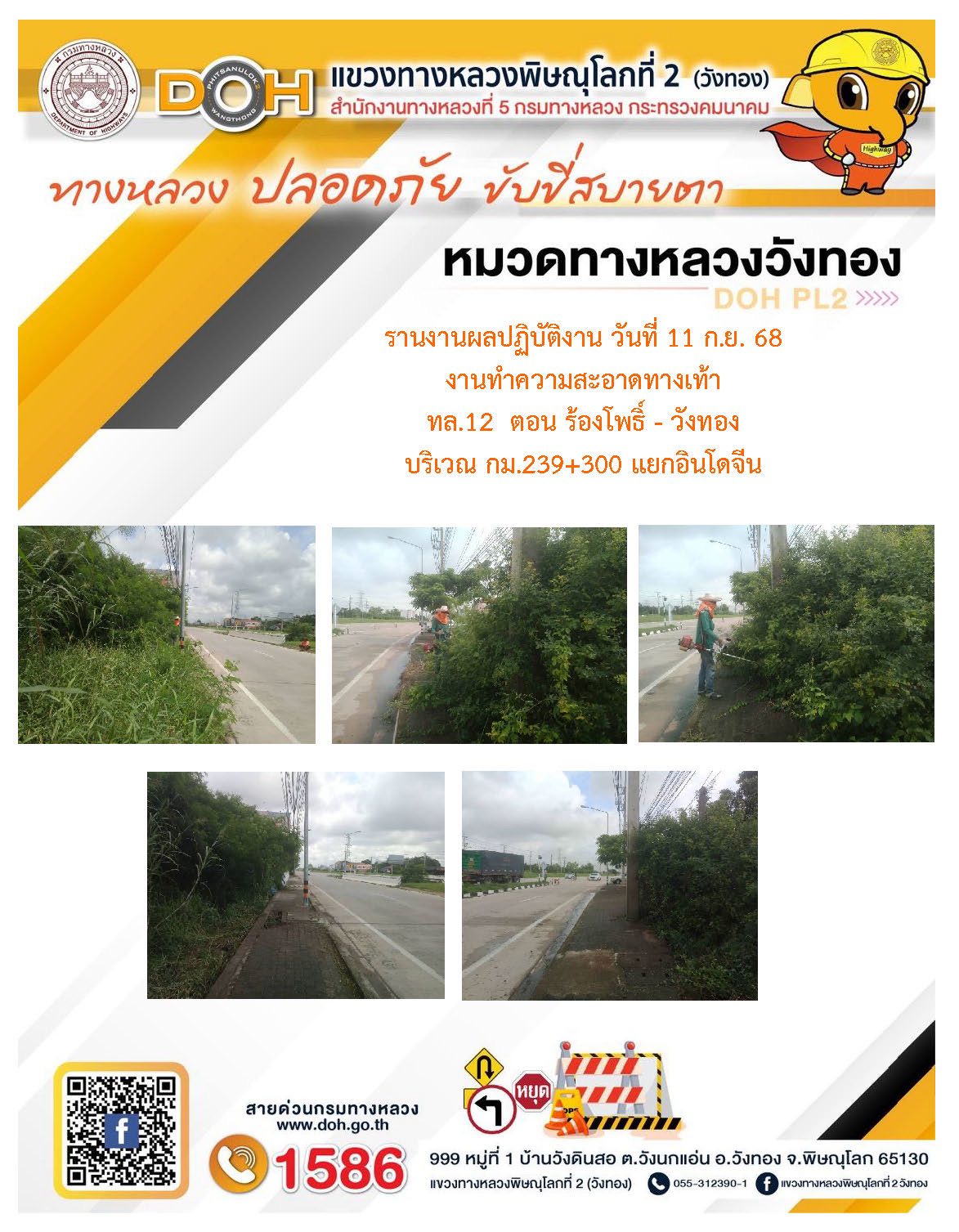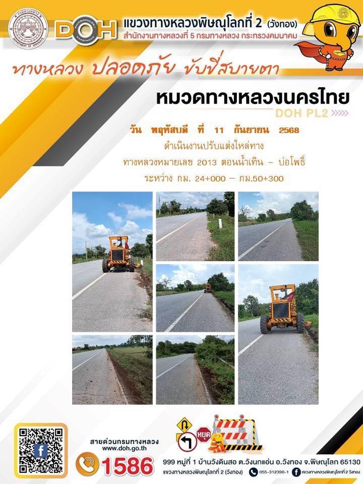 การปฏิบัติงานของ หมวดทางหลวง และ หน่วยงานในสังกัด เพื่ออำนวยความสะดวก และปลอดภัยให้กับประชาชนผู้ใช้เส้นทาง ประจำวันพฤหัสบดีที่ 11 กันยายน 2568
