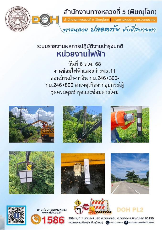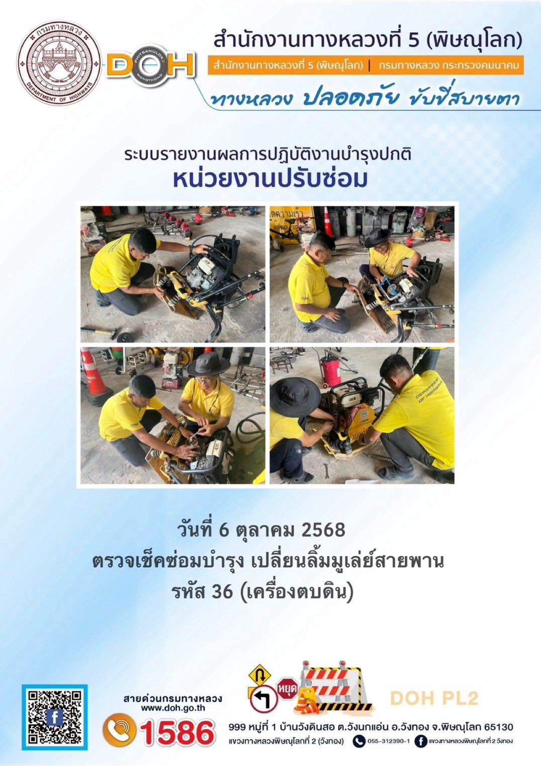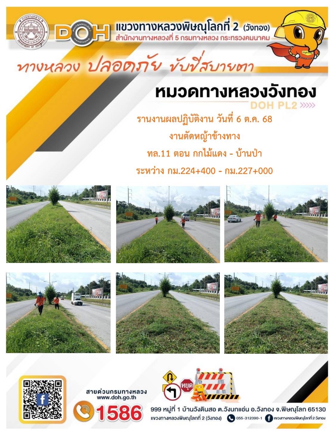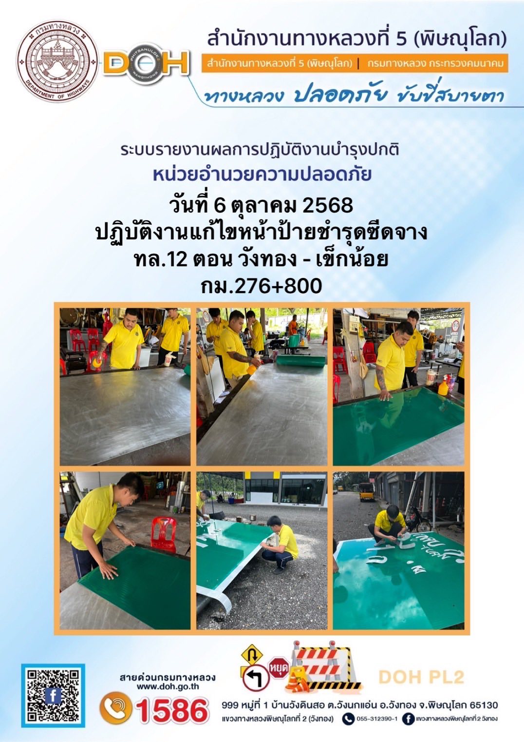 การปฏิบัติงานของ หมวดทางหลวง และ หน่วยงานในสังกัด เพื่ออำนวยความสะดวก และปลอดภัยให้กับประชาชนผู้ใช้เส้นทาง ประจำวันจันทร์ ที่ 6 ตุลาคม 2568