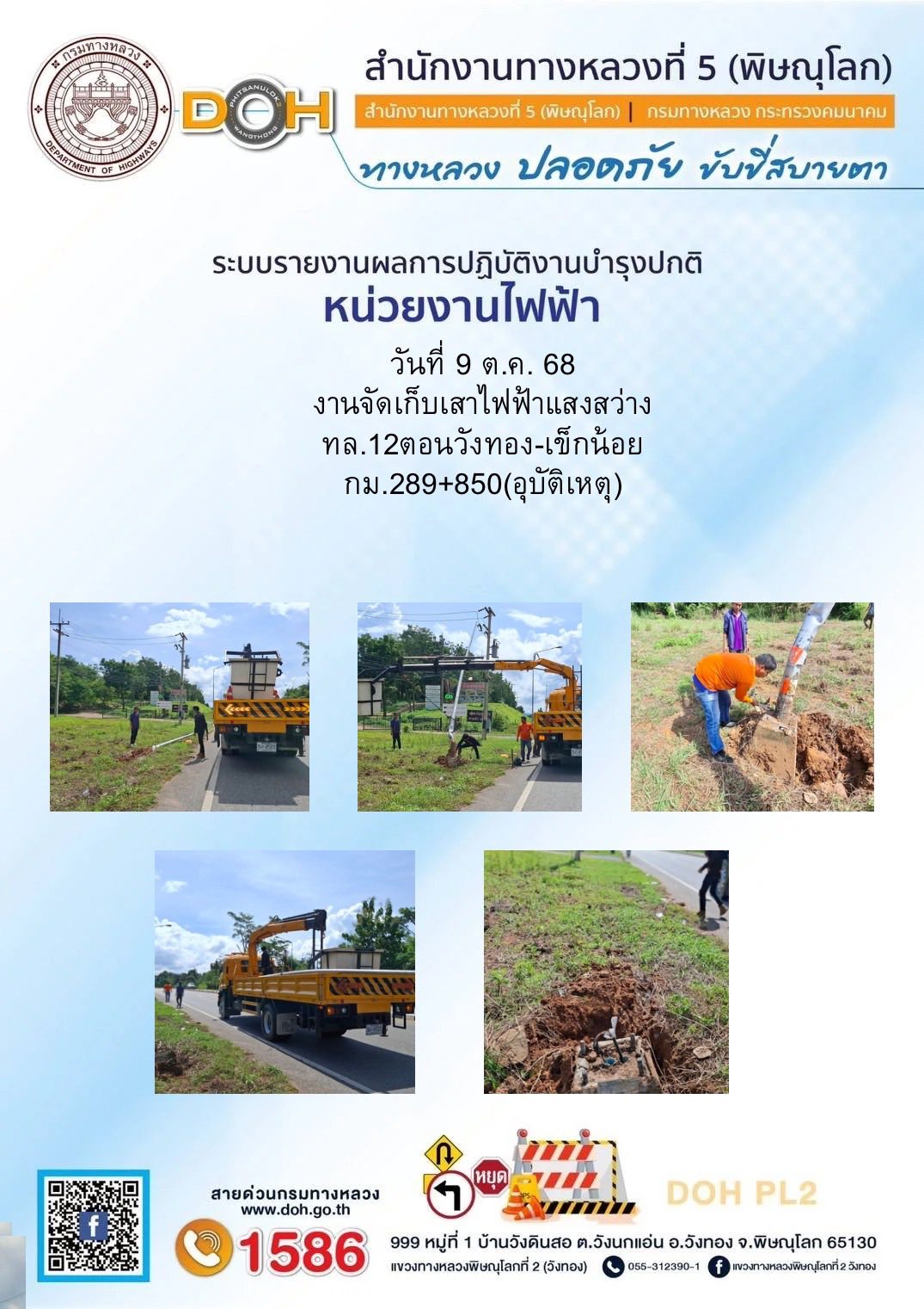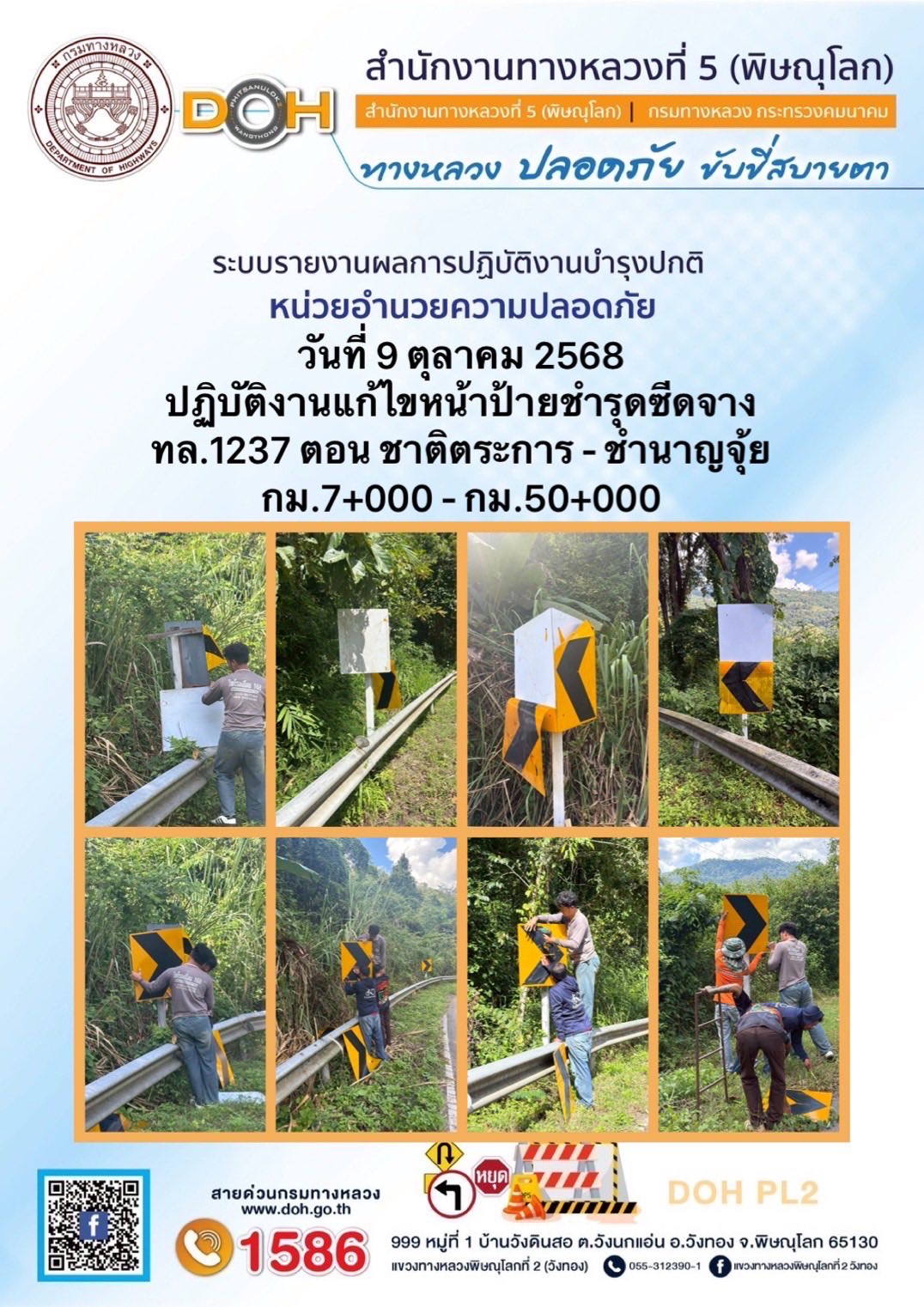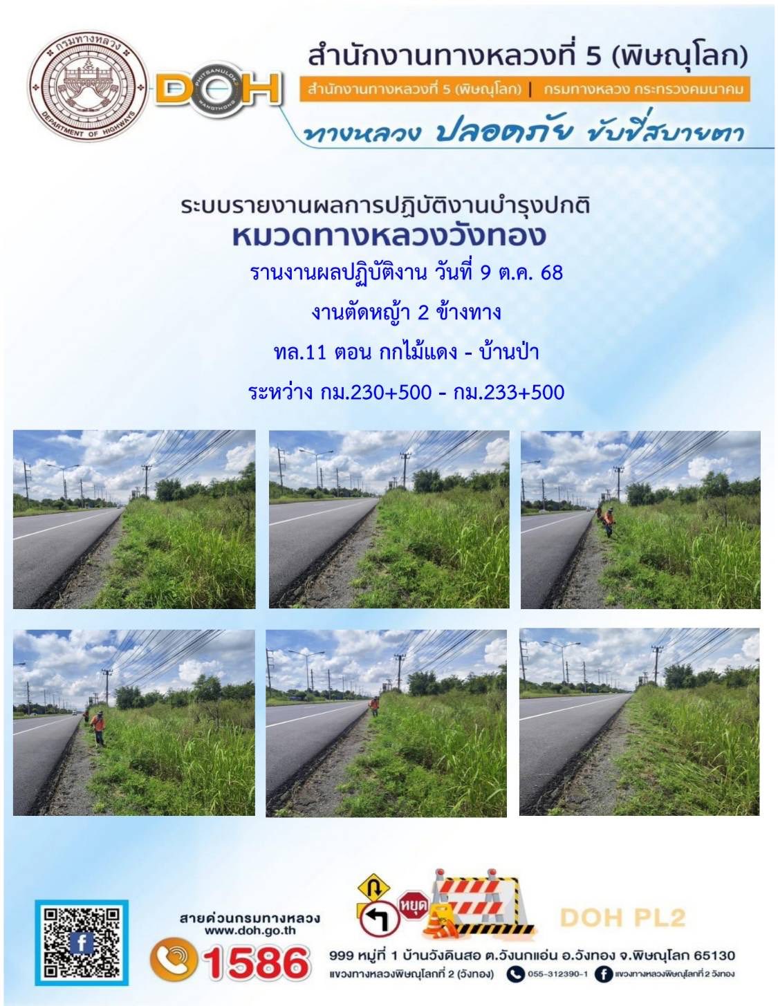 การปฏิบัติงานของ หมวดทางหลวง และ หน่วยงานในสังกัด เพื่ออำนวยความสะดวก และปลอดภัยให้กับประชาชนผู้ใช้เส้นทาง ประจำวันพฤหัสบดี ที่ 9 ตุลาคม 2568