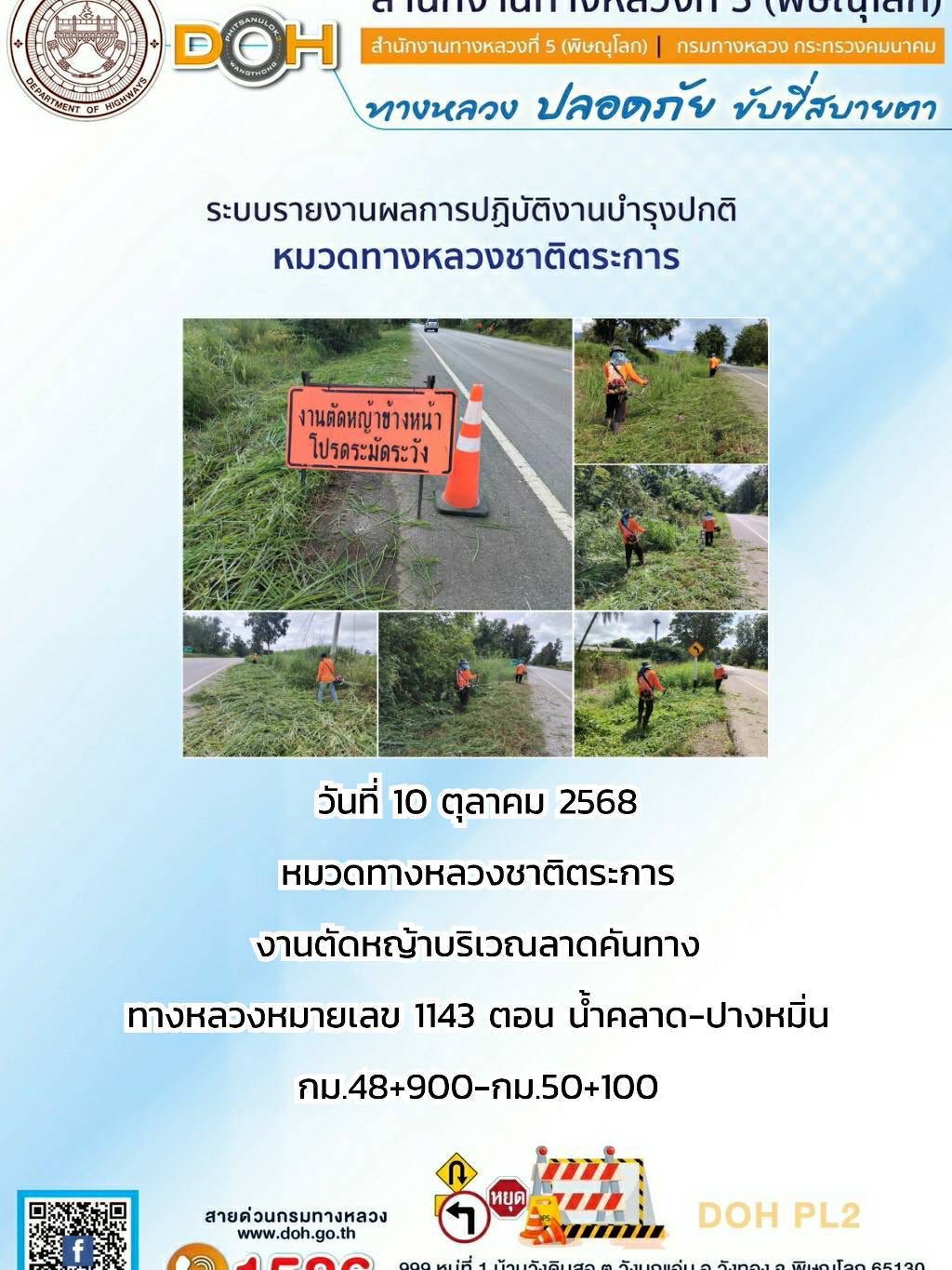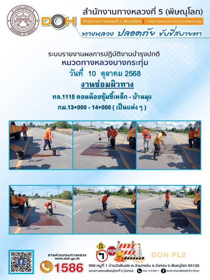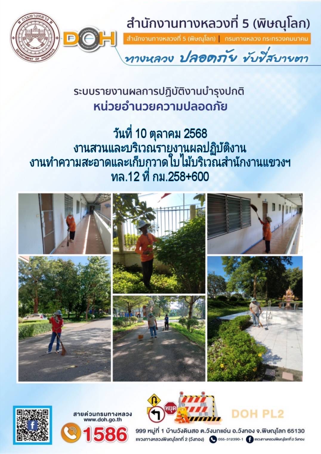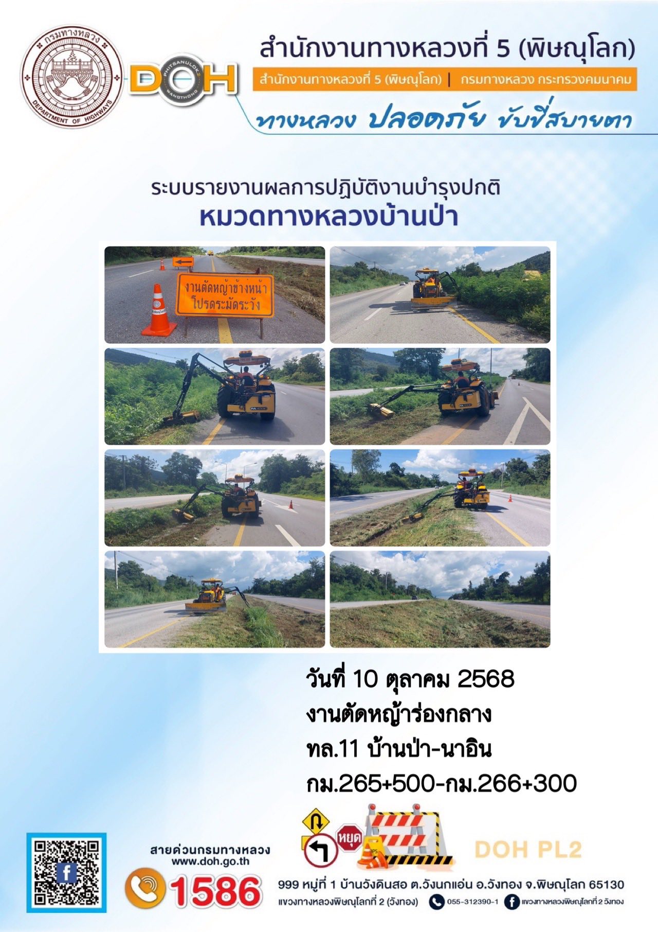 การปฏิบัติงานของ หมวดทางหลวง และ หน่วยงานในสังกัด เพื่ออำนวยความสะดวก และปลอดภัยให้กับประชาชนผู้ใช้เส้นทาง ประจำวันศุกร์ ที่ 10 ตุลาคม 2568