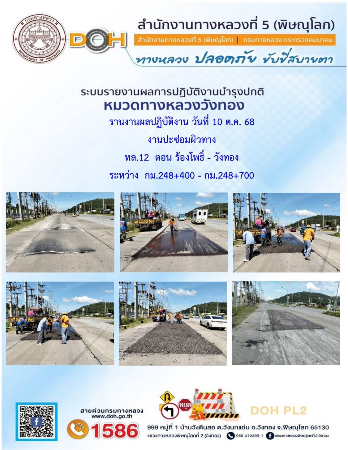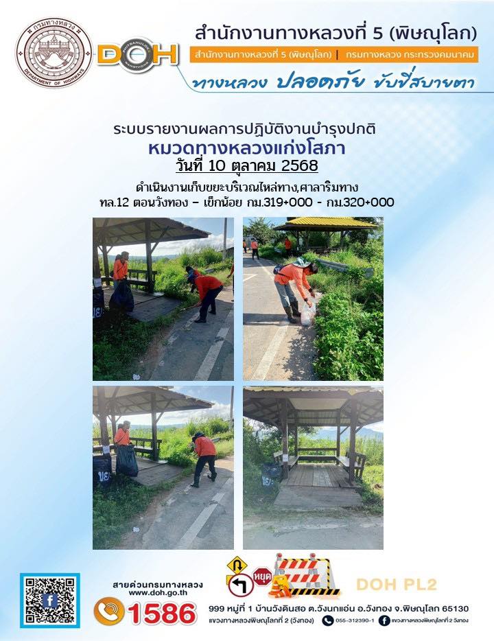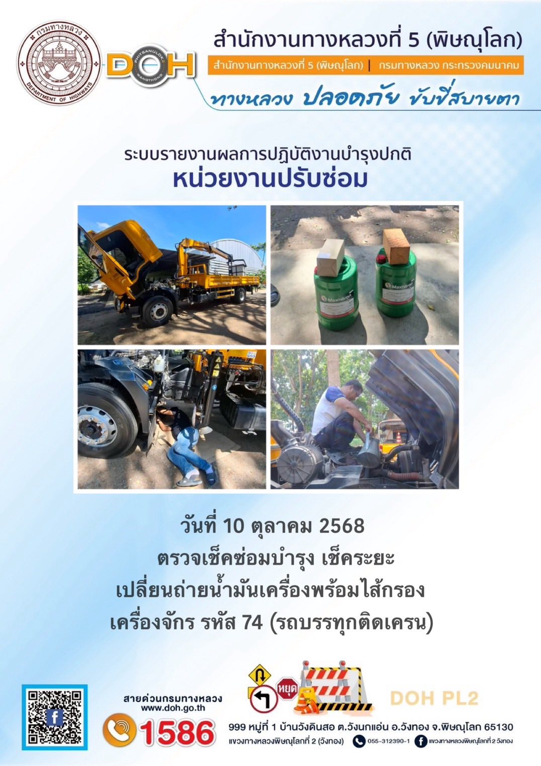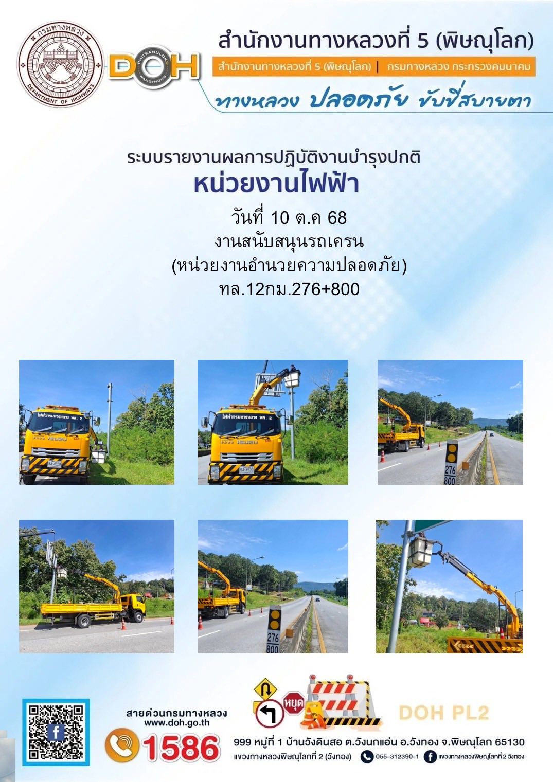 การปฏิบัติงานของ หมวดทางหลวง และ หน่วยงานในสังกัด เพื่ออำนวยความสะดวก และปลอดภัยให้กับประชาชนผู้ใช้เส้นทาง ประจำวันศุกร์ ที่ 10 ตุลาคม 2568