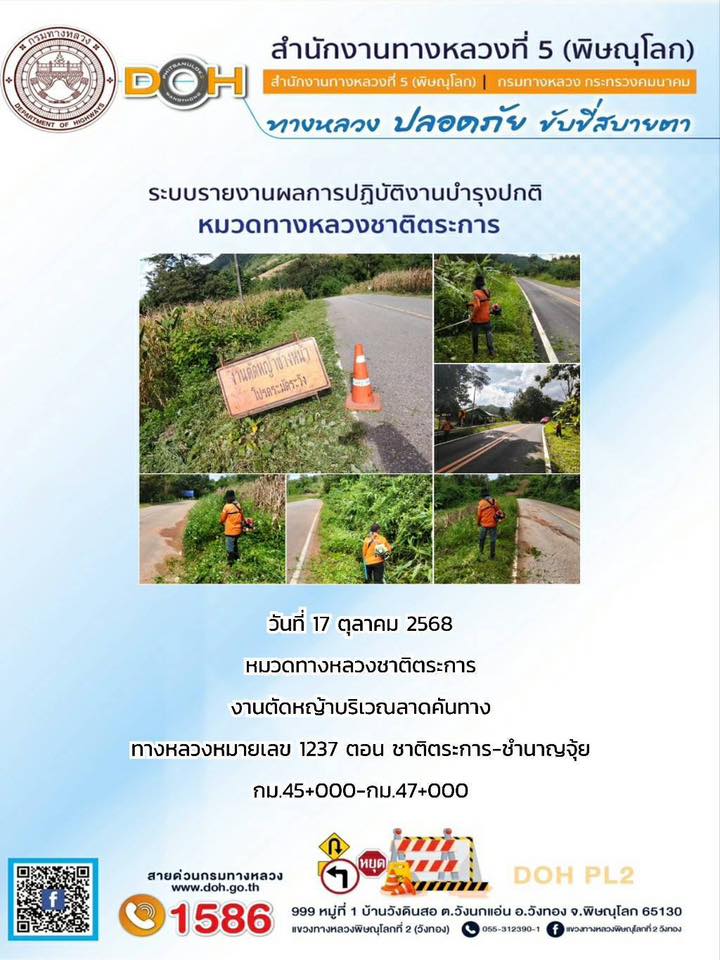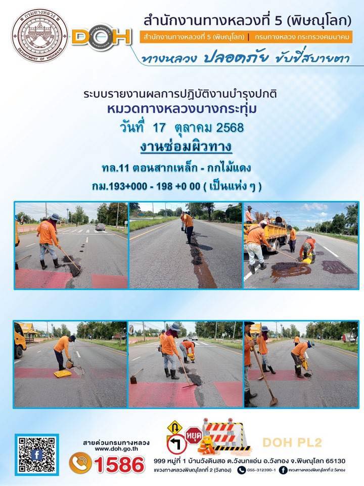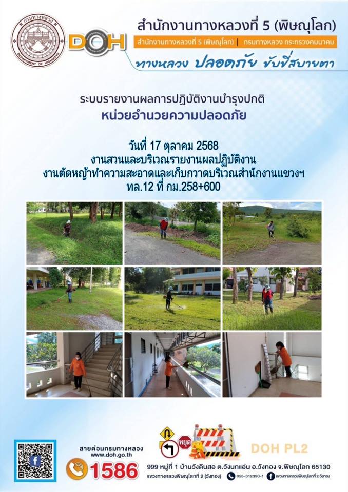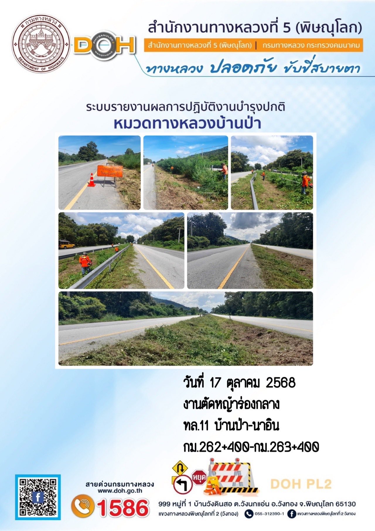 การปฏิบัติงานของ หมวดทางหลวง และ หน่วยงานในสังกัด เพื่ออำนวยความสะดวก และปลอดภัยให้กับประชาชนผู้ใช้เส้นทาง ประจำวันศุกร์ ที่ 17 ตุลาคม 2568