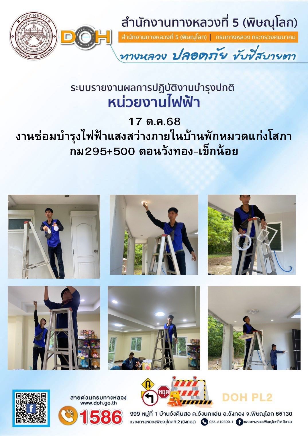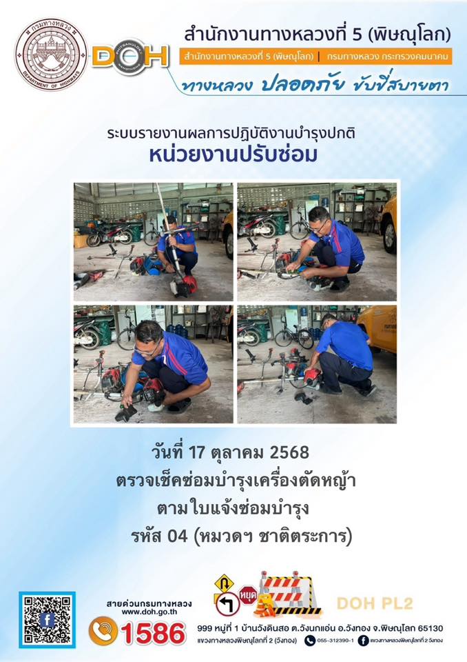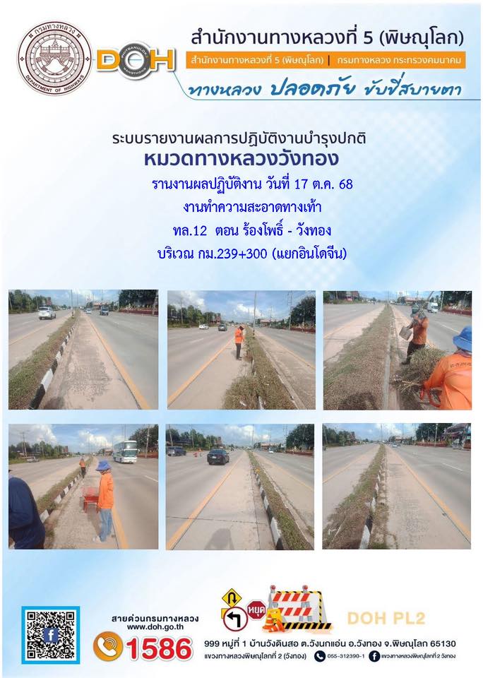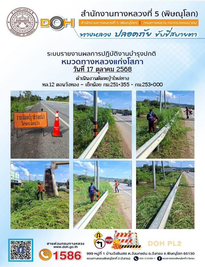 การปฏิบัติงานของ หมวดทางหลวง และ หน่วยงานในสังกัด เพื่ออำนวยความสะดวก และปลอดภัยให้กับประชาชนผู้ใช้เส้นทาง ประจำวันศุกร์ ที่ 17 ตุลาคม 2568
