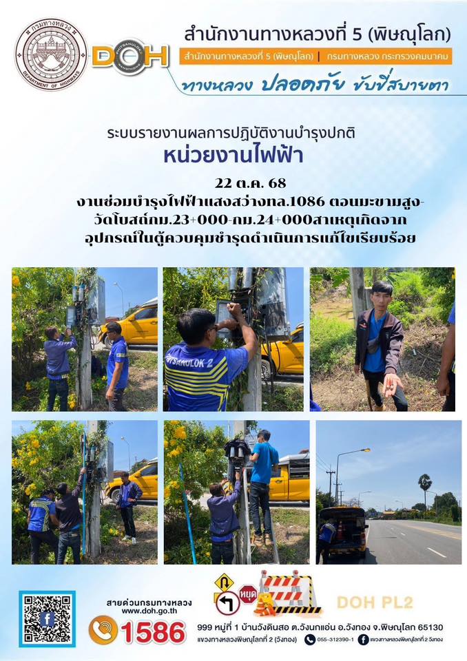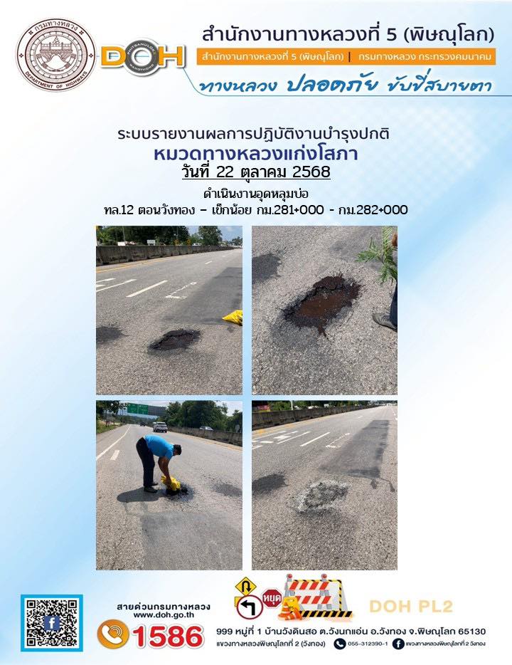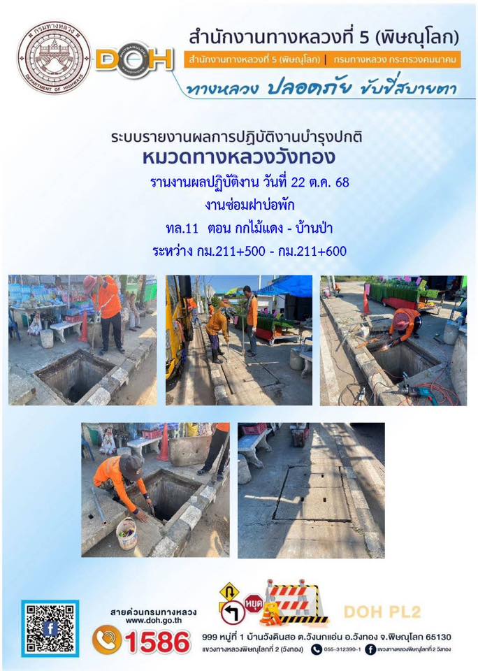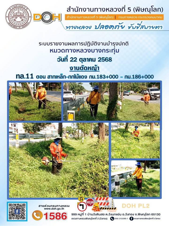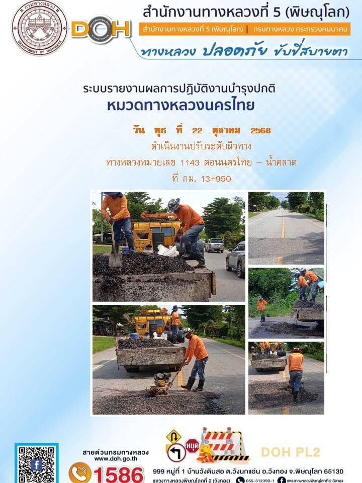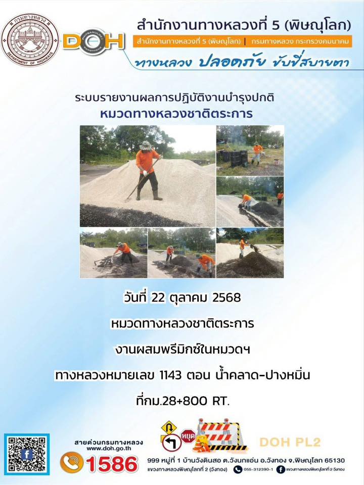 การปฏิบัติงานของ หมวดทางหลวง และ หน่วยงานในสังกัด เพื่ออำนวยความสะดวก และปลอดภัยให้กับประชาชนผู้ใช้เส้นทาง ประจำวันพุธ ที่ 22 ตุลาคม 2568