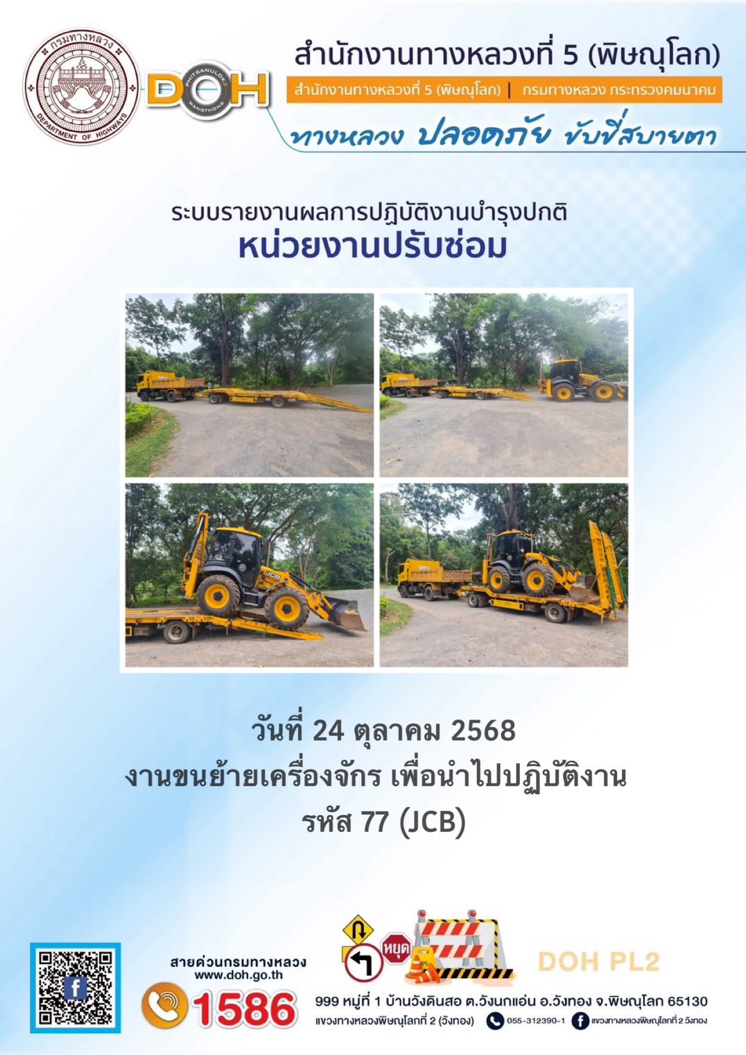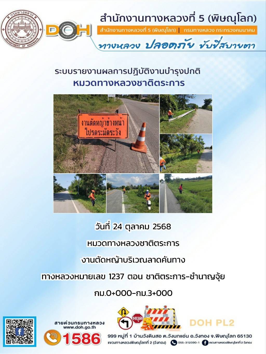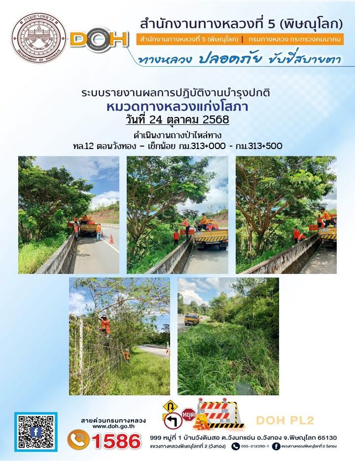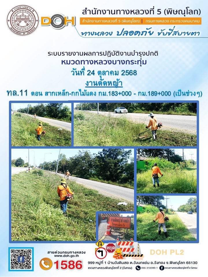 การปฏิบัติงานของ หมวดทางหลวง และ หน่วยงานในสังกัด เพื่ออำนวยความสะดวก และปลอดภัยให้กับประชาชนผู้ใช้เส้นทาง ประจำวันศุกร์ ที่ 24 ตุลาคม 2568