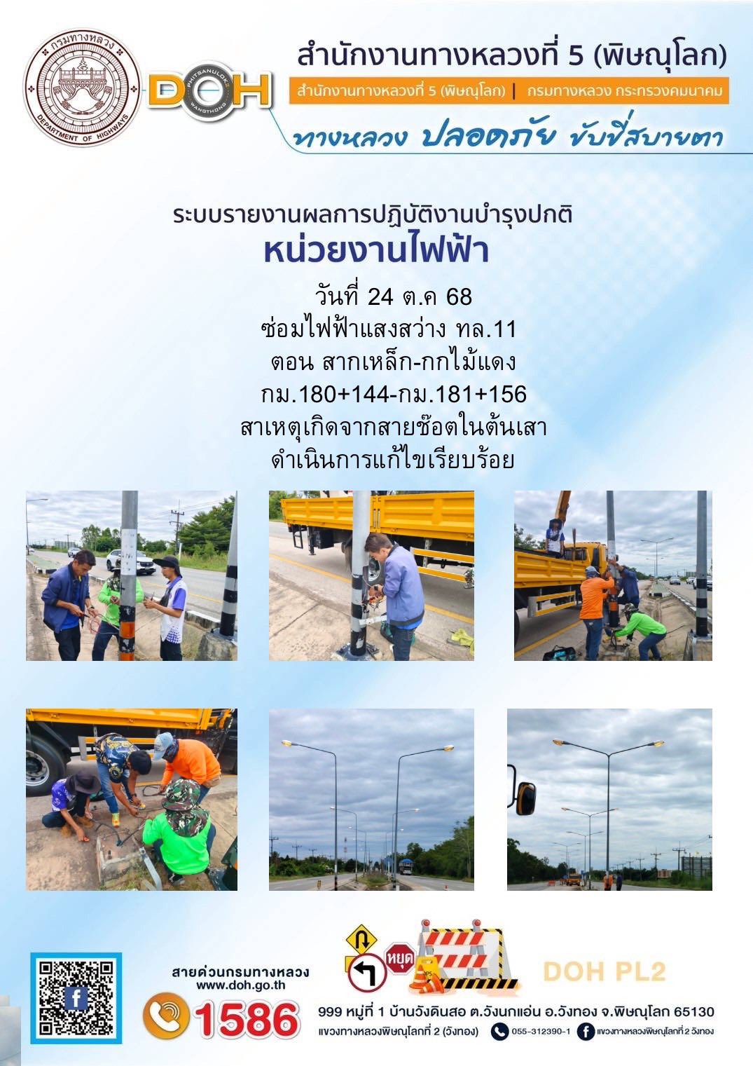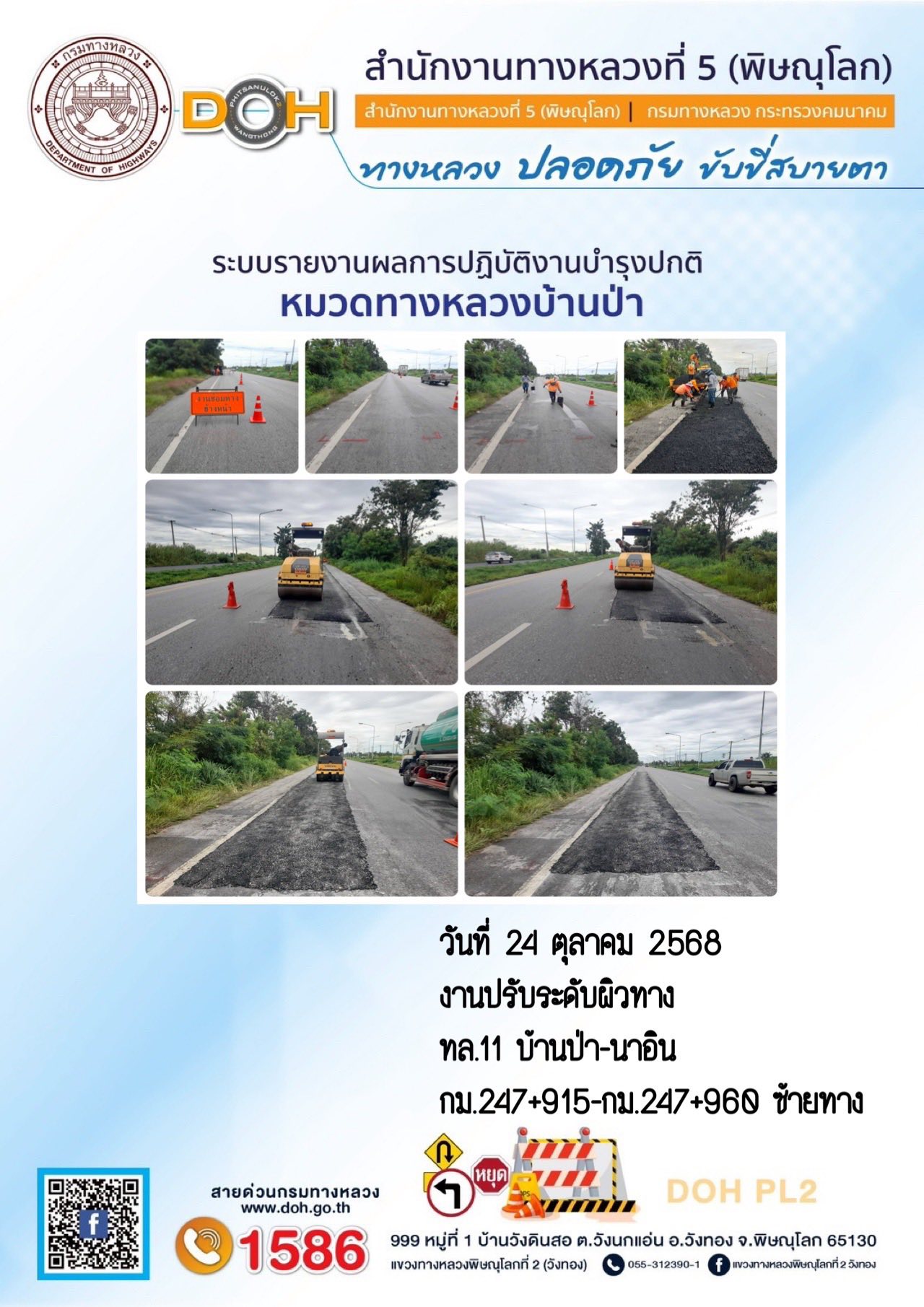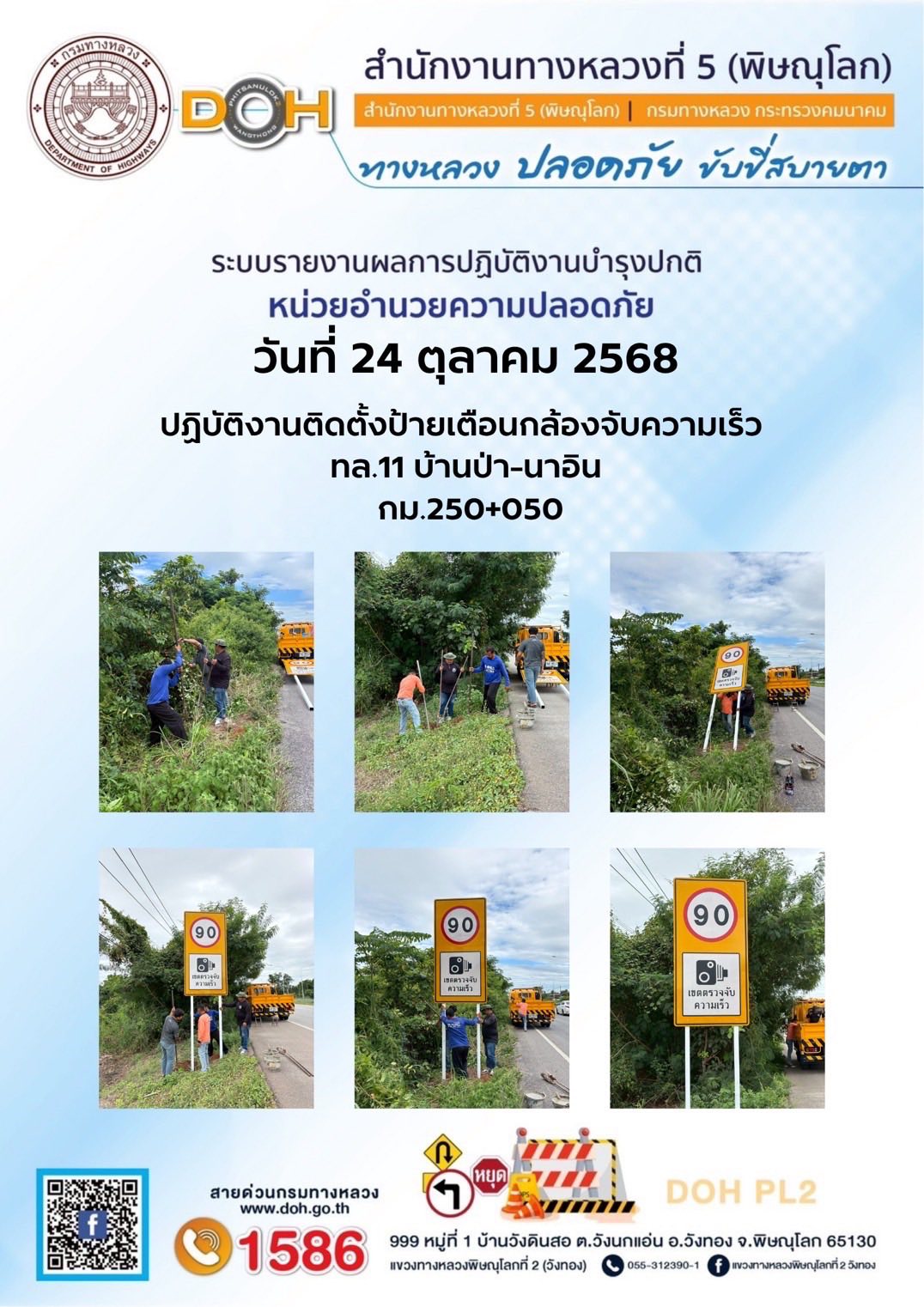 การปฏิบัติงานของ หมวดทางหลวง และ หน่วยงานในสังกัด เพื่ออำนวยความสะดวก และปลอดภัยให้กับประชาชนผู้ใช้เส้นทาง ประจำวันศุกร์ ที่ 24 ตุลาคม 2568