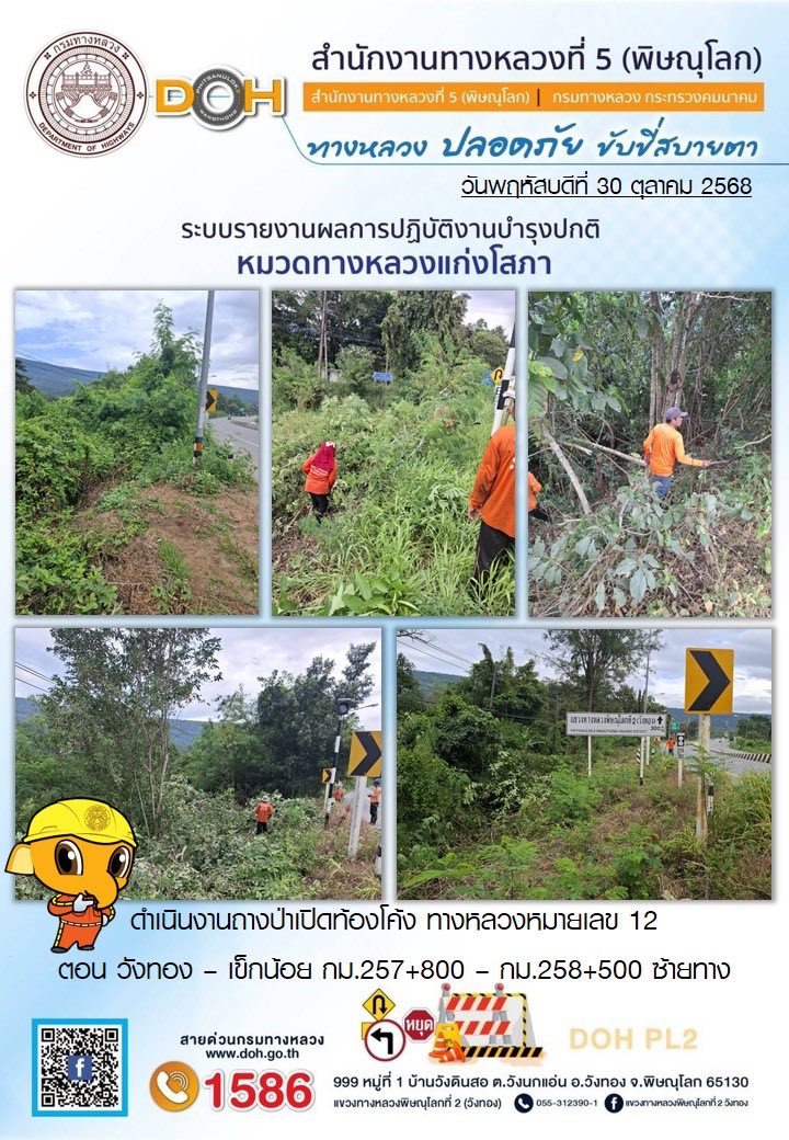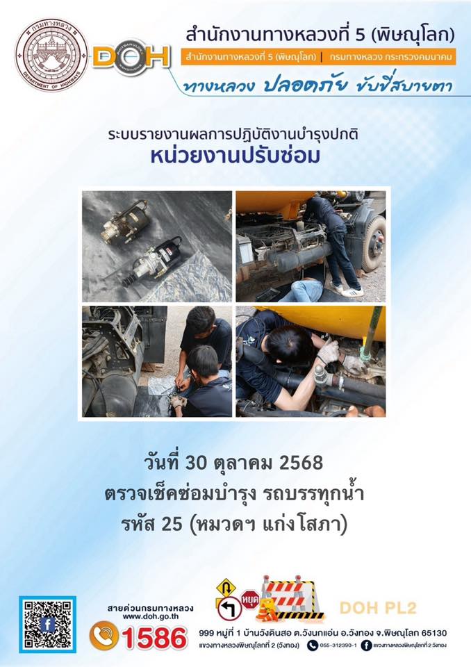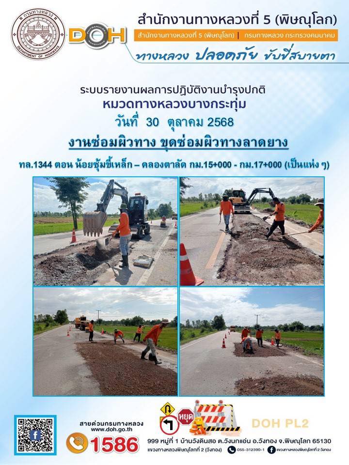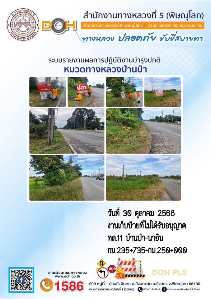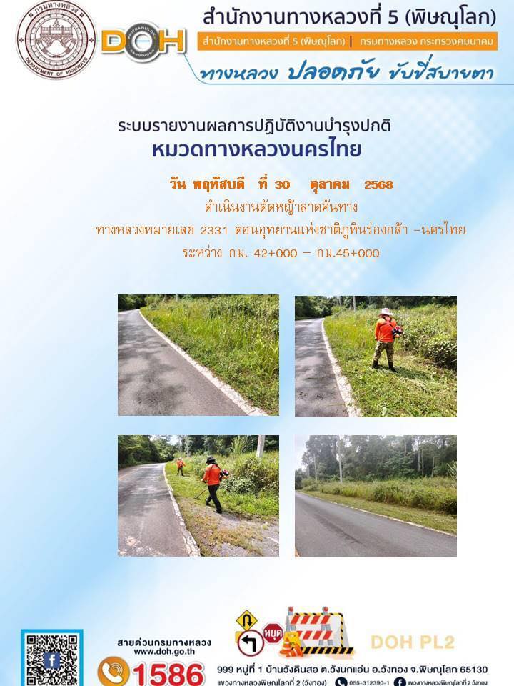 การปฏิบัติงานของ หมวดทางหลวง และ หน่วยงานในสังกัด เพื่ออำนวยความสะดวก และปลอดภัยให้กับประชาชนผู้ใช้เส้นทาง ประจำวันพฤหัสบดี ที่ 30 ตุลาคม 2568