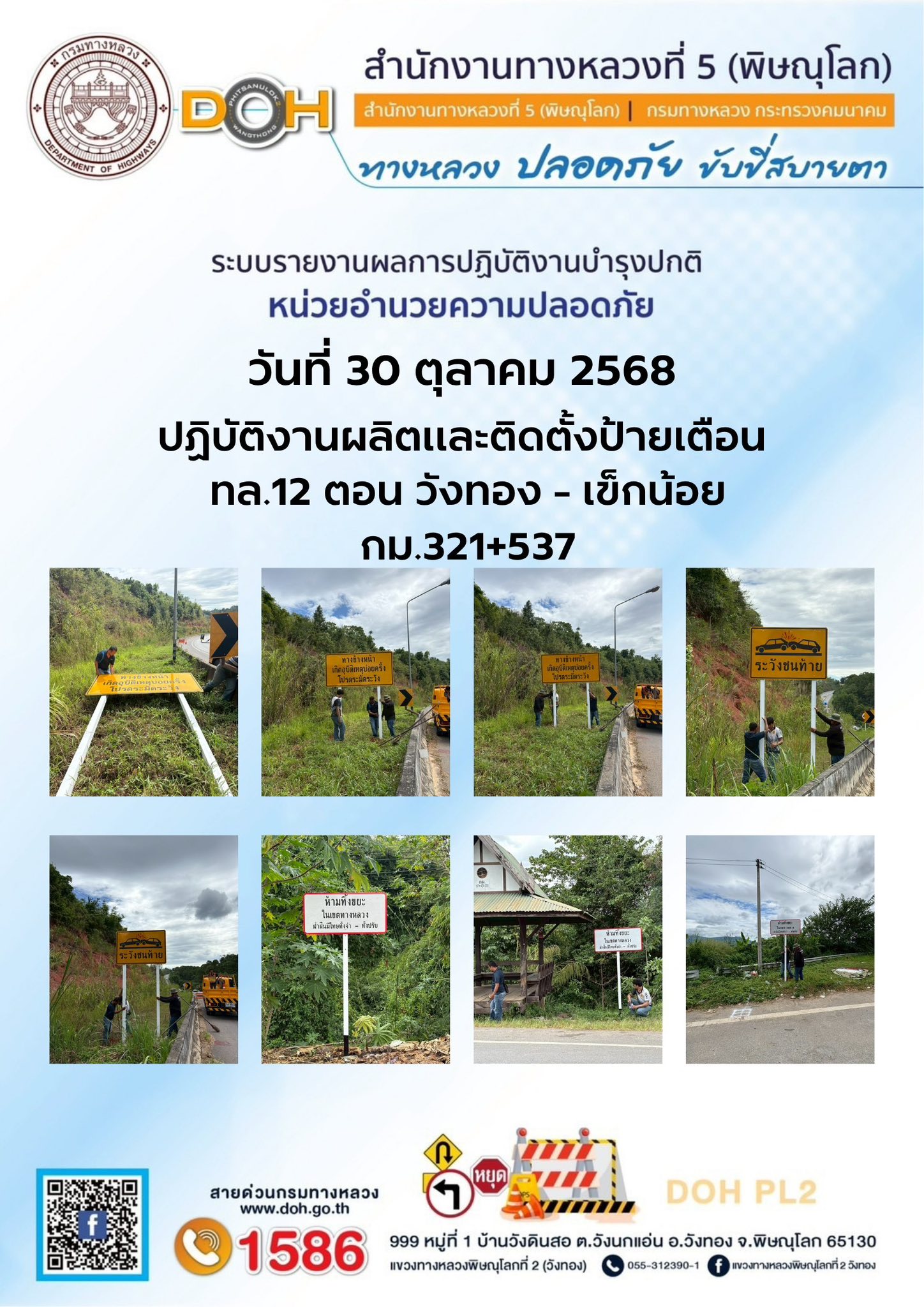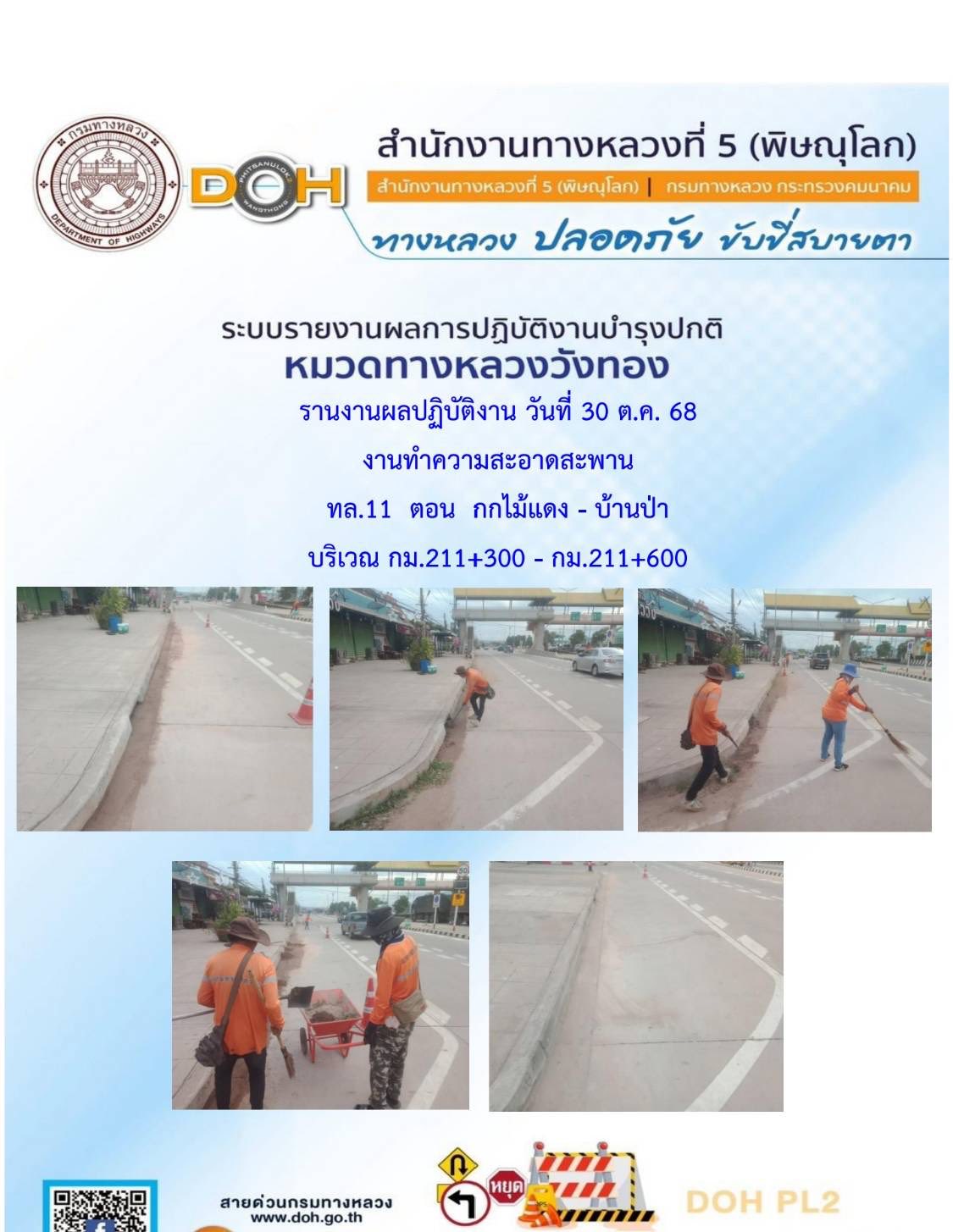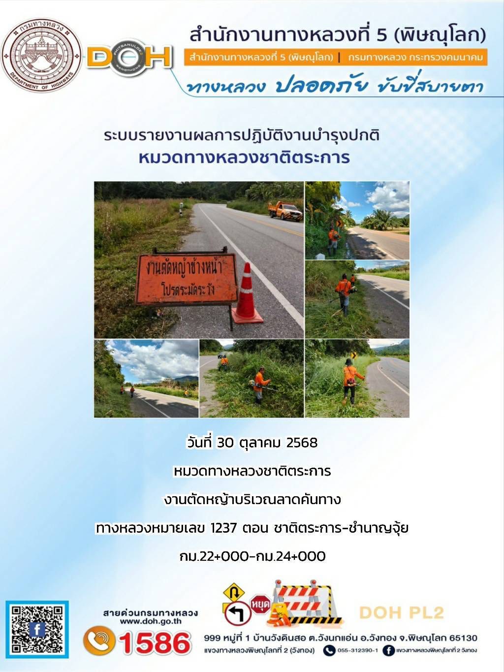 การปฏิบัติงานของ หมวดทางหลวง และ หน่วยงานในสังกัด เพื่ออำนวยความสะดวก และปลอดภัยให้กับประชาชนผู้ใช้เส้นทาง ประจำวันพฤหัสบดี ที่ 30 ตุลาคม 2568