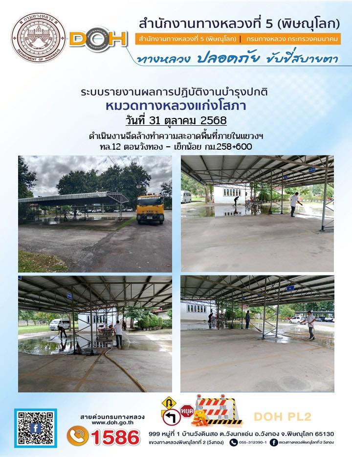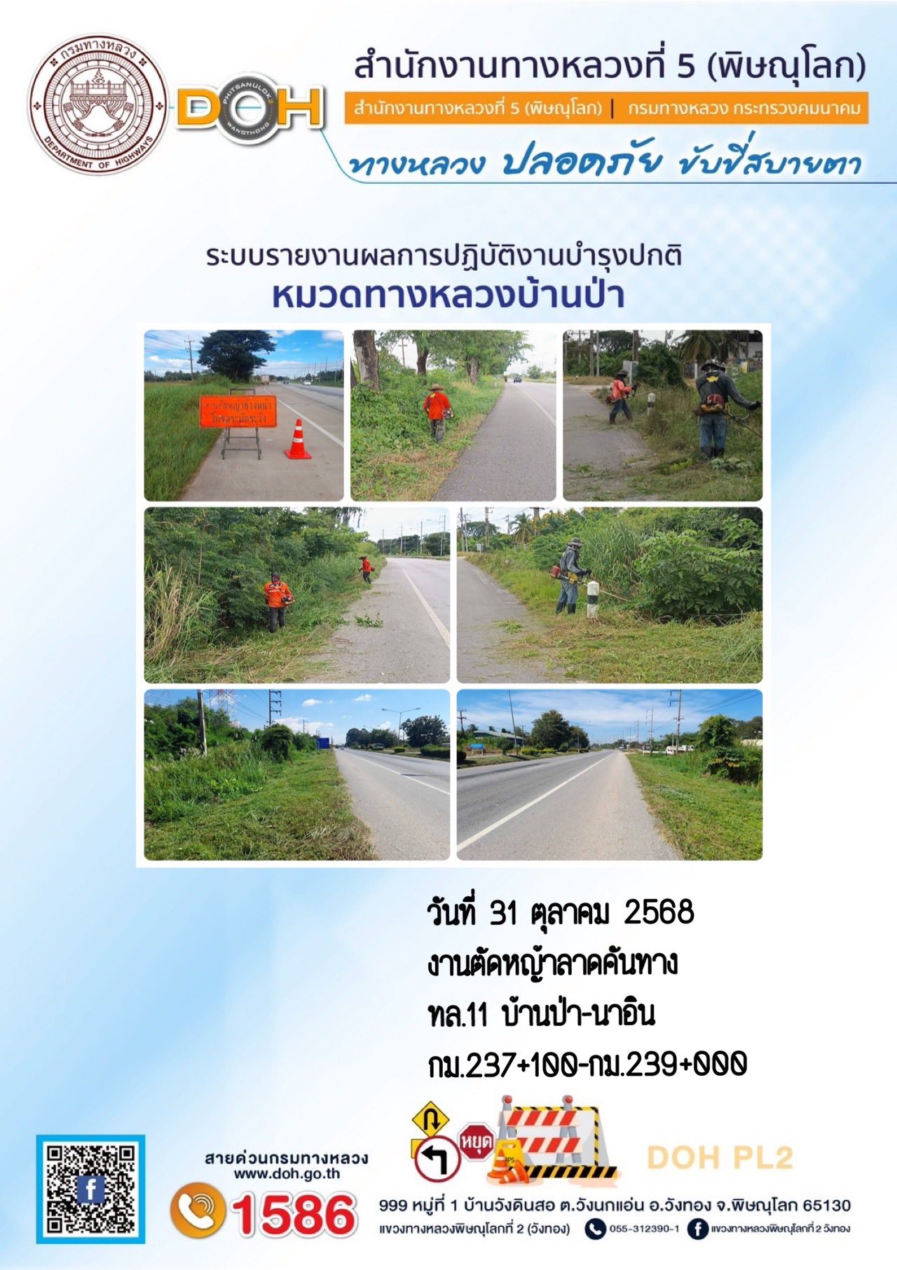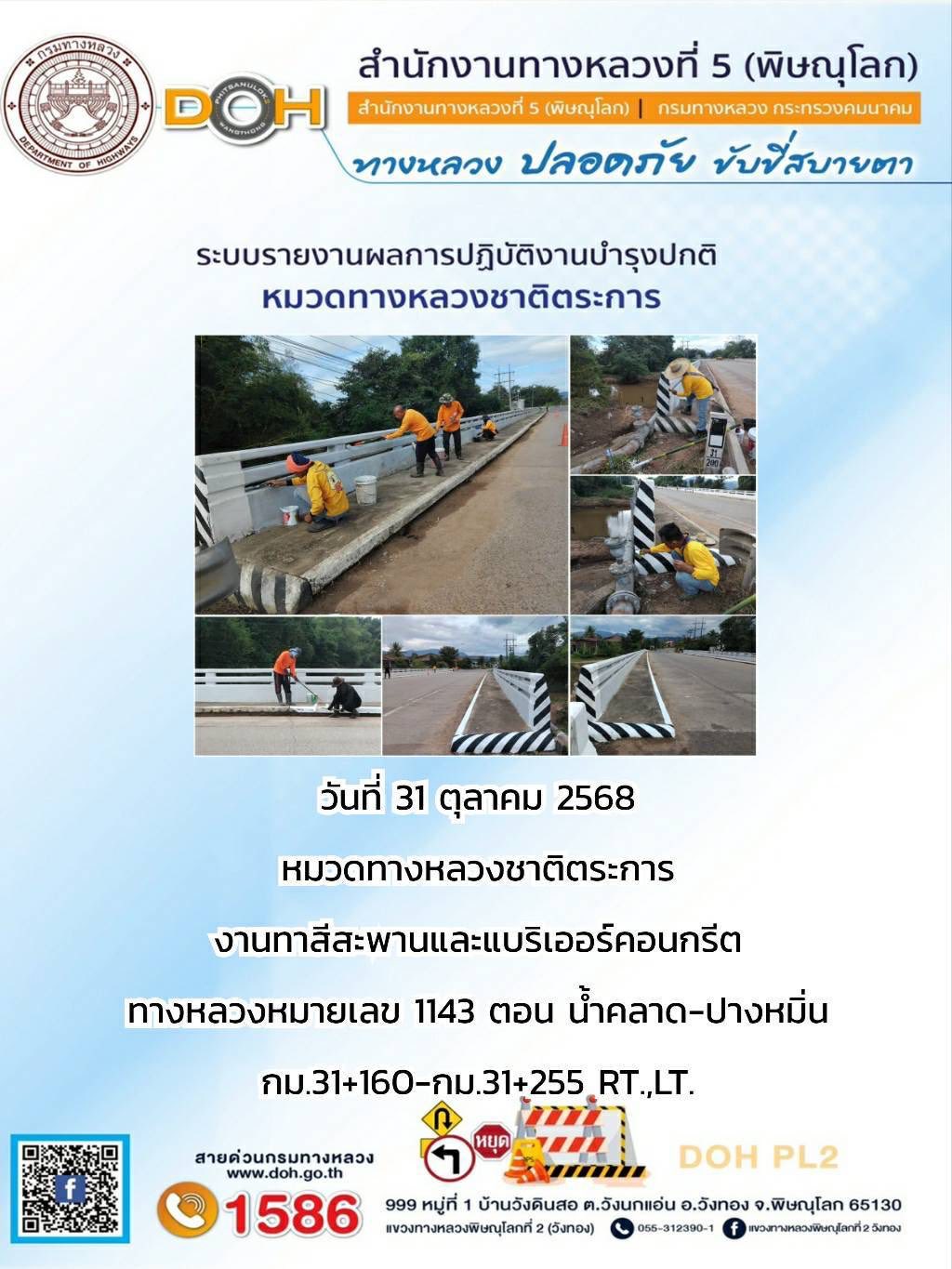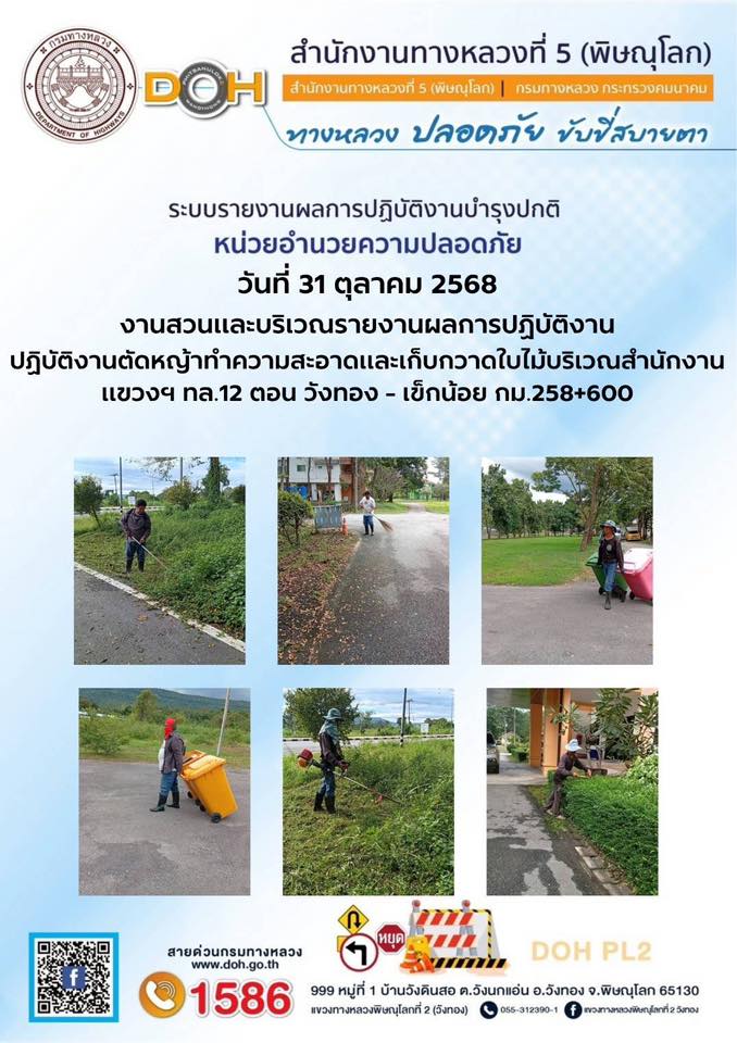 การปฏิบัติงานของ หมวดทางหลวง และ หน่วยงานในสังกัด เพื่ออำนวยความสะดวก และปลอดภัยให้กับประชาชนผู้ใช้เส้นทาง ประจำวันศุกร์ ที่ 31 ตุลาคม 2568