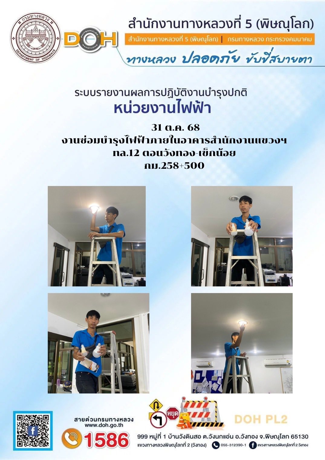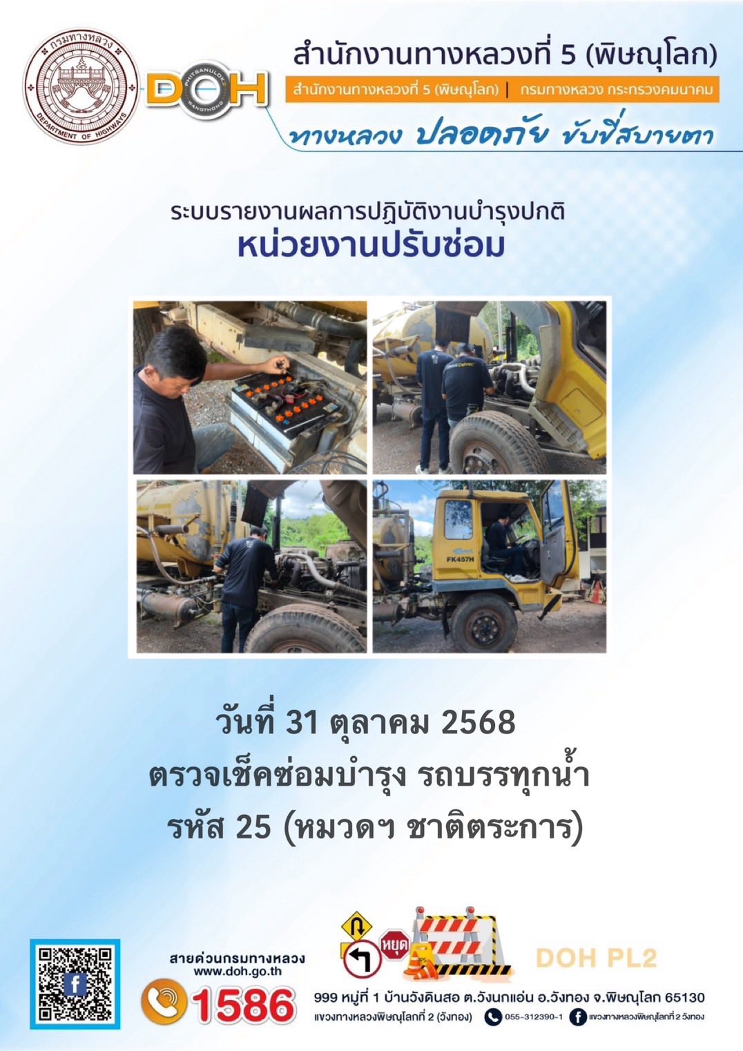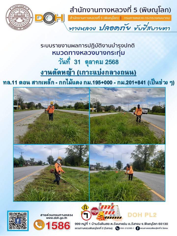การปฏิบัติงานของ หมวดทางหลวง และ หน่วยงานในสังกัด เพื่ออำนวยความสะดวก และปลอดภัยให้กับประชาชนผู้ใช้เส้นทาง ประจำวันศุกร์ ที่ 31 ตุลาคม 2568