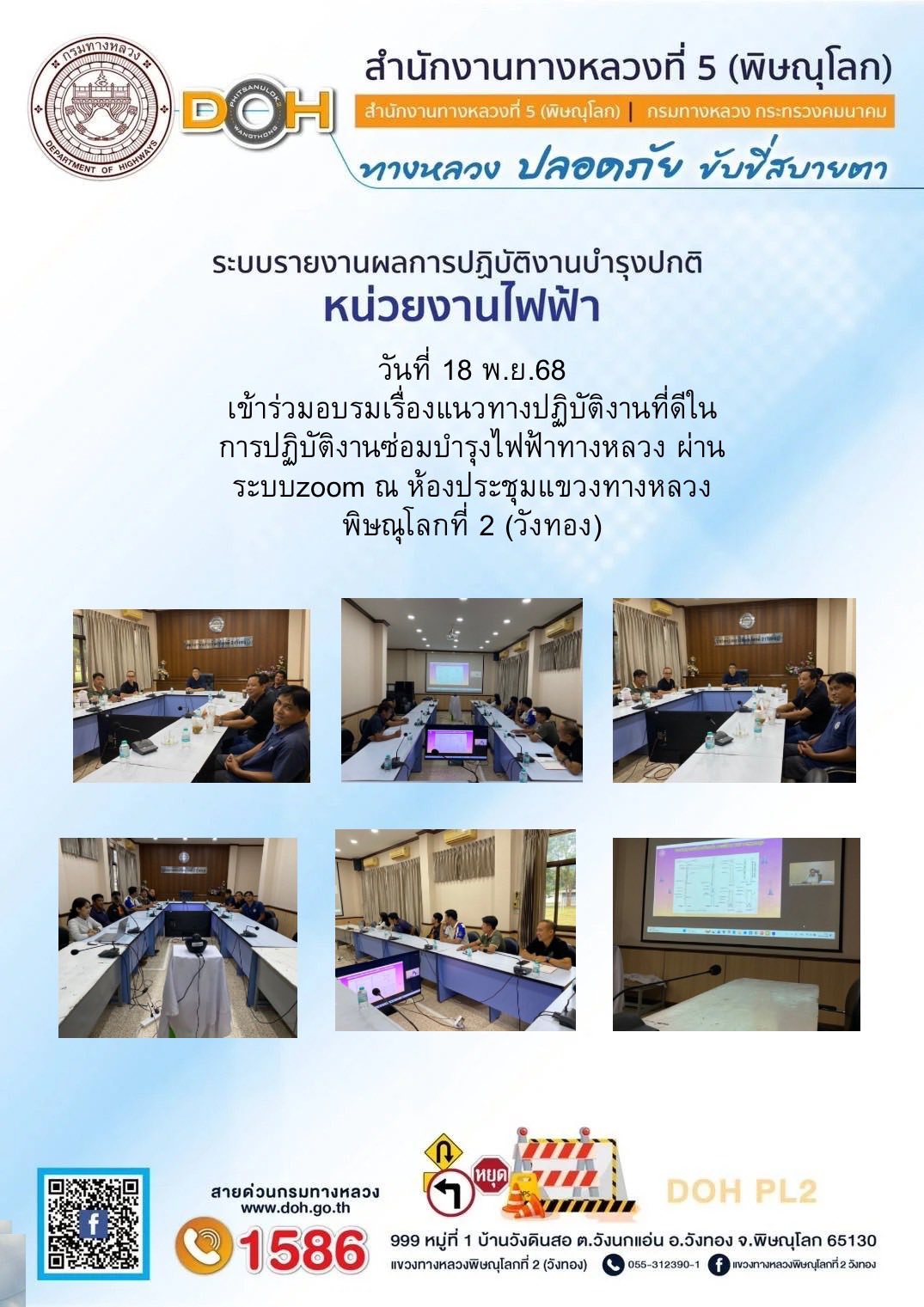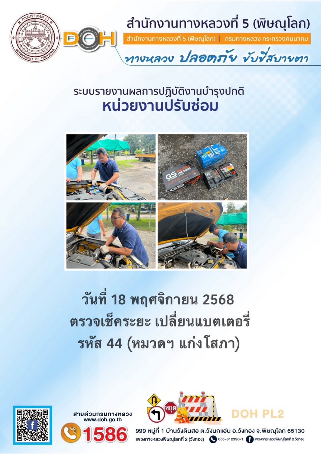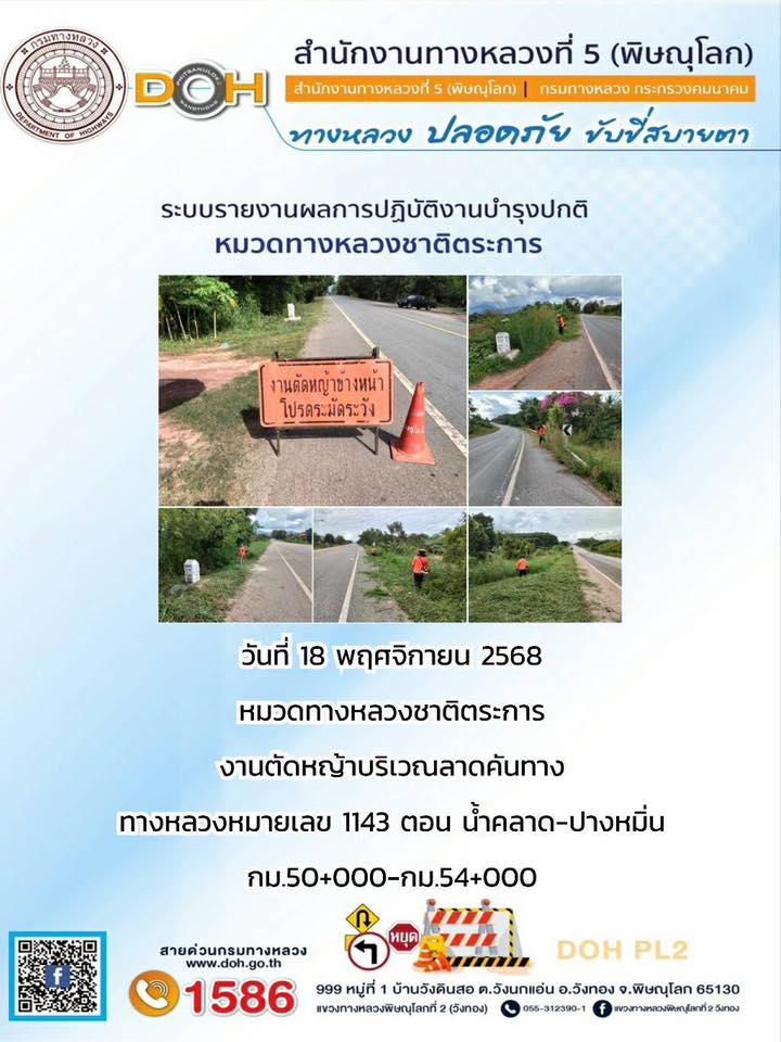 การปฏิบัติงานของ หมวดทางหลวง และ หน่วยงานในสังกัด เพื่ออำนวยความสะดวก และปลอดภัยให้กับประชาชนผู้ใช้เส้นทาง ประจำวันอังคาร ที่ 18 พฤศจิกายน 2568