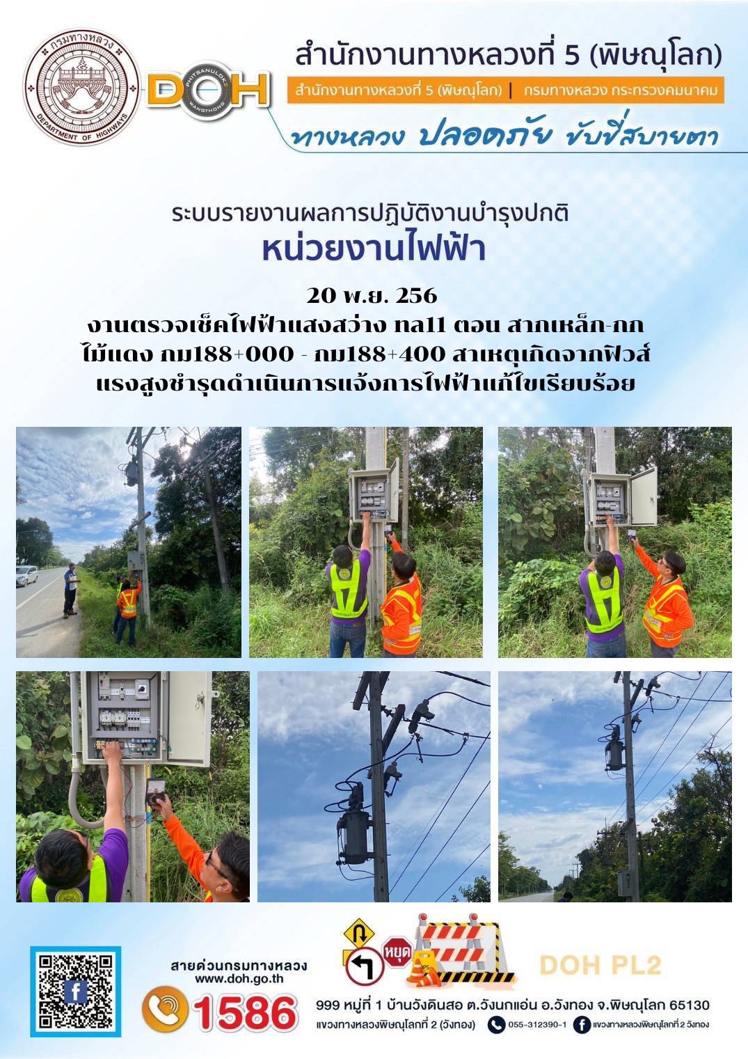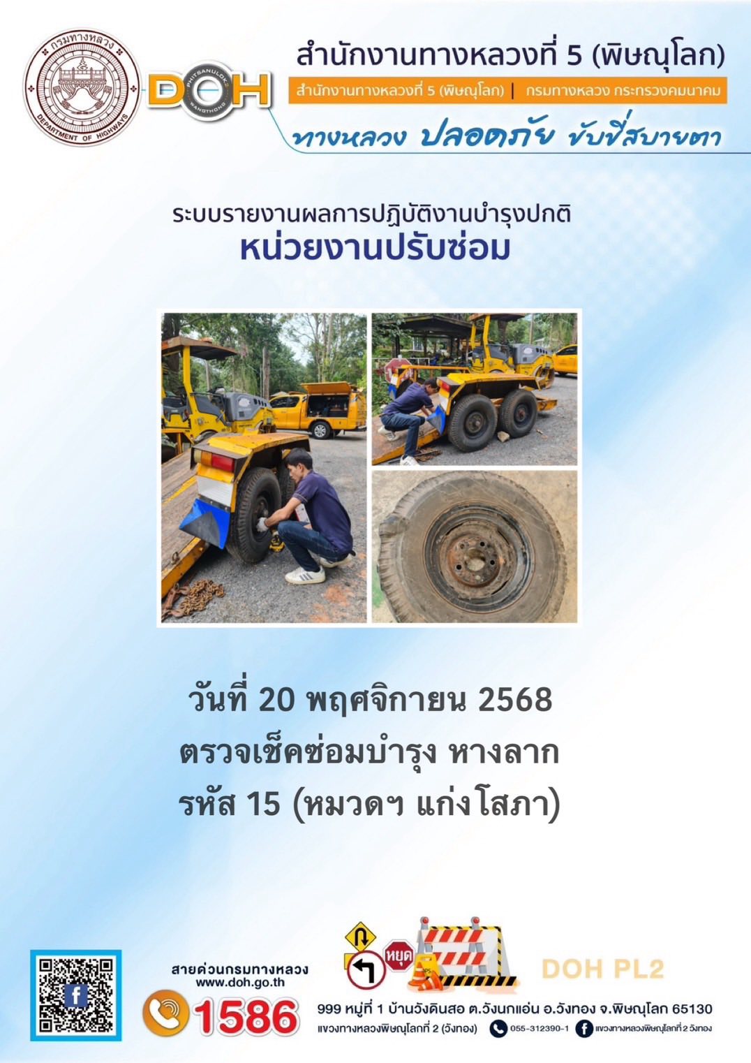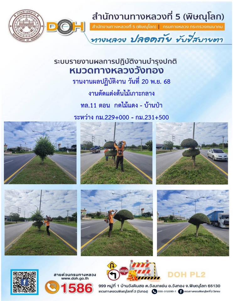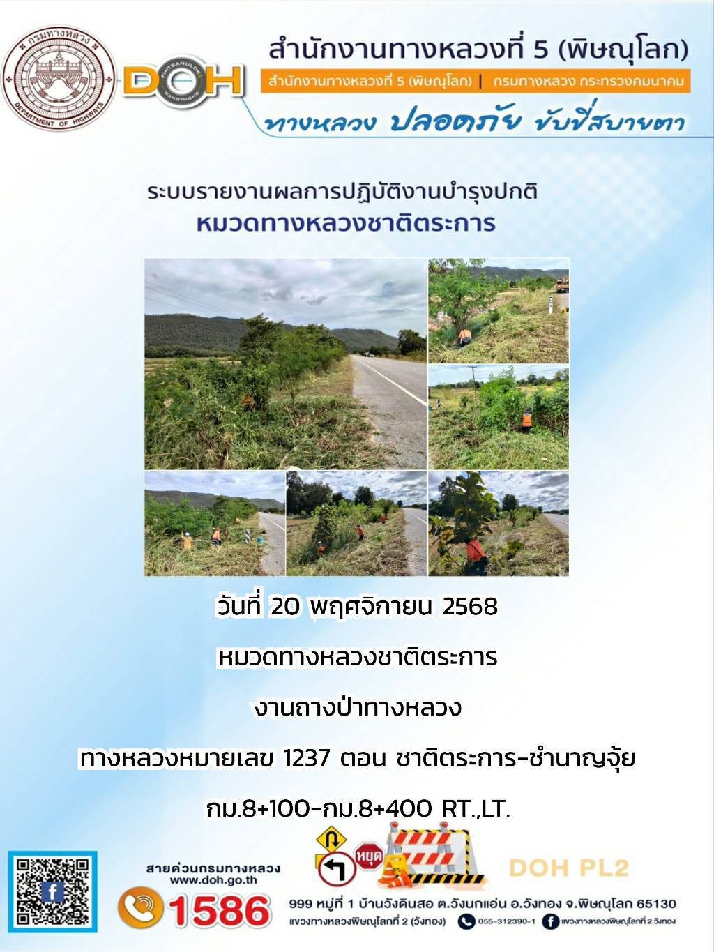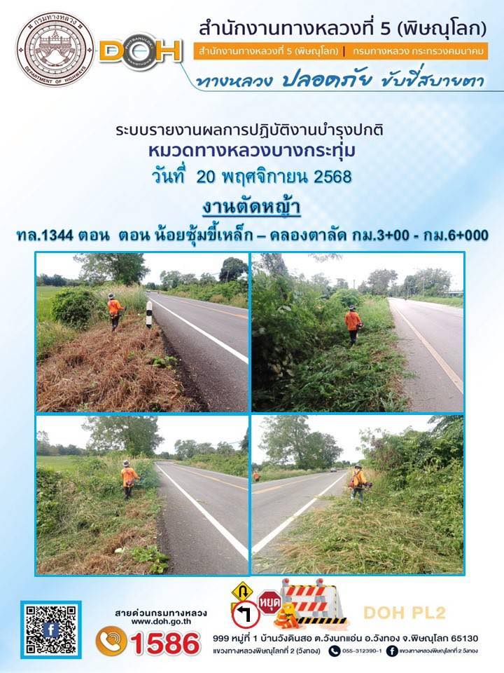 การปฏิบัติงานของ หมวดทางหลวง และ หน่วยงานในสังกัด เพื่ออำนวยความสะดวก และปลอดภัยให้กับประชาชนผู้ใช้เส้นทาง ประจำวันพฤหัสบดี ที่ 20 พฤศจิกายน 2568