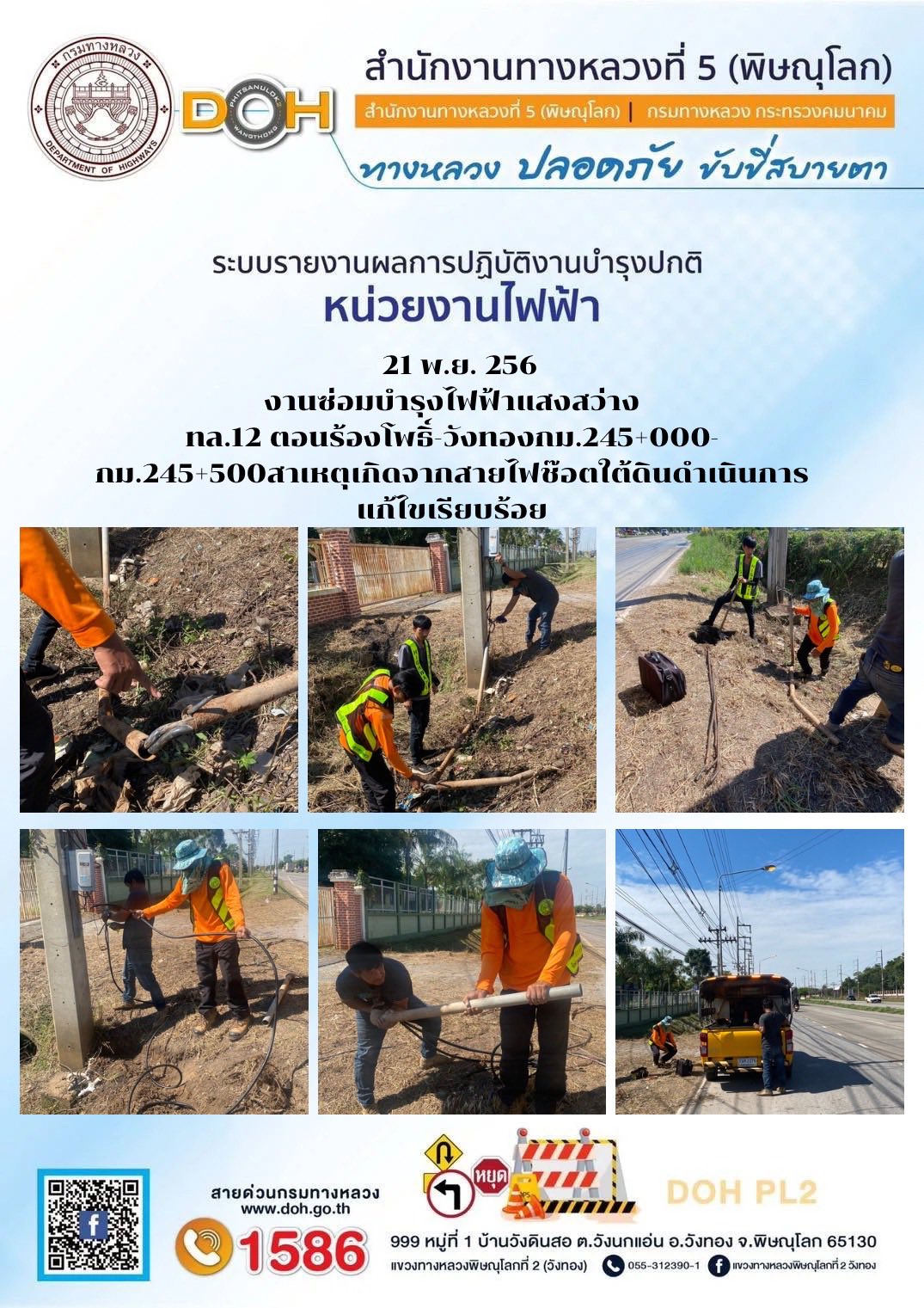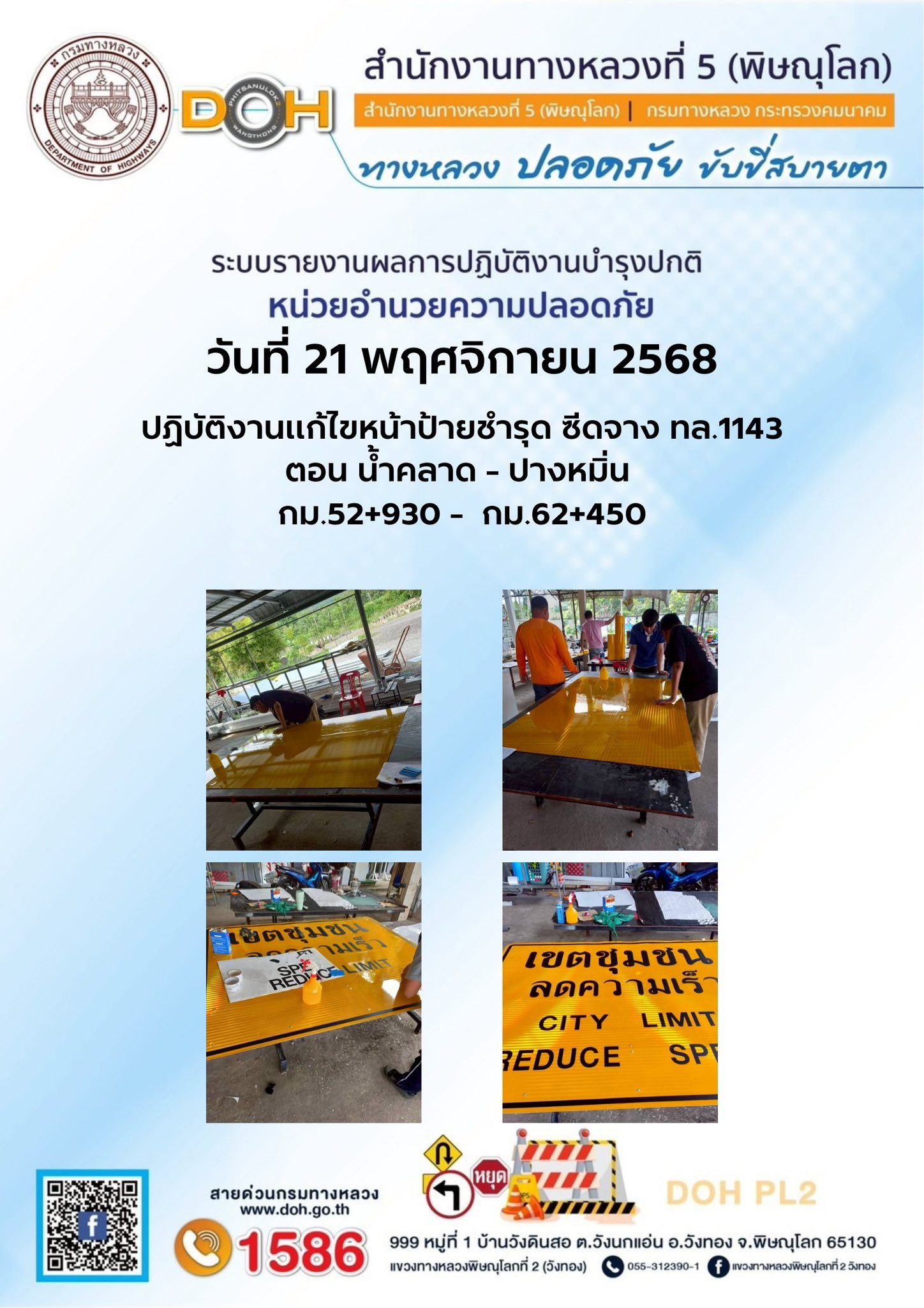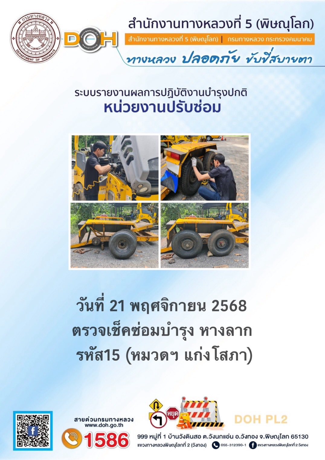 การปฏิบัติงานของ หมวดทางหลวง และ หน่วยงานในสังกัด เพื่ออำนวยความสะดวก และปลอดภัยให้กับประชาชนผู้ใช้เส้นทาง ประจำวันศุกร์ ที่ 21 พฤศจิกายน 2568