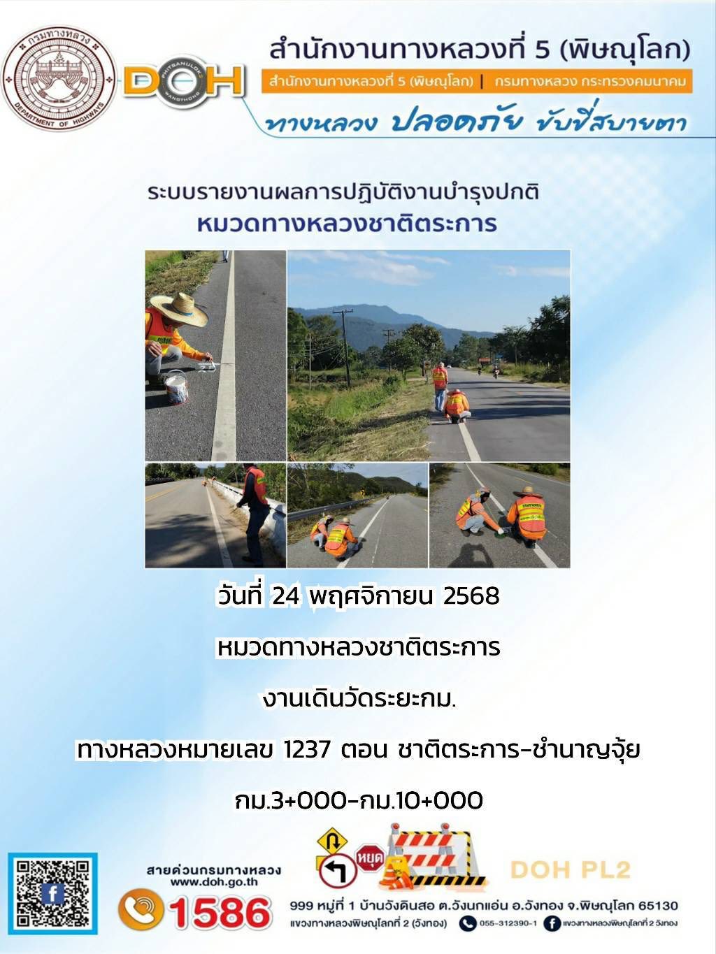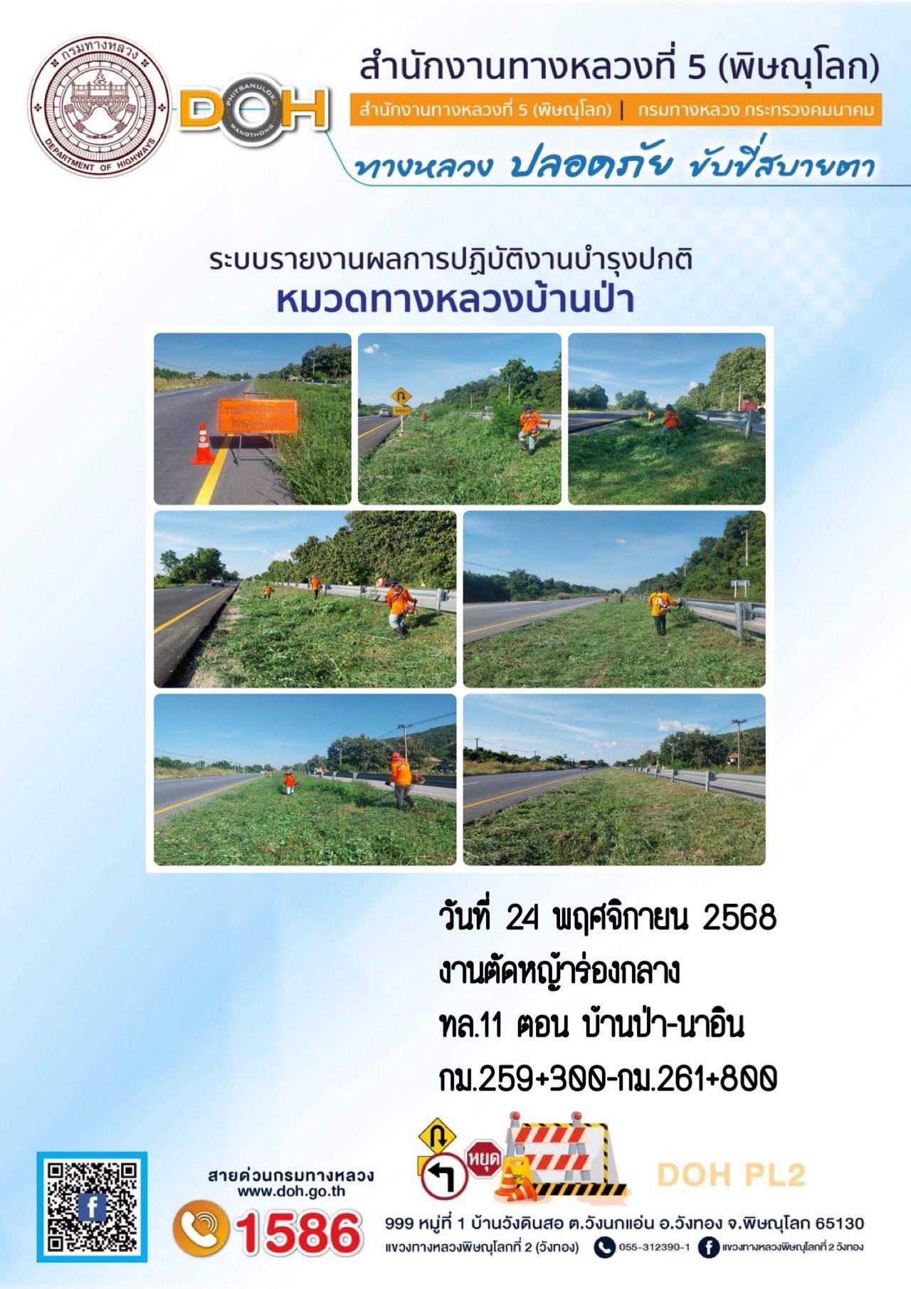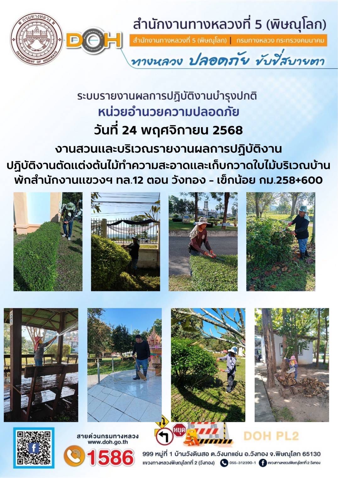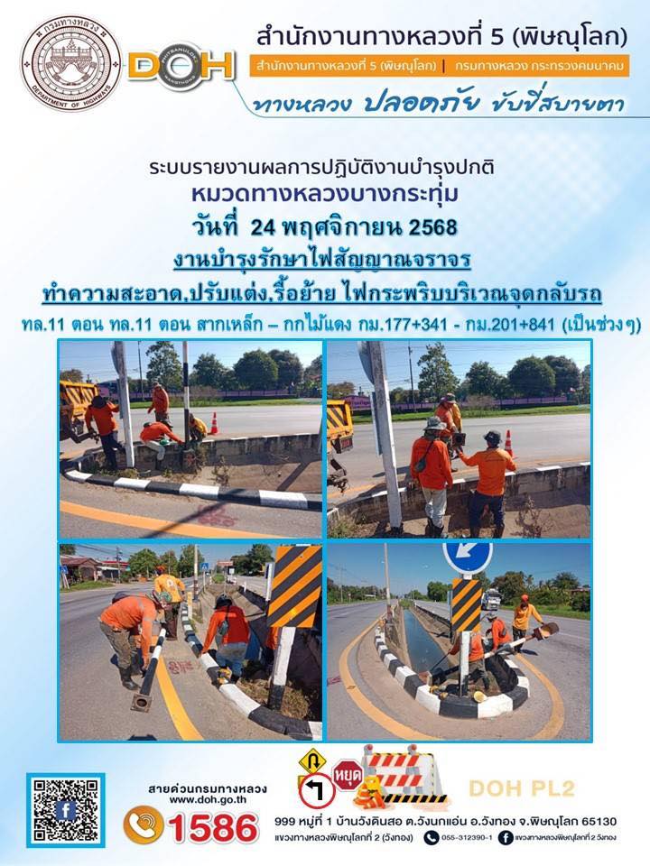 การปฏิบัติงานของ หมวดทางหลวง และ หน่วยงานในสังกัด เพื่ออำนวยความสะดวก และปลอดภัยให้กับประชาชนผู้ใช้เส้นทาง ประจำวันจันทร์ ที่ 24 พฤศจิกายน 2568