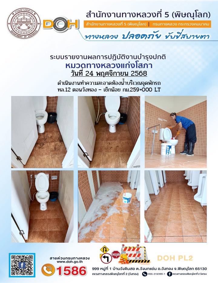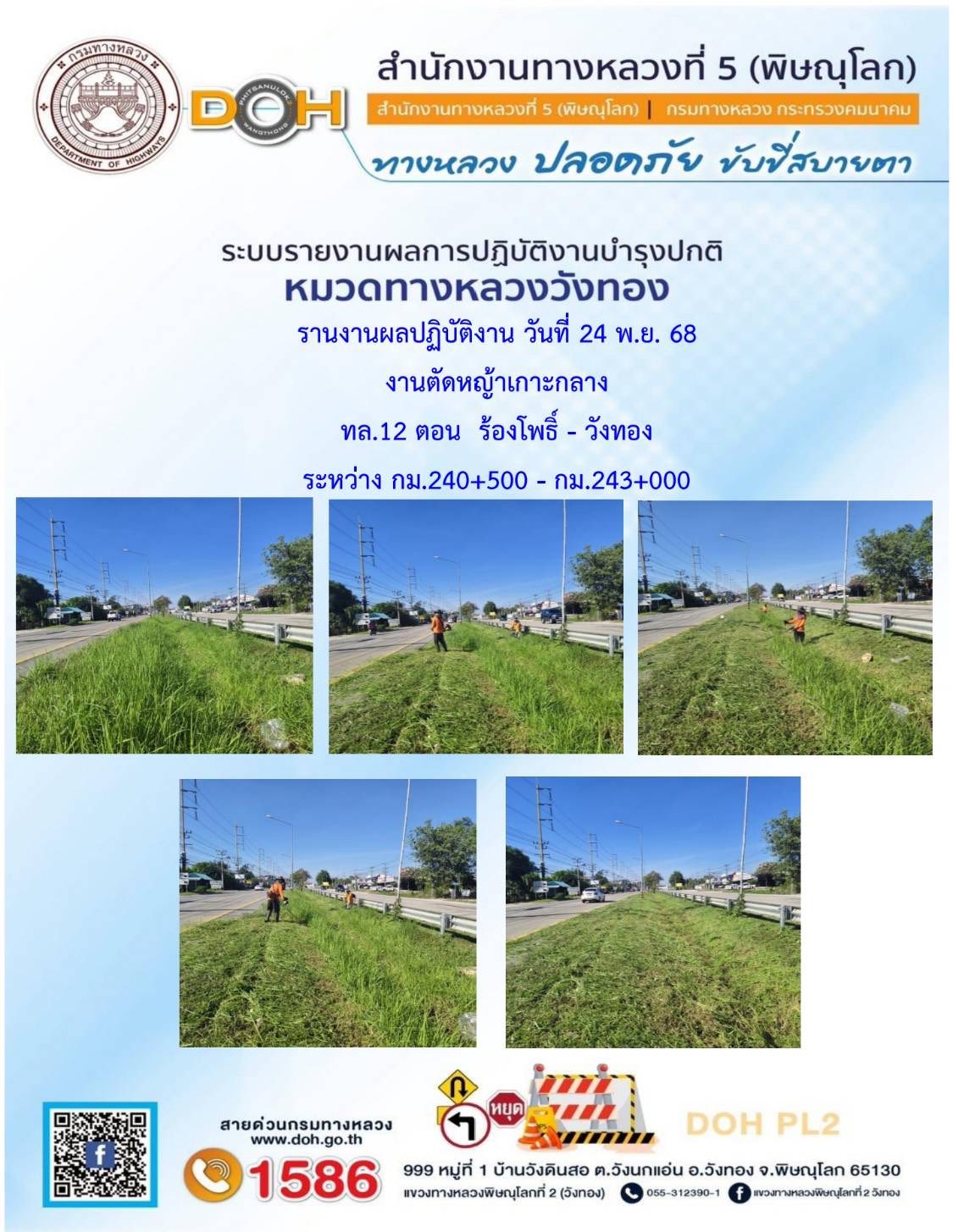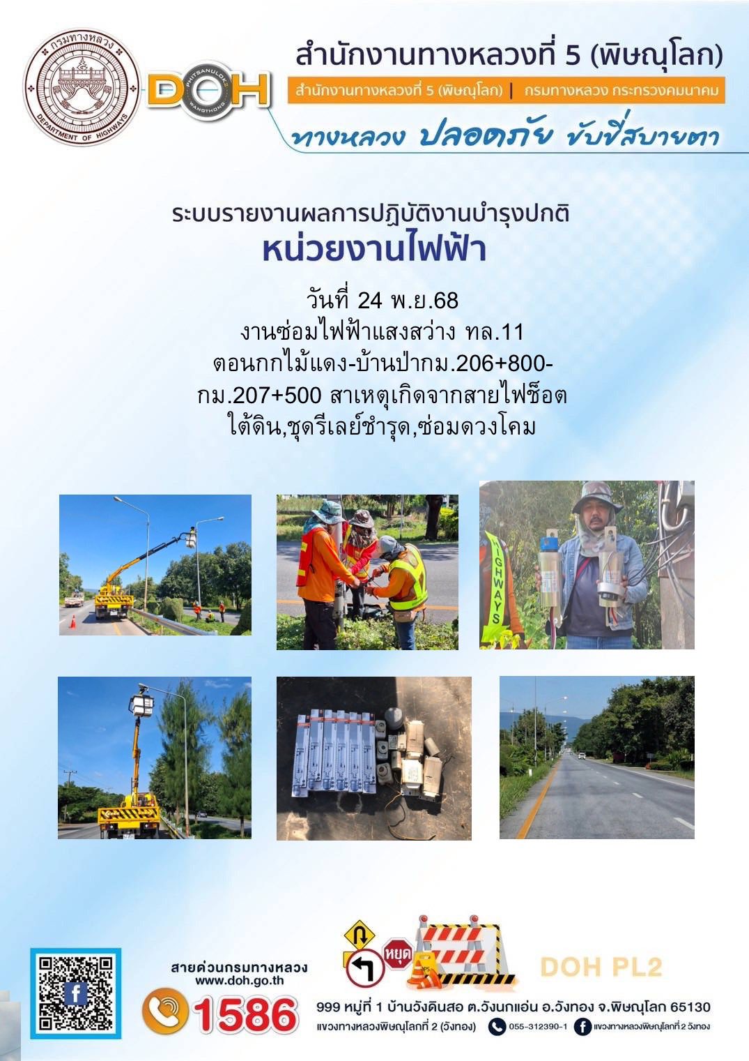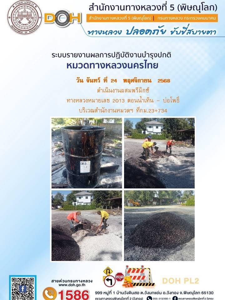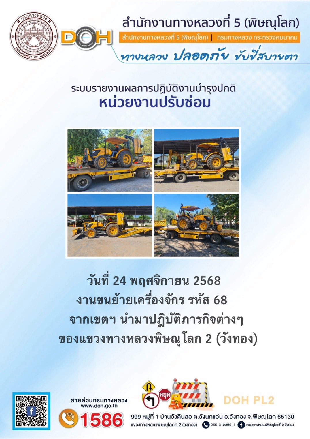 การปฏิบัติงานของ หมวดทางหลวง และ หน่วยงานในสังกัด เพื่ออำนวยความสะดวก และปลอดภัยให้กับประชาชนผู้ใช้เส้นทาง ประจำวันจันทร์ ที่ 24 พฤศจิกายน 2568