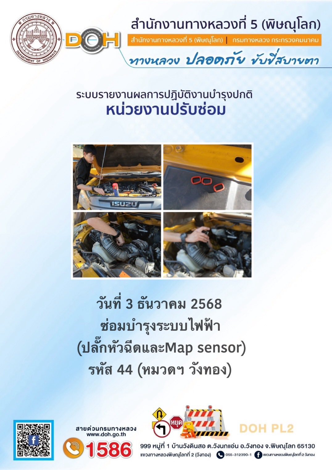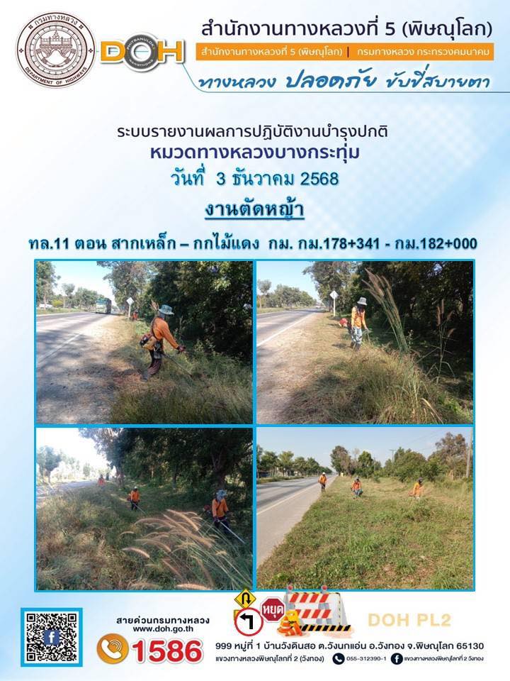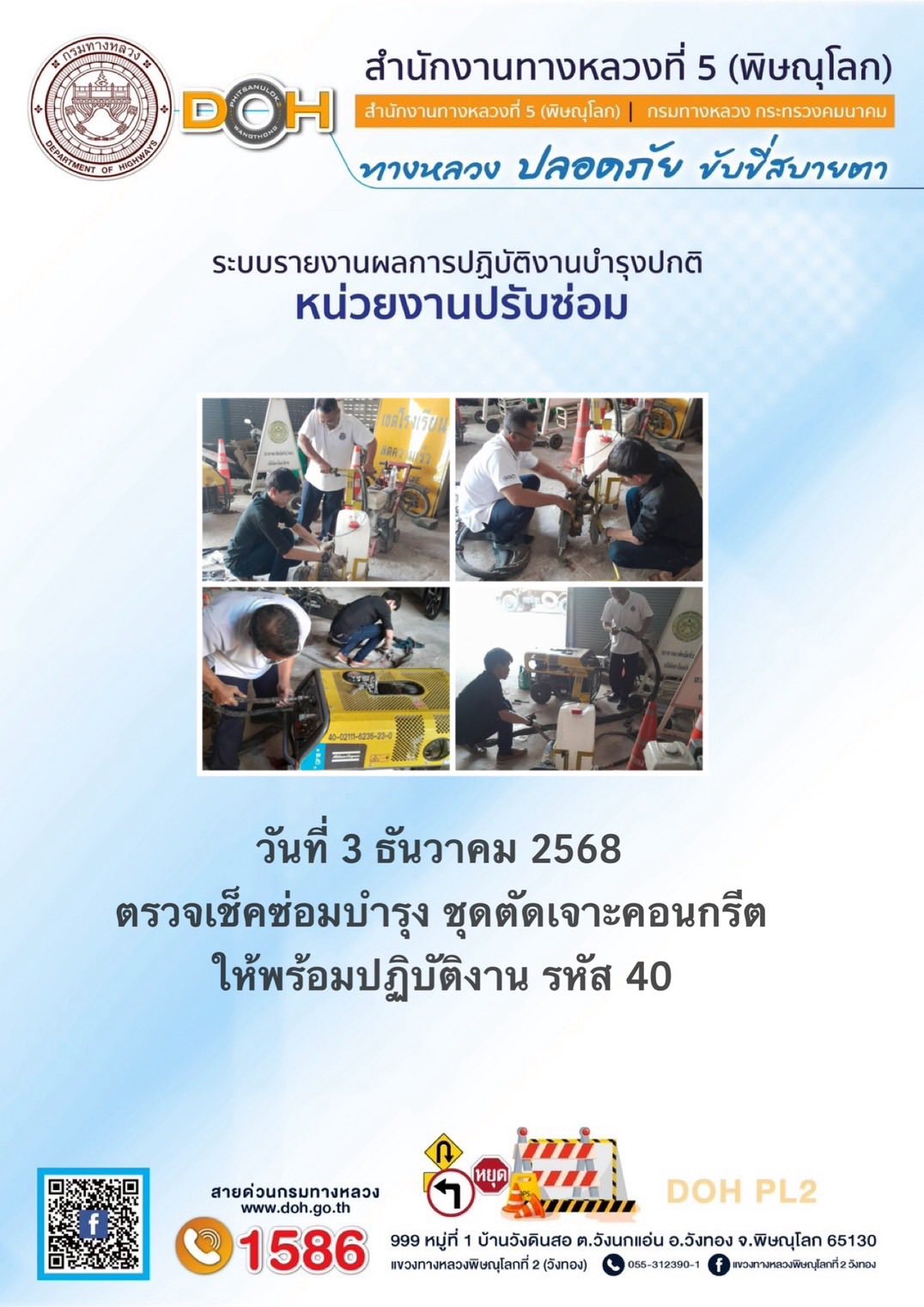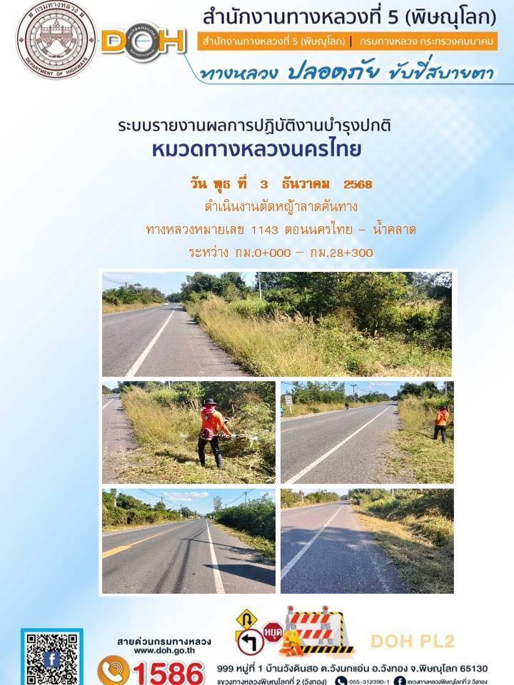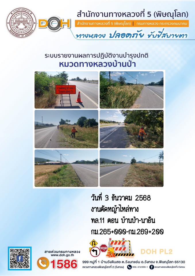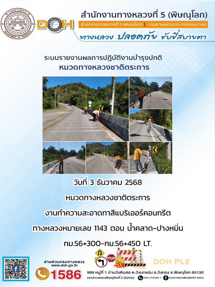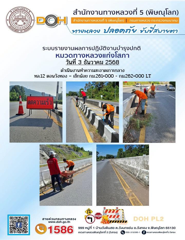การปฏิบัติงานของ หมวดทางหลวง และ หน่วยงานในสังกัด เพื่ออำนวยความสะดวก และปลอดภัยให้กับประชาชนผู้ใช้เส้นทาง ประจำวันพุธ ที่ 3 ธันวาคม 2568
