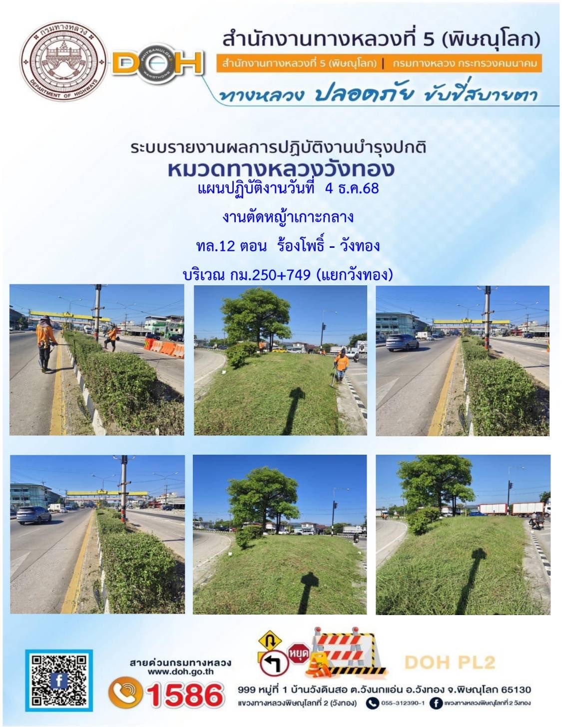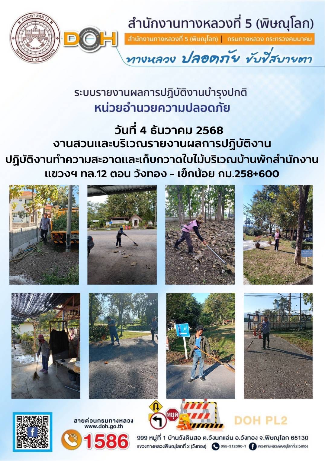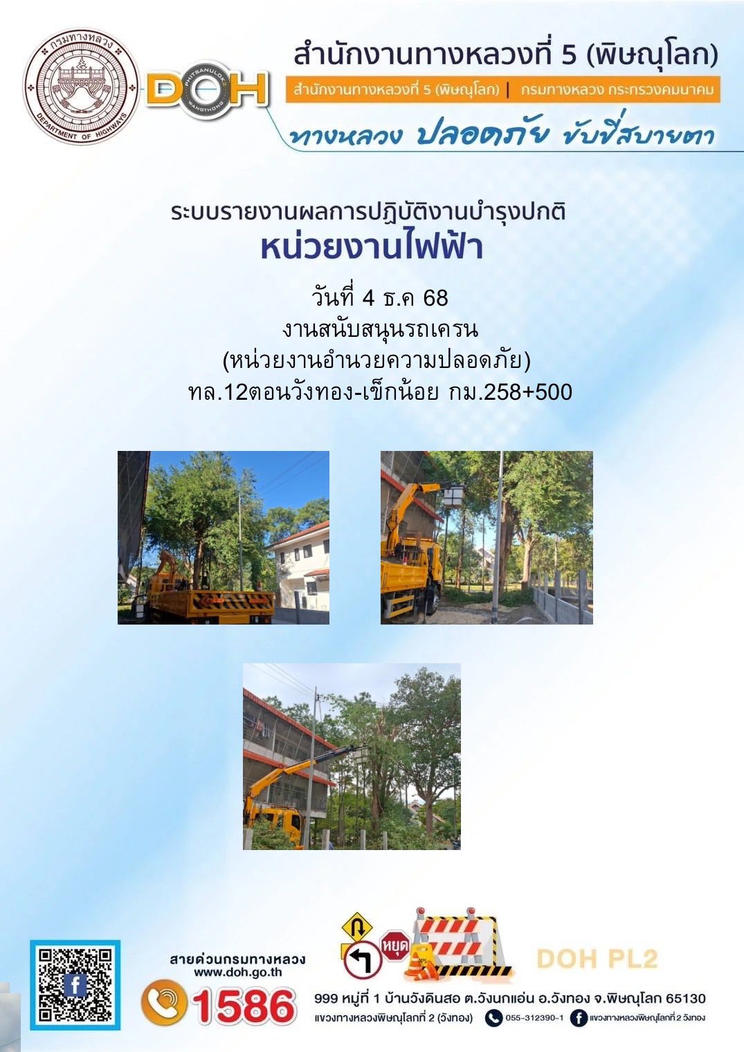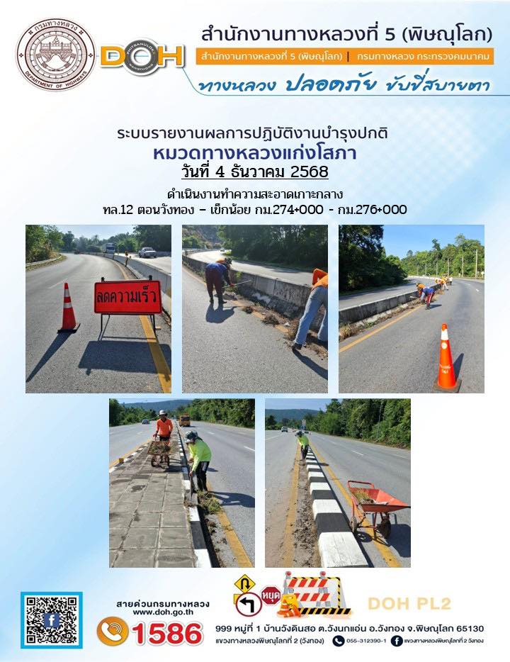 การปฏิบัติงานของ หมวดทางหลวง และ หน่วยงานในสังกัด เพื่ออำนวยความสะดวก และปลอดภัยให้กับประชาชนผู้ใช้เส้นทาง ประจำวันพฤหัสบดี ที่ 4 ธันวาคม 2568