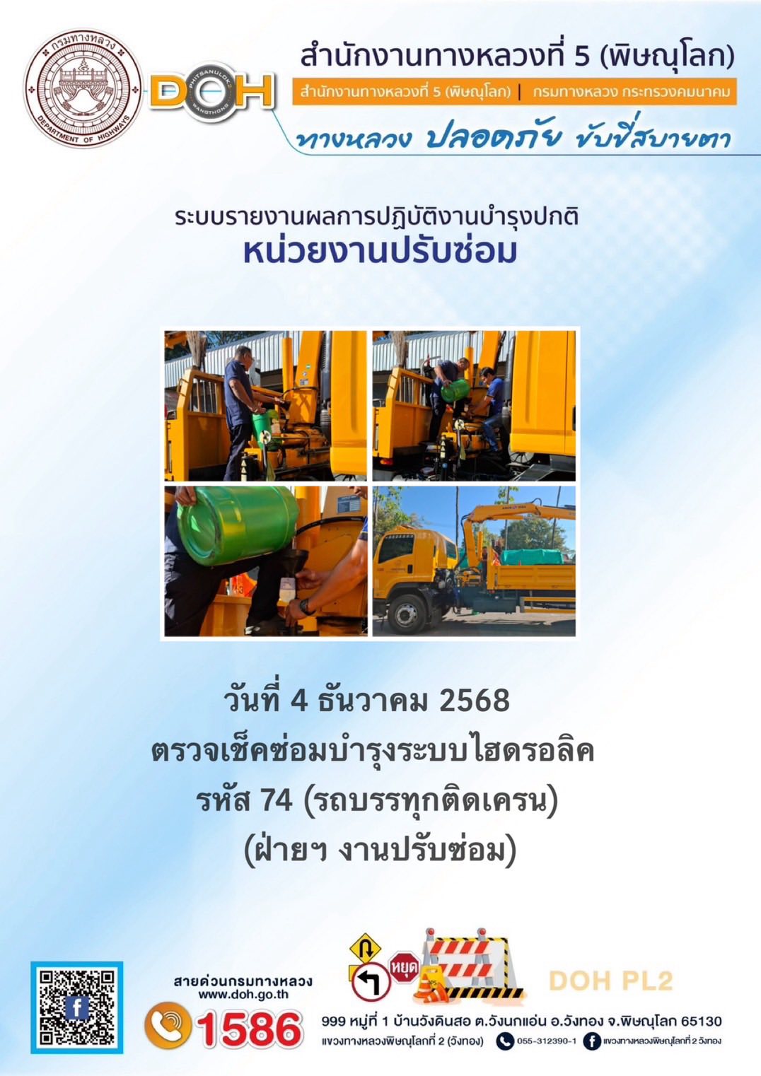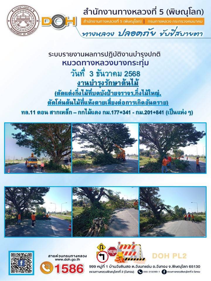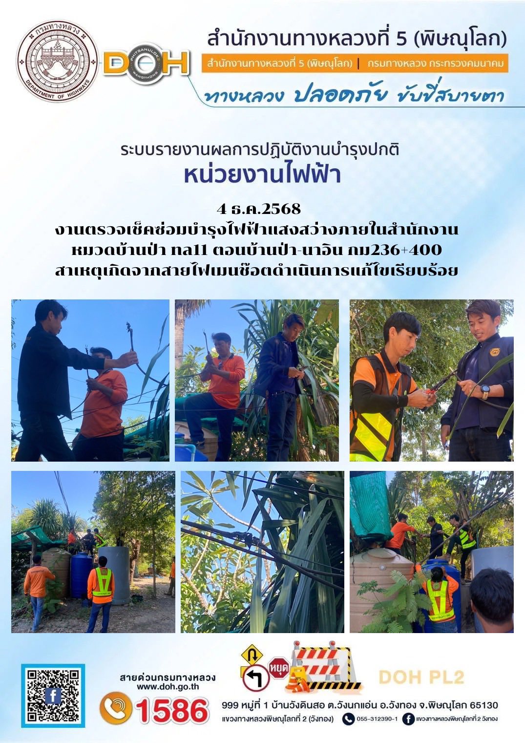 การปฏิบัติงานของ หมวดทางหลวง และ หน่วยงานในสังกัด เพื่ออำนวยความสะดวก และปลอดภัยให้กับประชาชนผู้ใช้เส้นทาง ประจำวันพฤหัสบดี ที่ 4 ธันวาคม 2568