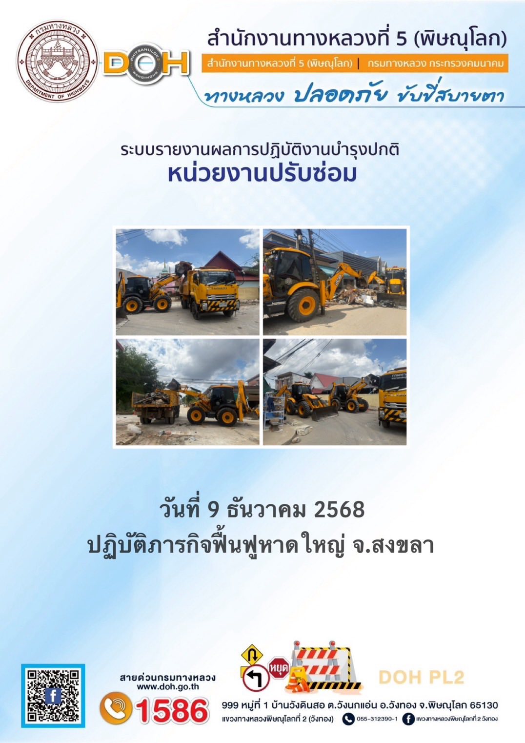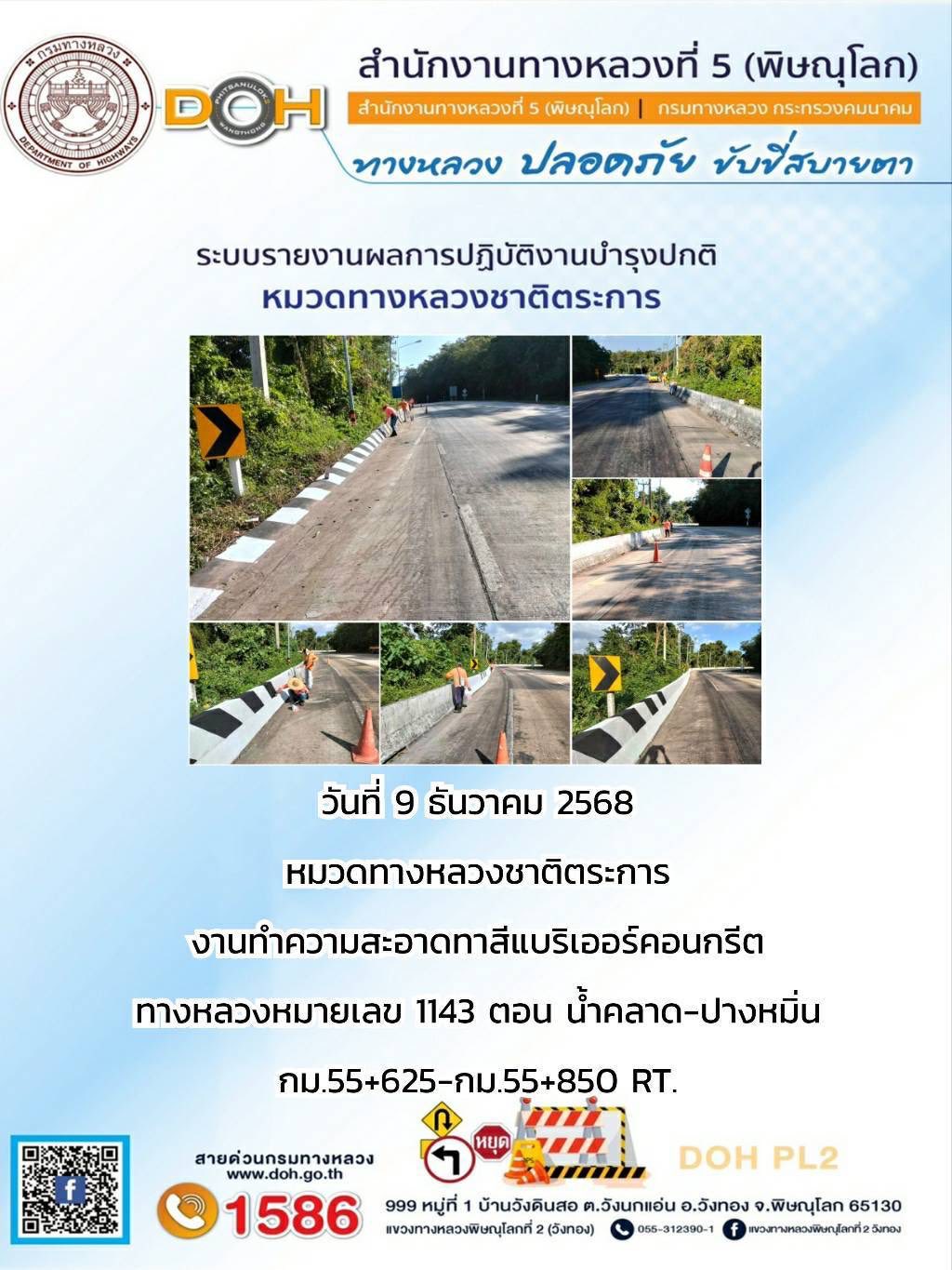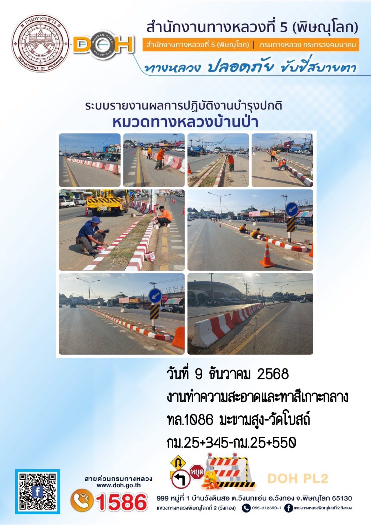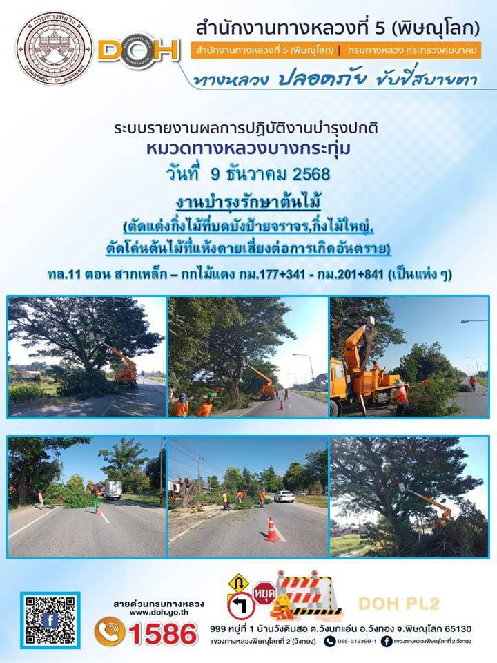 การปฏิบัติงานของ หมวดทางหลวง และ หน่วยงานในสังกัด เพื่ออำนวยความสะดวก และปลอดภัยให้กับประชาชนผู้ใช้เส้นทาง ประจำวันอังคาร ที่ 9 ธันวาคม 2568