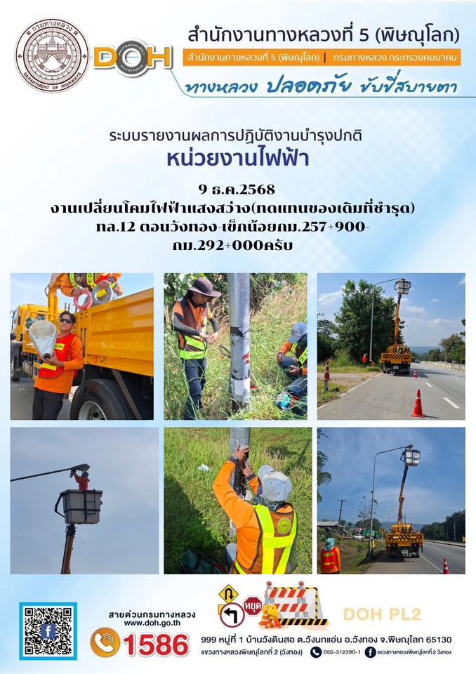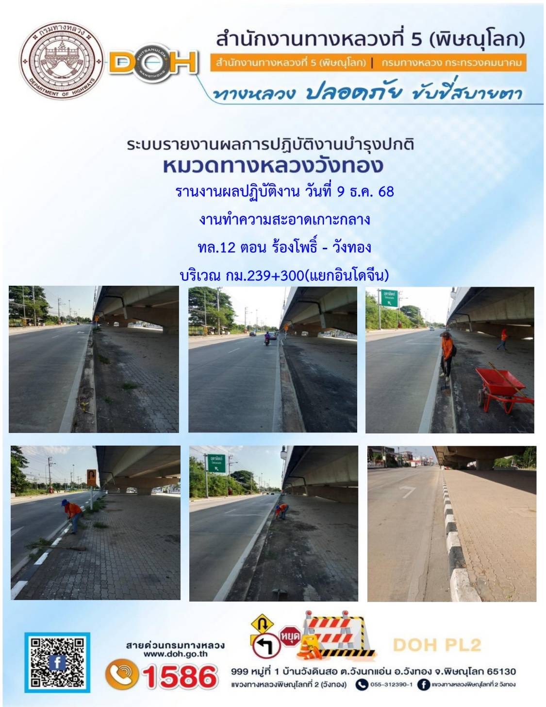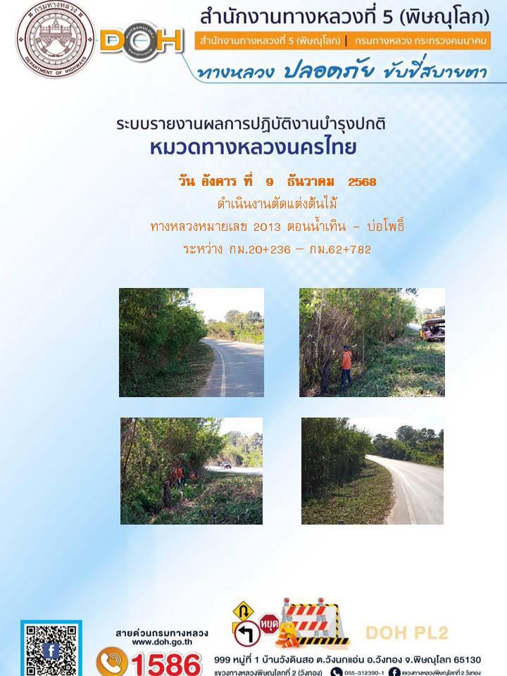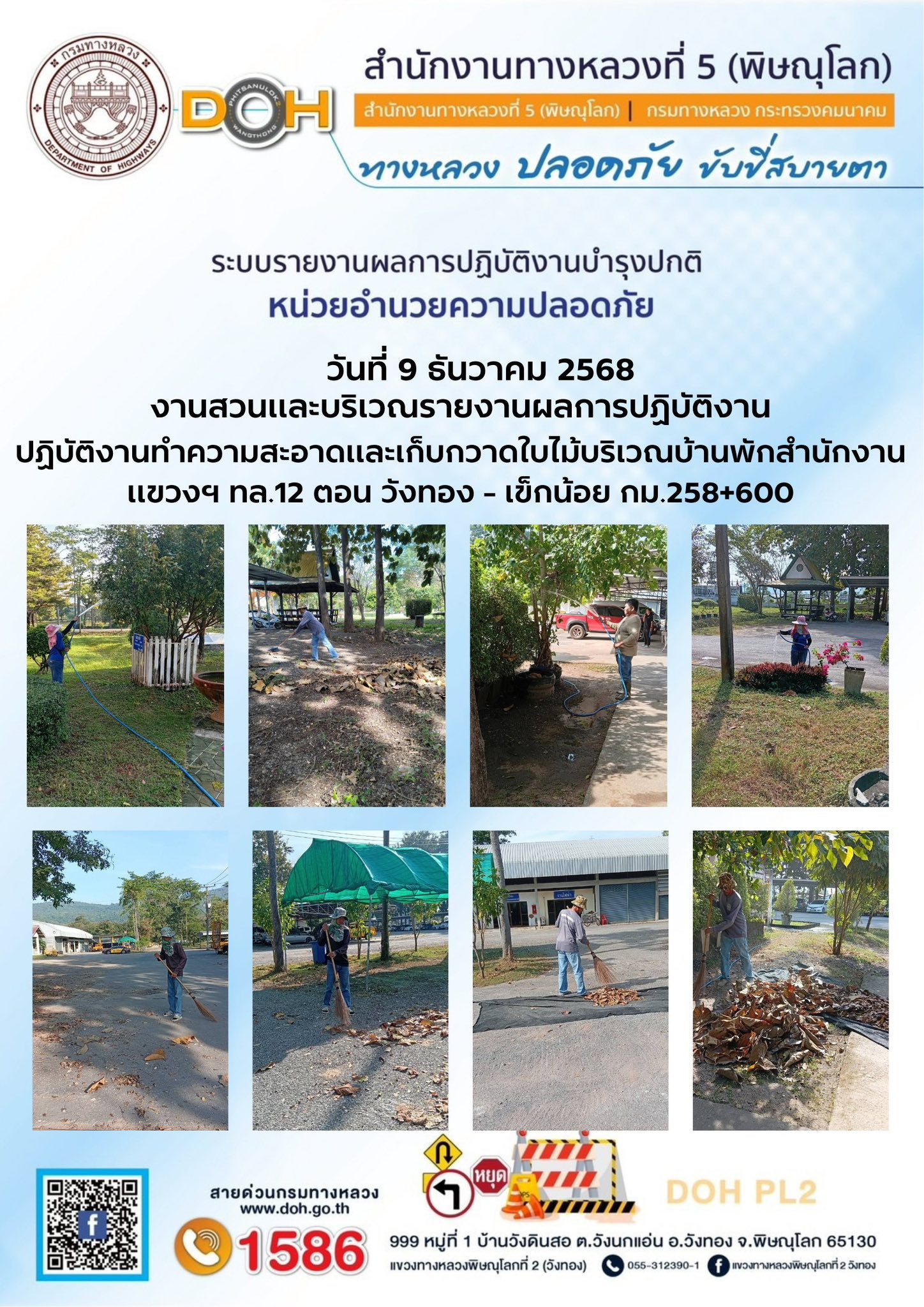 การปฏิบัติงานของ หมวดทางหลวง และ หน่วยงานในสังกัด เพื่ออำนวยความสะดวก และปลอดภัยให้กับประชาชนผู้ใช้เส้นทาง ประจำวันอังคาร ที่ 9 ธันวาคม 2568