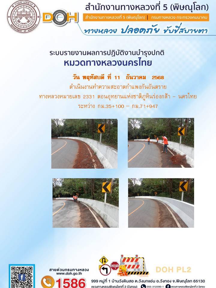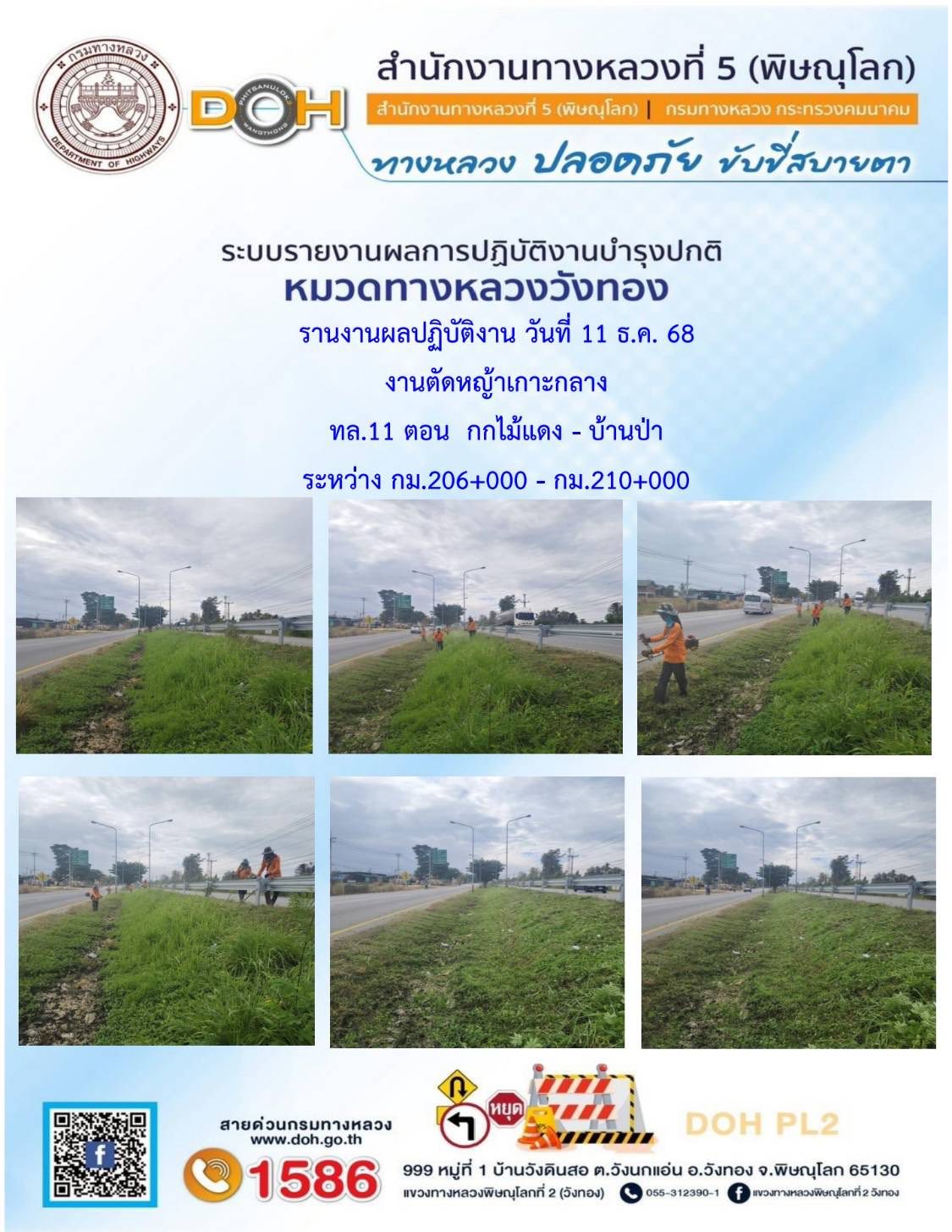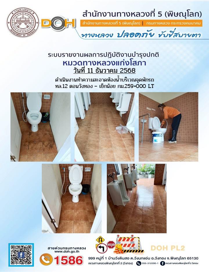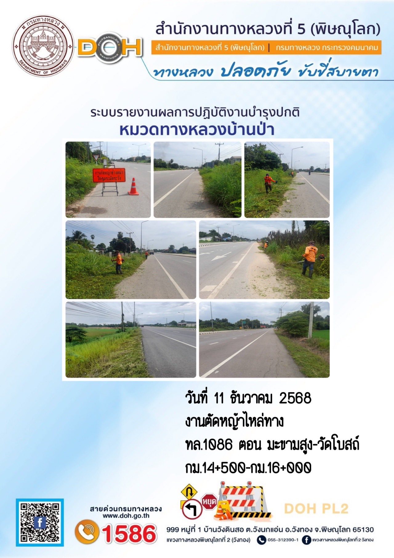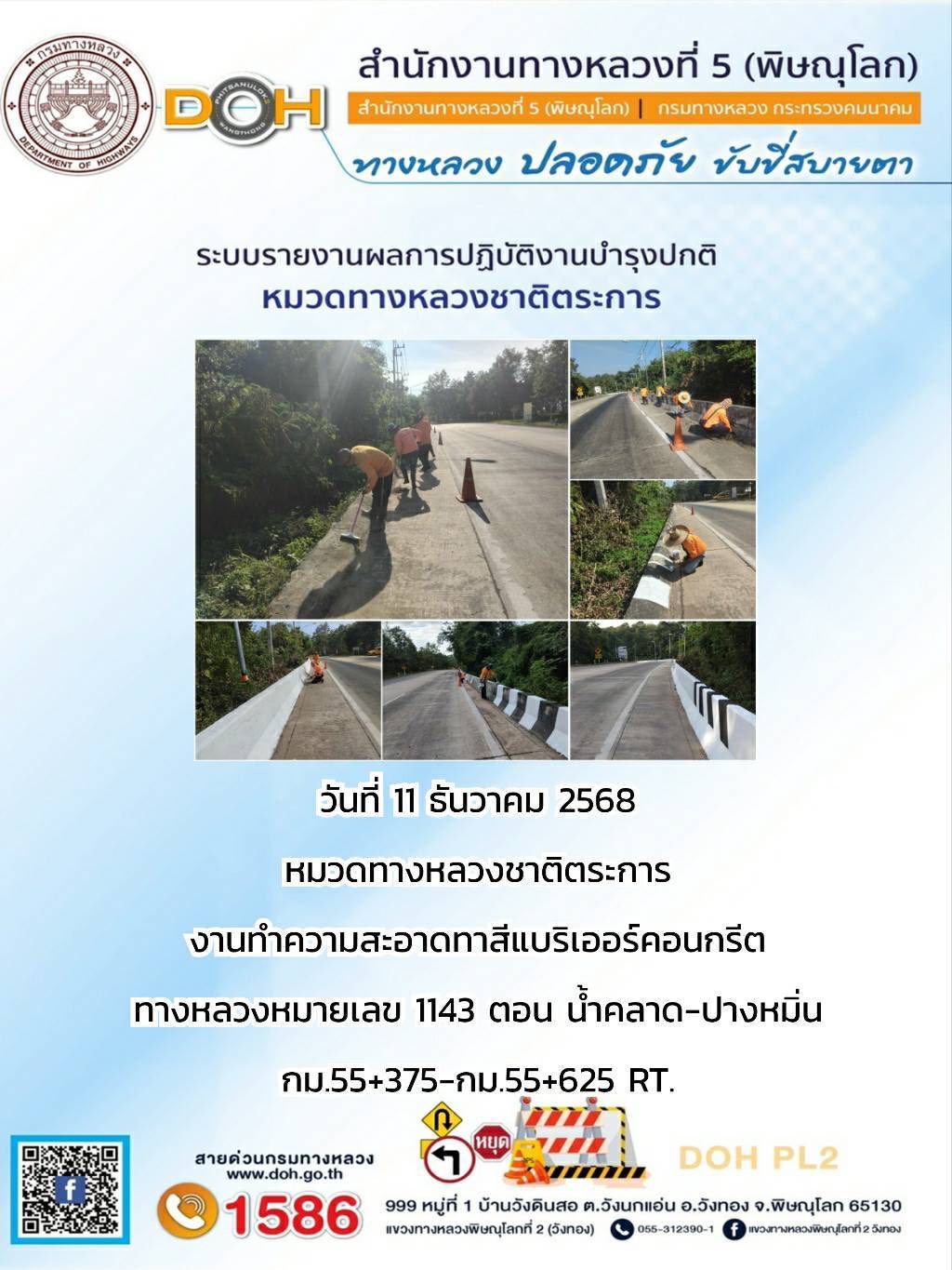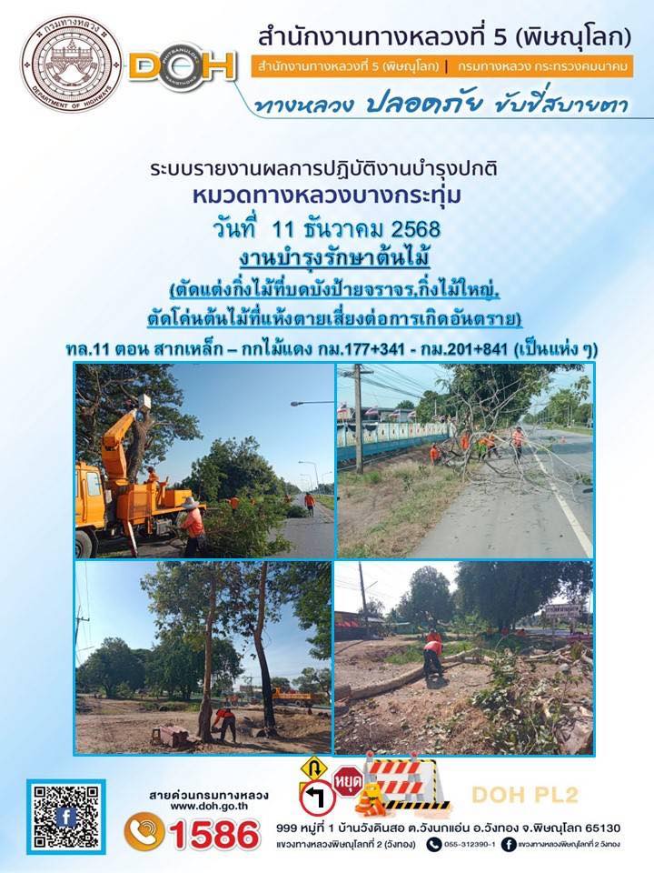 การปฏิบัติงานของ หมวดทางหลวง และ หน่วยงานในสังกัด เพื่ออำนวยความสะดวก และปลอดภัยให้กับประชาชนผู้ใช้เส้นทาง ประจำวันพฤหัสบดี ที่ 11 ธันวาคม 2568
