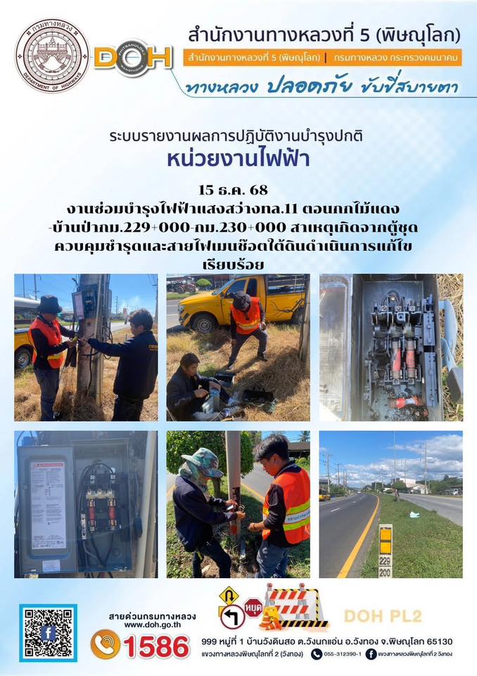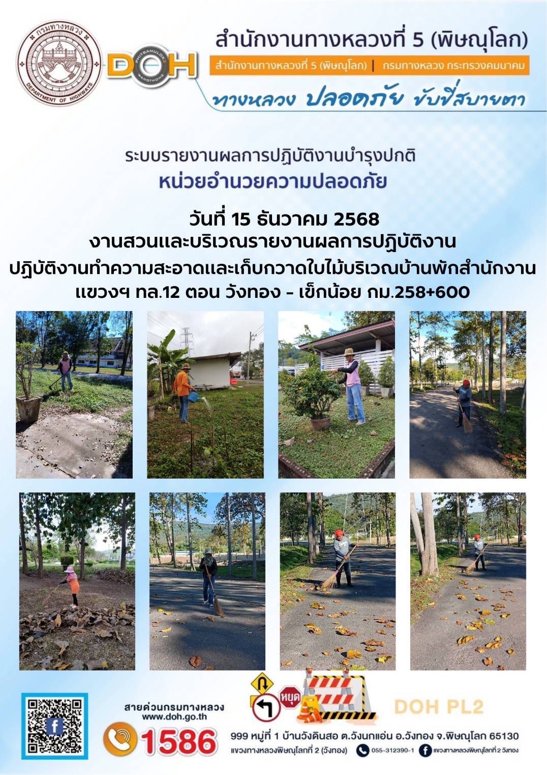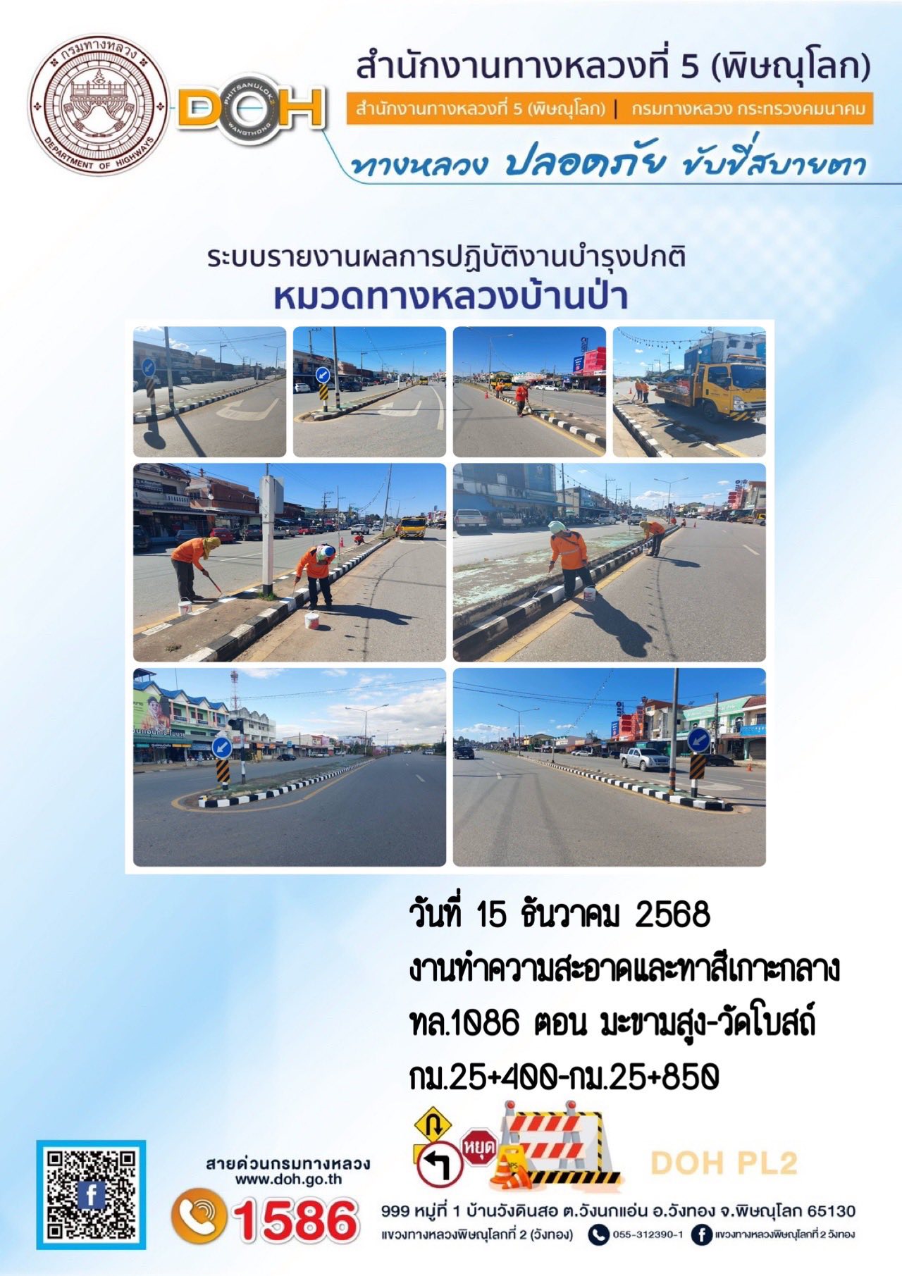 การปฏิบัติงานของ หมวดทางหลวง และ หน่วยงานในสังกัด เพื่ออำนวยความสะดวก และปลอดภัยให้กับประชาชนผู้ใช้เส้นทาง ประจำวันจันทร์ ที่ 15 ธันวาคม 2568