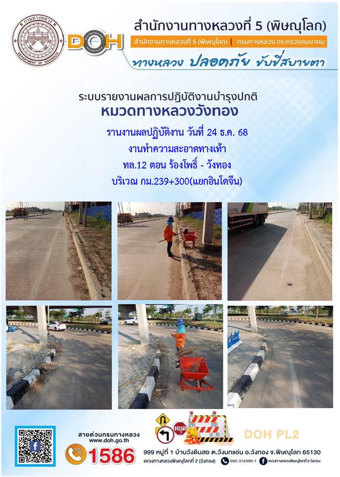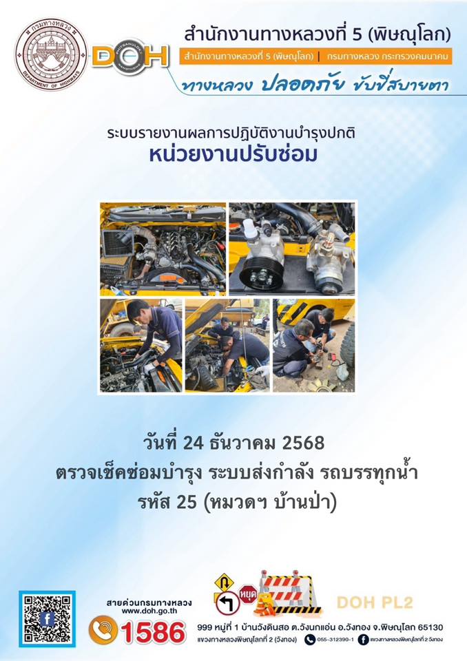 การปฏิบัติงานของ หมวดทางหลวง และ หน่วยงานในสังกัด เพื่ออำนวยความสะดวก และปลอดภัยให้กับประชาชนผู้ใช้เส้นทาง ประจำวันพุธ ที่ 24 ธันวาคม 2568