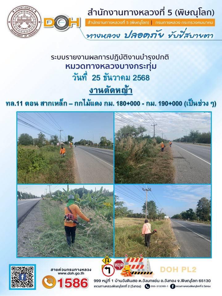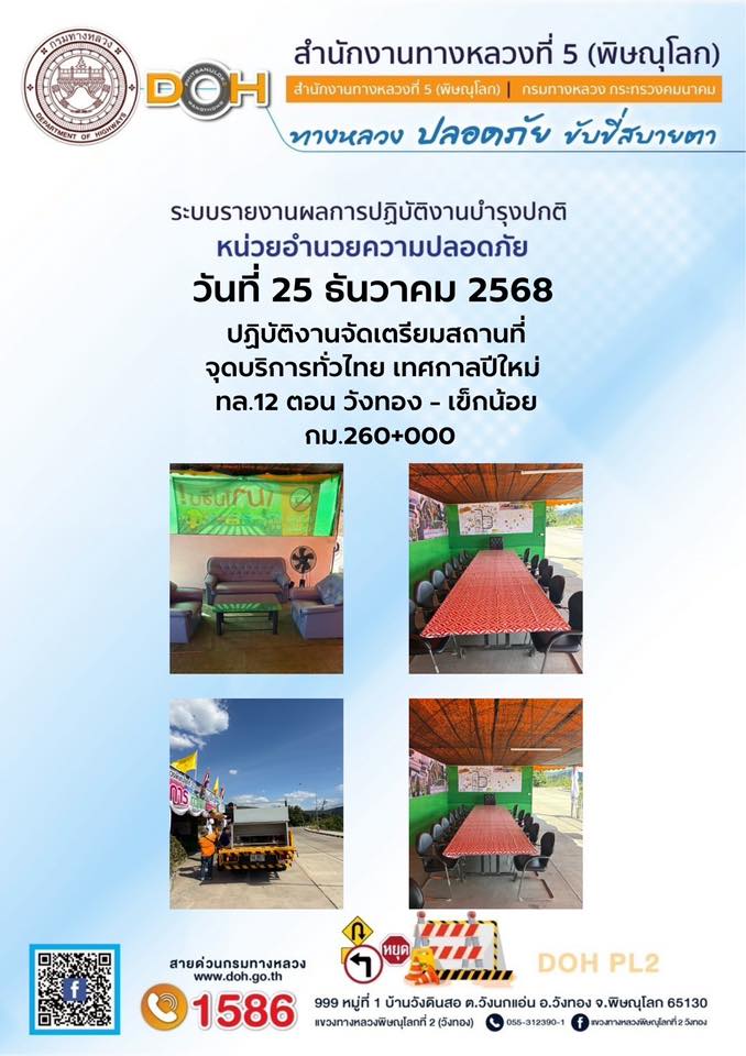 การปฏิบัติงานของ หมวดทางหลวง และ หน่วยงานในสังกัด เพื่ออำนวยความสะดวก และปลอดภัยให้กับประชาชนผู้ใช้เส้นทาง ประจำวันพฤหัสบดี ที่ 25 ธันวาคม 2568