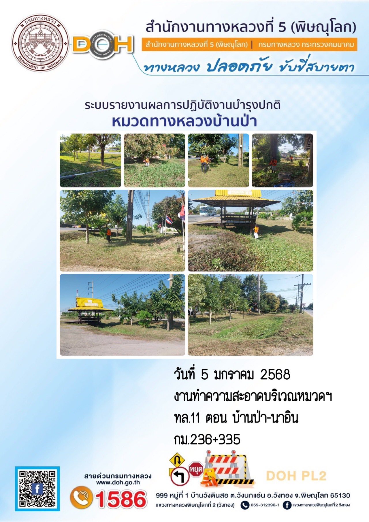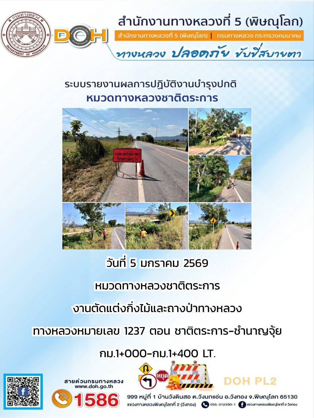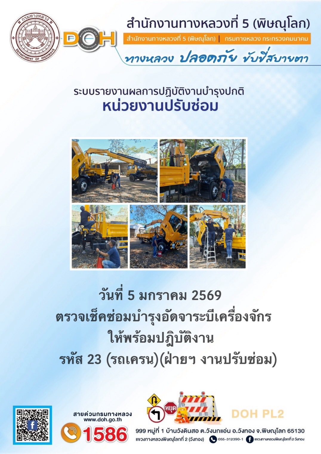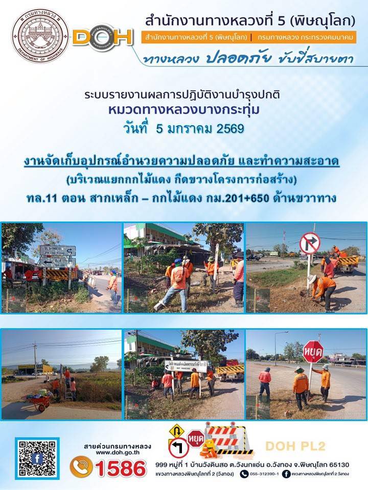 การปฏิบัติงานของ หมวดทางหลวง และ หน่วยงานในสังกัด เพื่ออำนวยความสะดวก และปลอดภัยให้กับประชาชนผู้ใช้เส้นทาง ประจำวันจันทร์ ที่ 5 มกราคม 2569