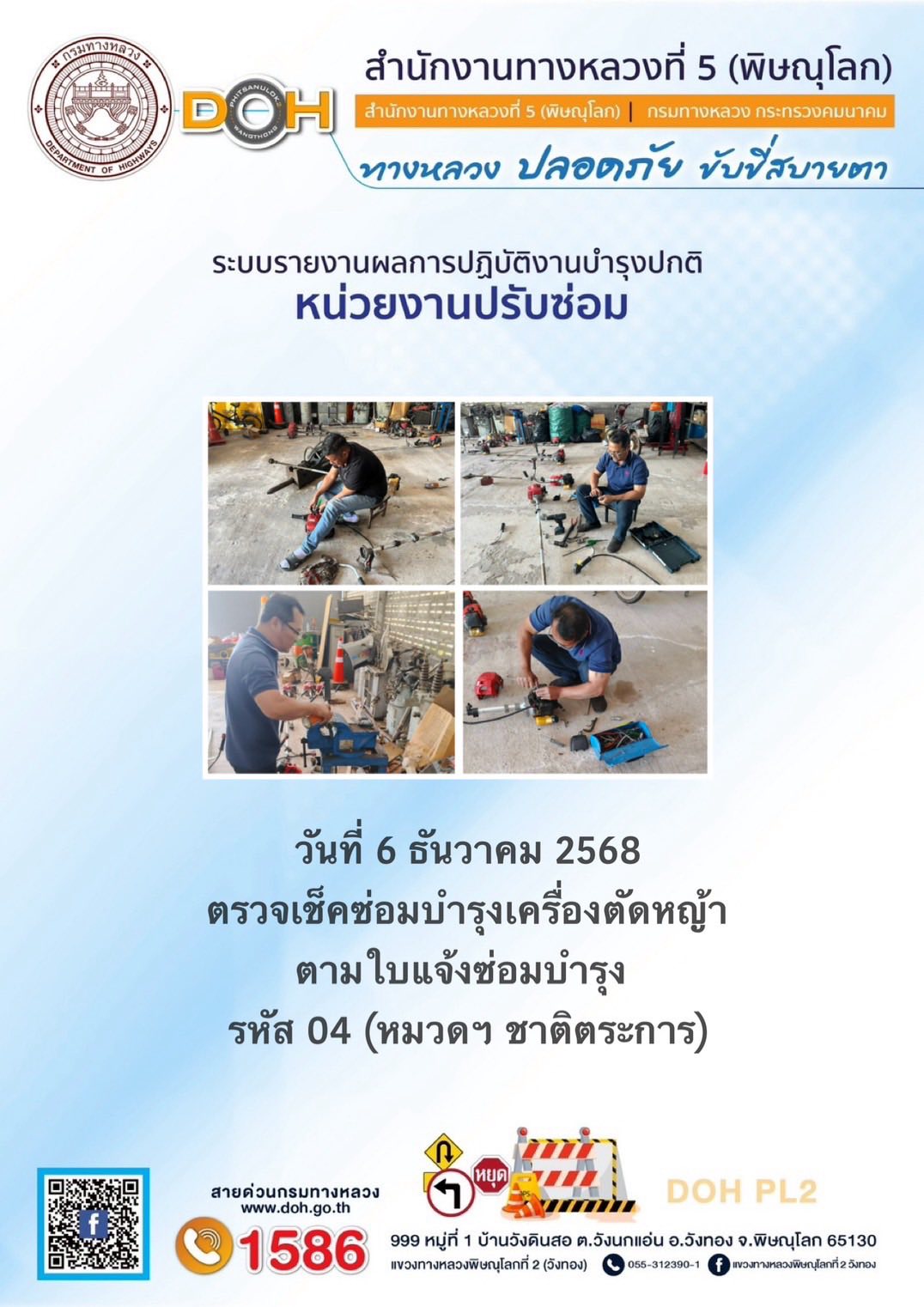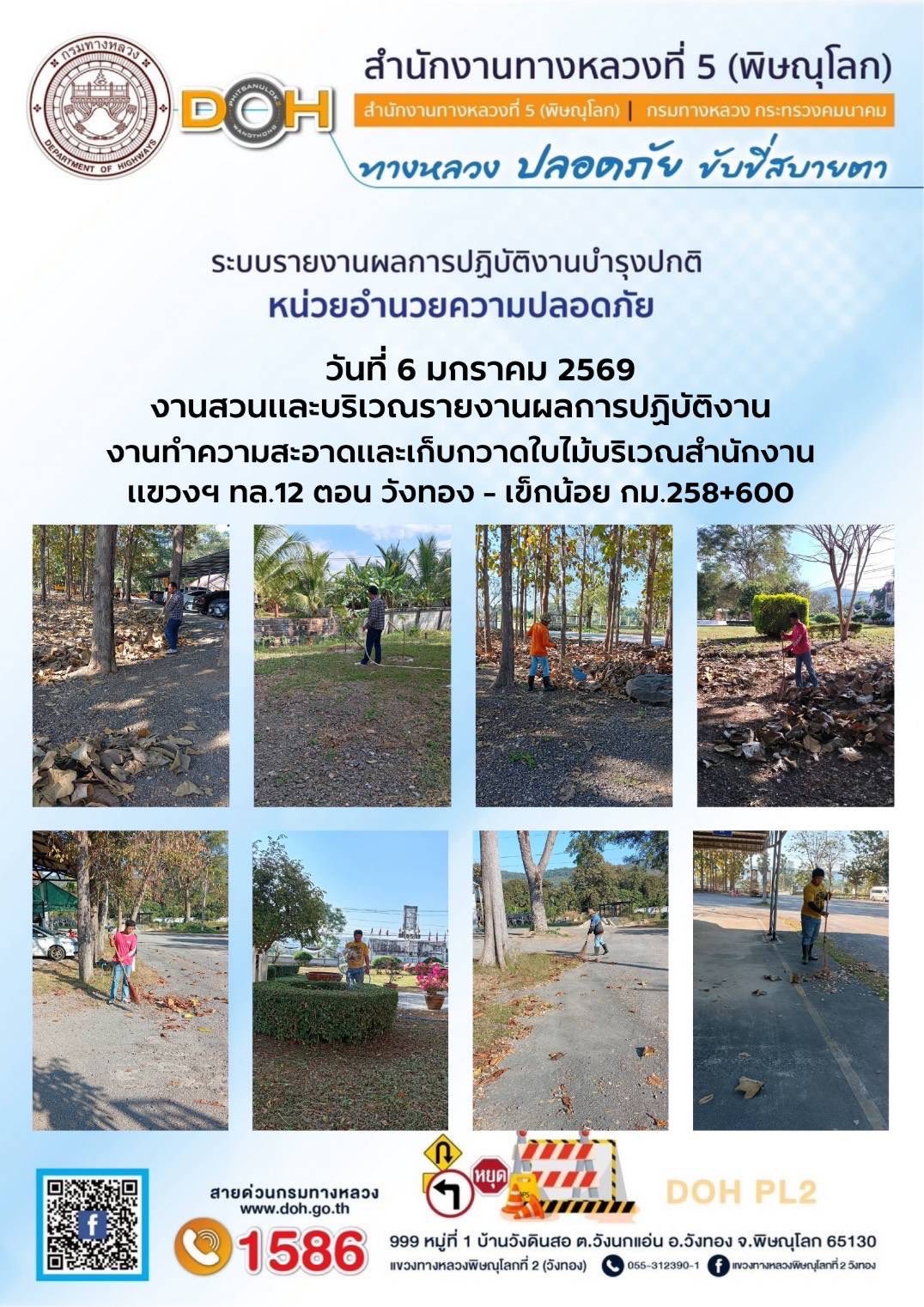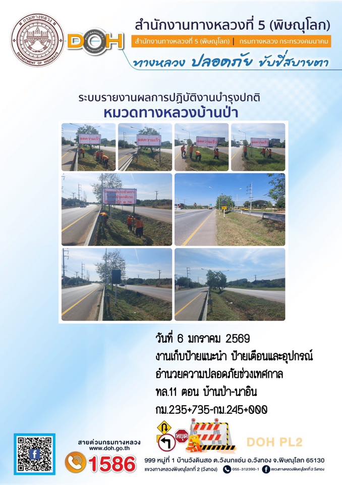 การปฏิบัติงานของ หมวดทางหลวง และ หน่วยงานในสังกัด เพื่ออำนวยความสะดวก และปลอดภัยให้กับประชาชนผู้ใช้เส้นทาง ประจำวันอังคาร ที่ 6 มกราคม 2569