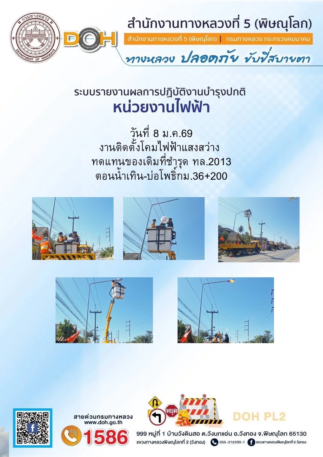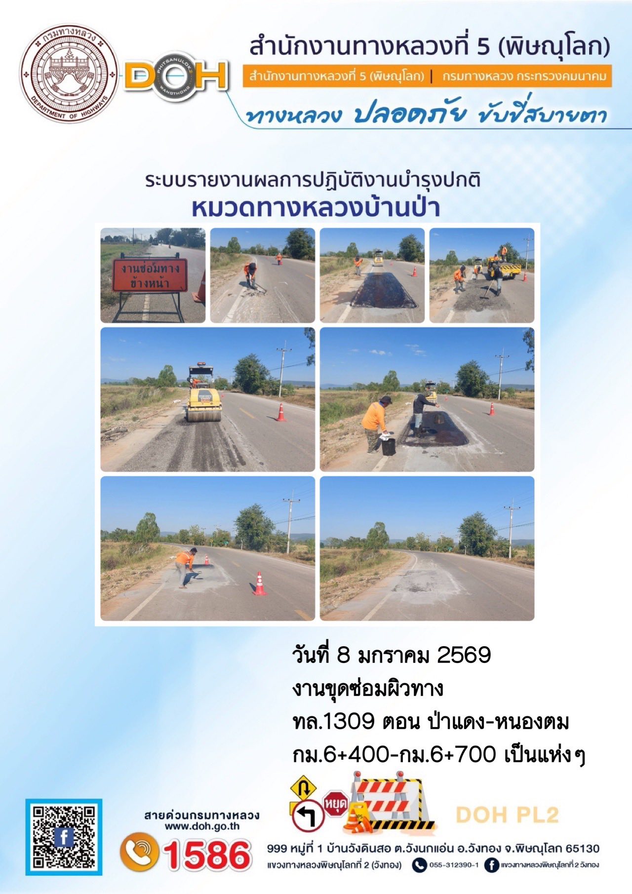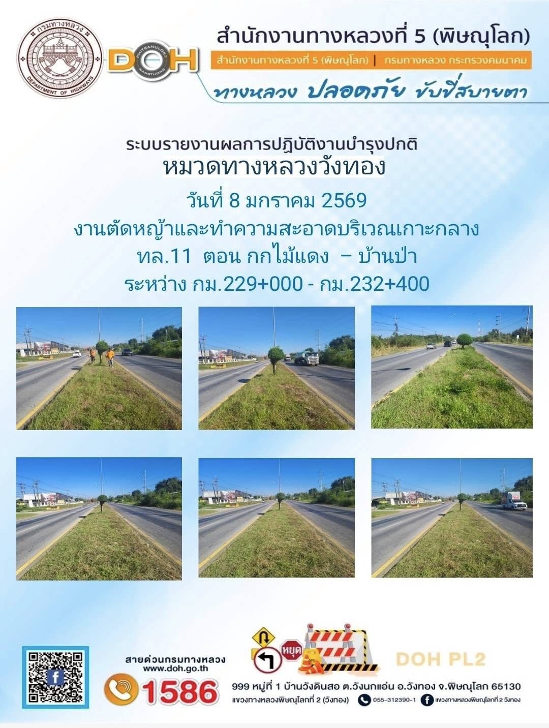 การปฏิบัติงานของ หมวดทางหลวง และ หน่วยงานในสังกัด เพื่ออำนวยความสะดวก และปลอดภัยให้กับประชาชนผู้ใช้เส้นทาง ประจำวันพฤหัสบดี ที่ 8 มกราคม 2569