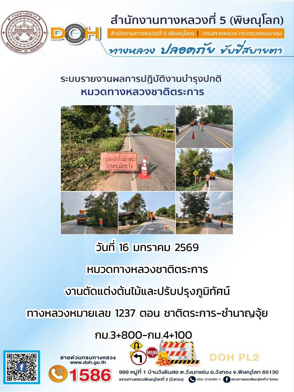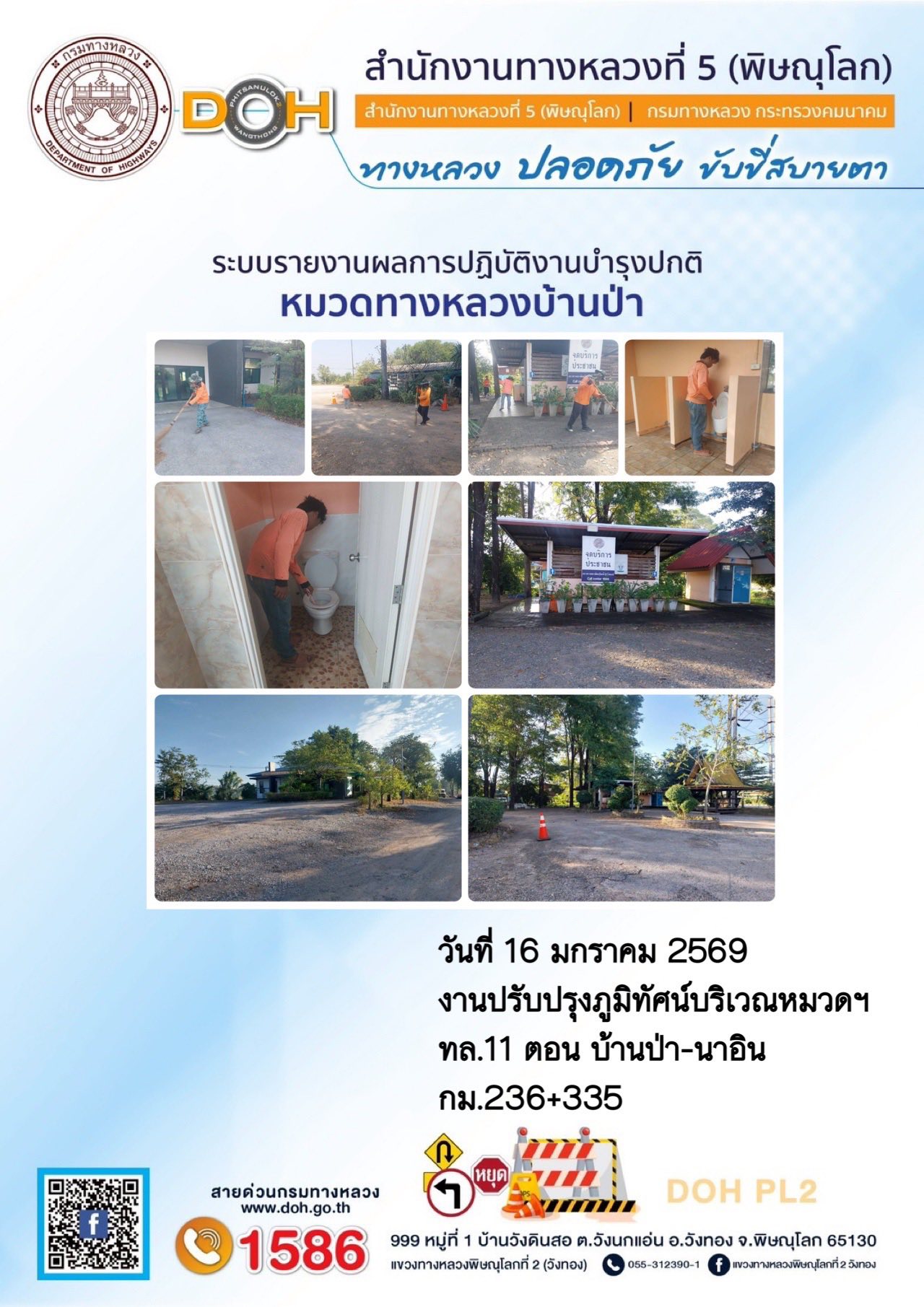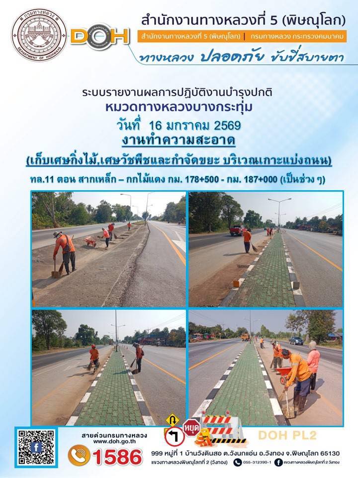 การปฏิบัติงานของ หมวดทางหลวง และ หน่วยงานในสังกัด เพื่ออำนวยความสะดวก และปลอดภัยให้กับประชาชนผู้ใช้เส้นทาง ประจำวันศุกร์ ที่ 16 มกราคม 2569