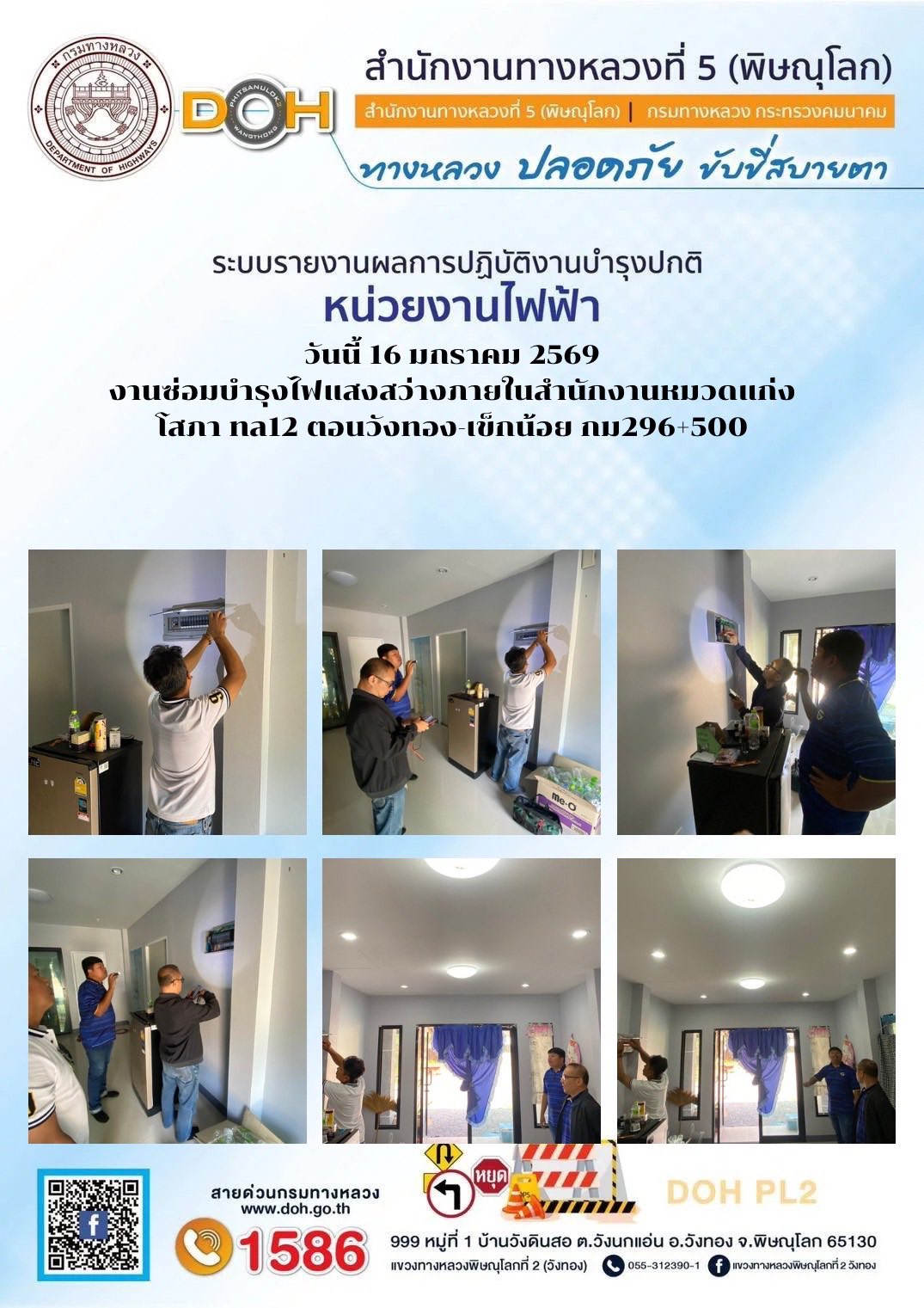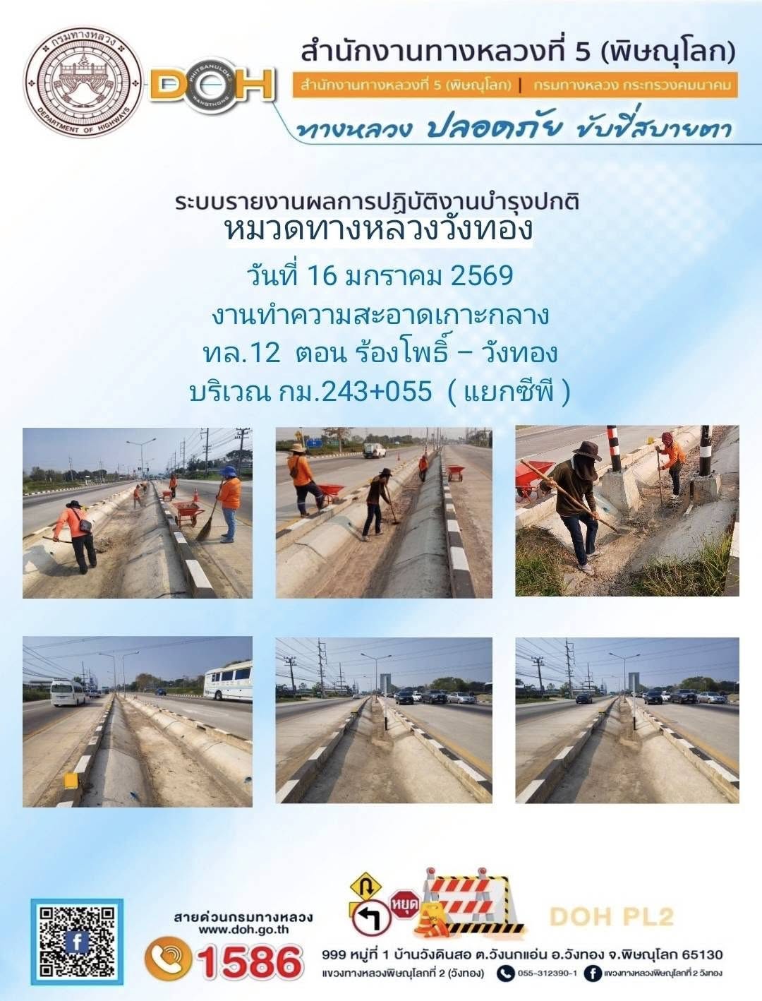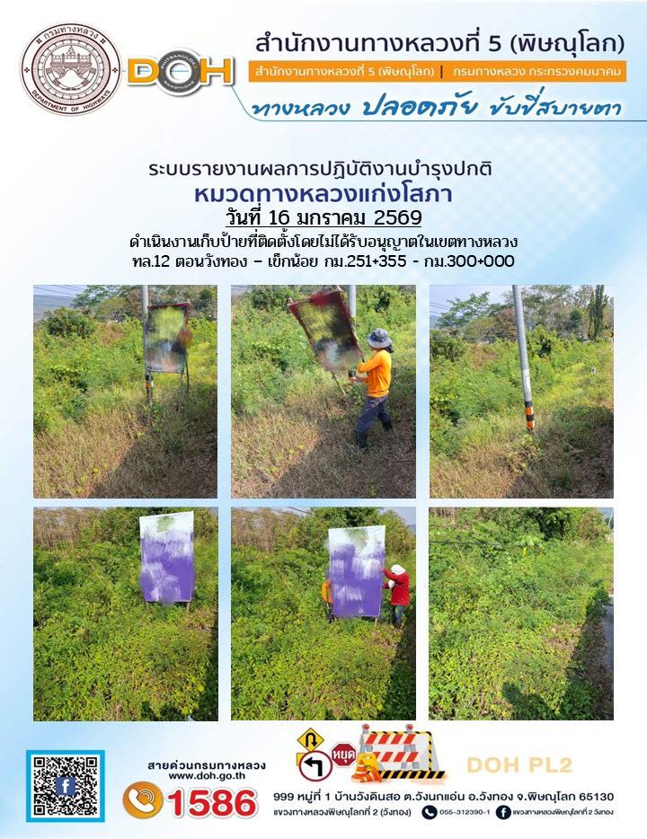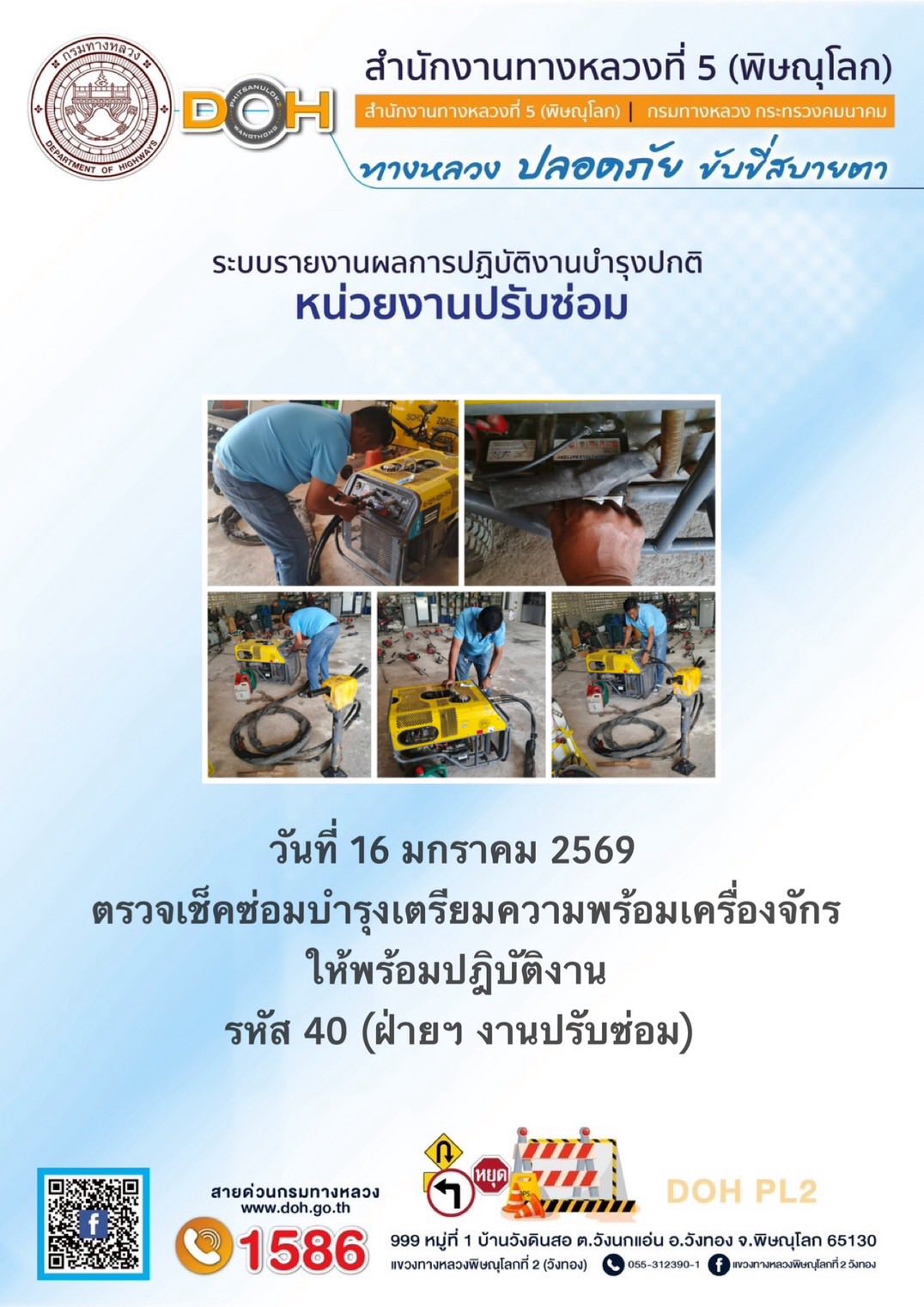 การปฏิบัติงานของ หมวดทางหลวง และ หน่วยงานในสังกัด เพื่ออำนวยความสะดวก และปลอดภัยให้กับประชาชนผู้ใช้เส้นทาง ประจำวันศุกร์ ที่ 16 มกราคม 2569
