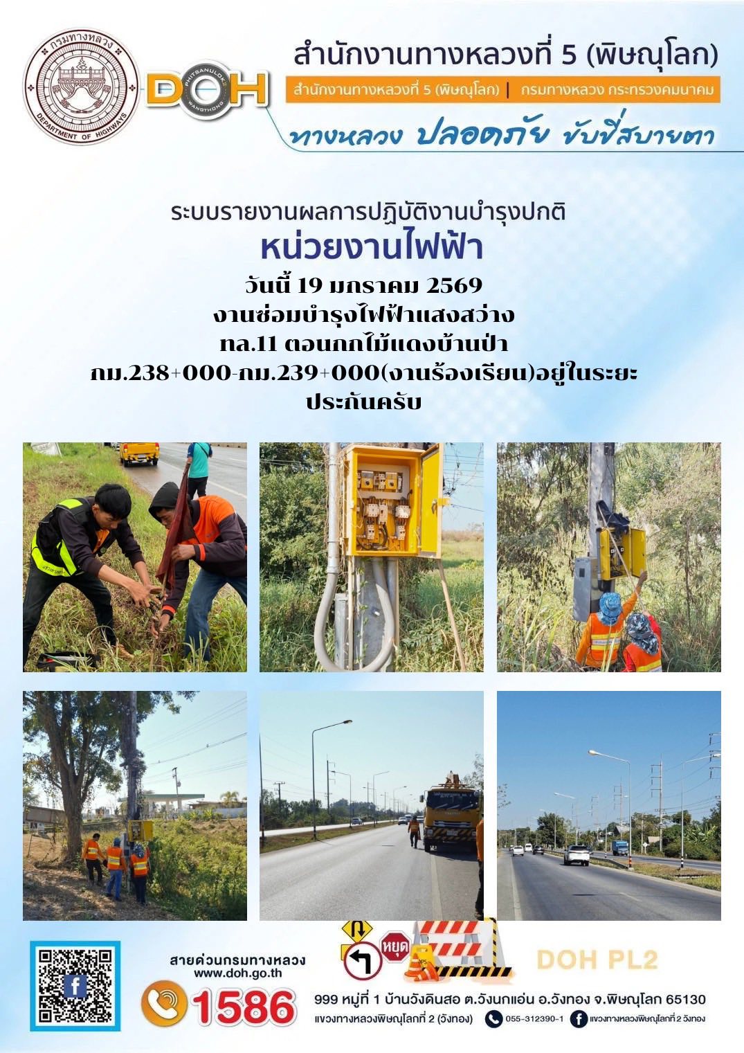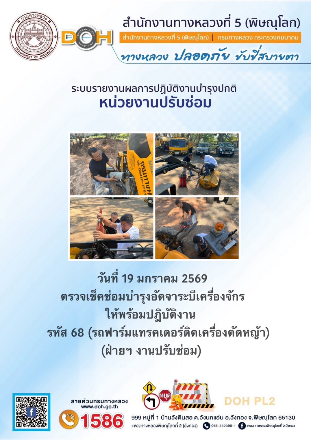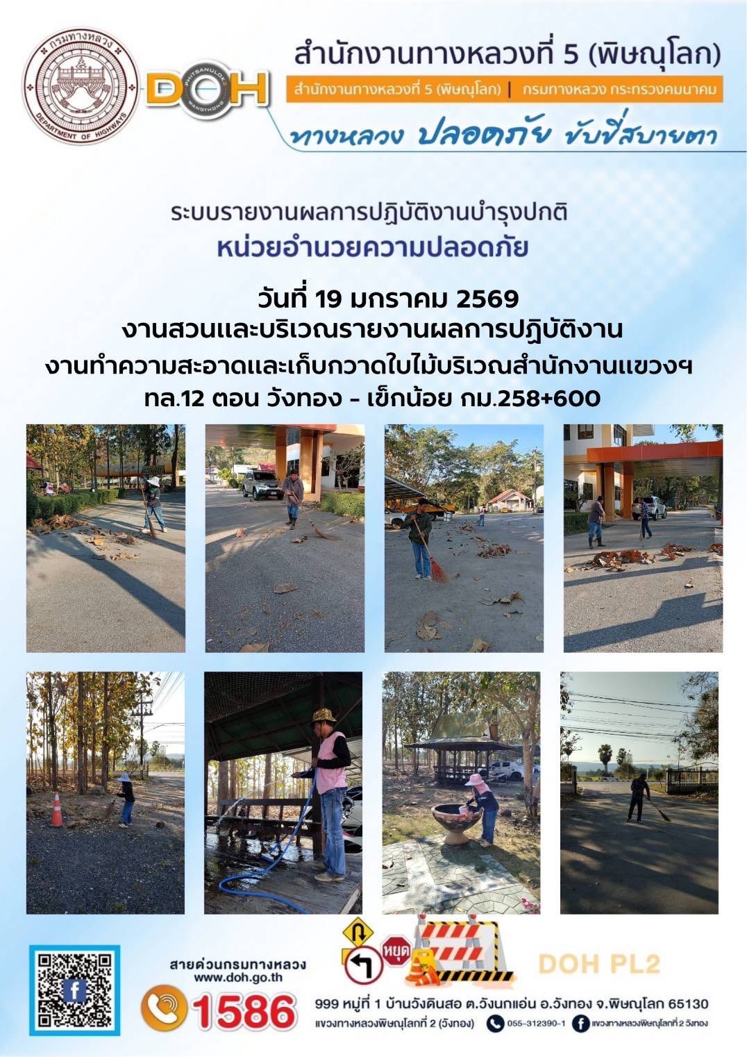 การปฏิบัติงานของ หมวดทางหลวง และ หน่วยงานในสังกัด เพื่ออำนวยความสะดวก และปลอดภัยให้กับประชาชนผู้ใช้เส้นทาง ประจำวันจันทร์ ที่ 19 มกราคม 2569
