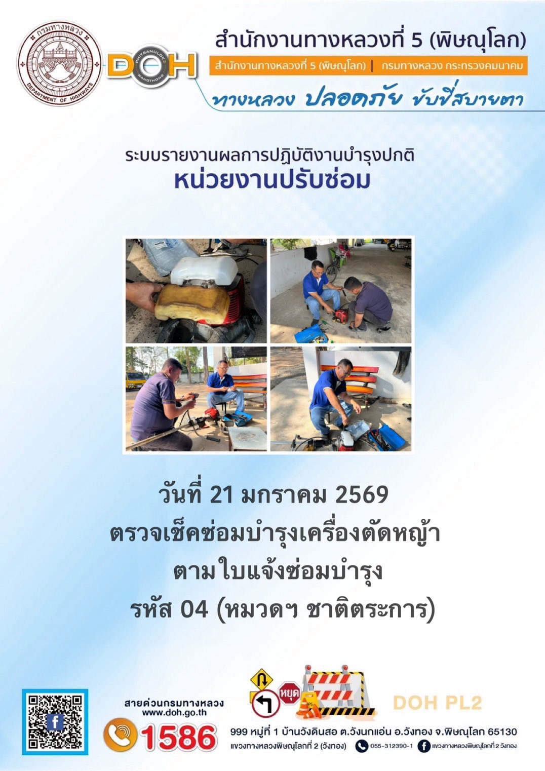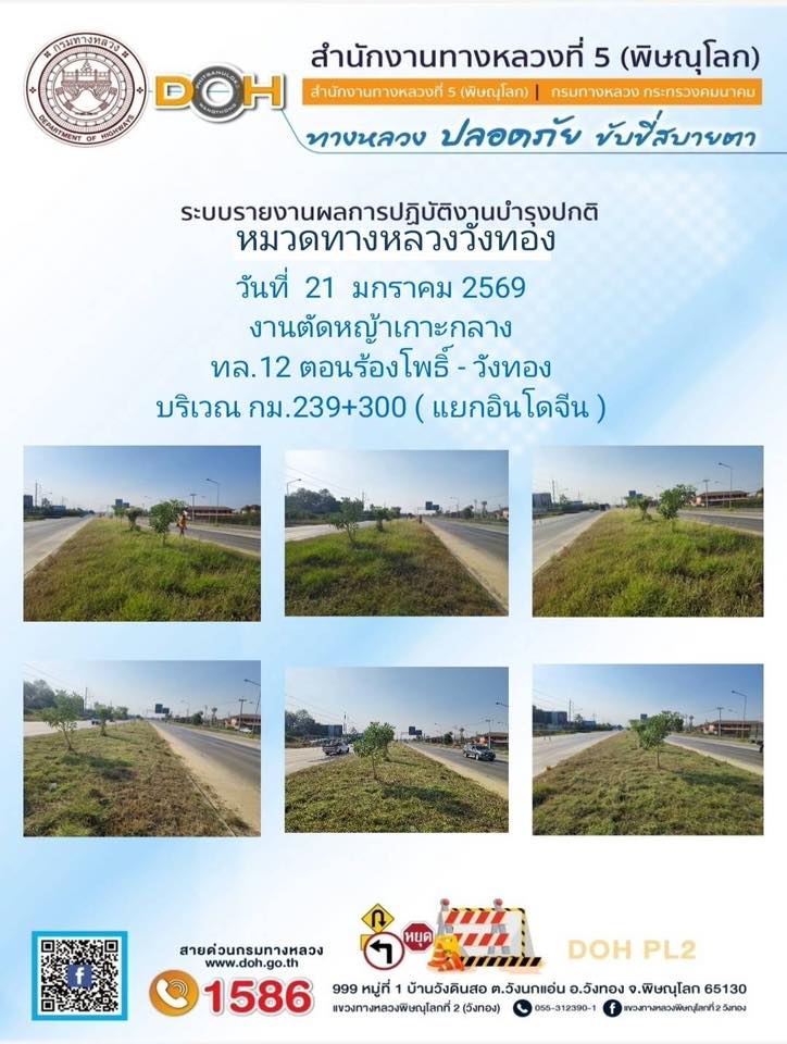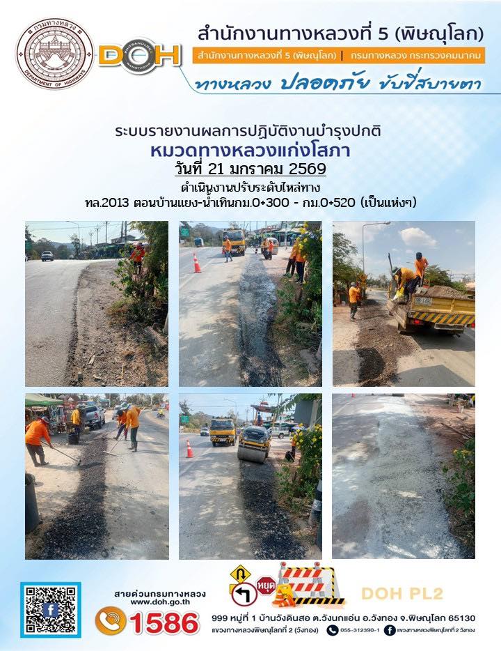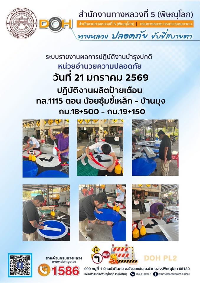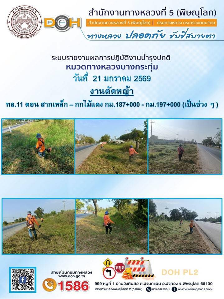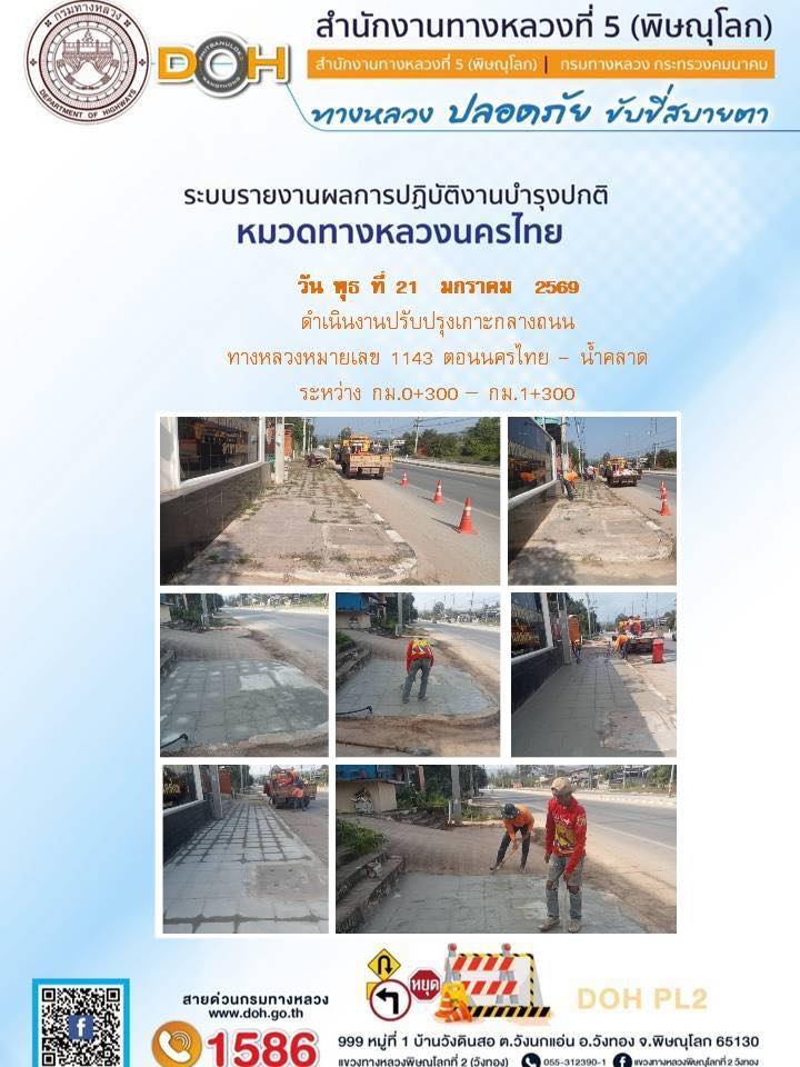 การปฏิบัติงานของ หมวดทางหลวง และ หน่วยงานในสังกัด เพื่ออำนวยความสะดวก และปลอดภัยให้กับประชาชนผู้ใช้เส้นทาง ประจำวันพุธ ที่ 21 มกราคม 2569