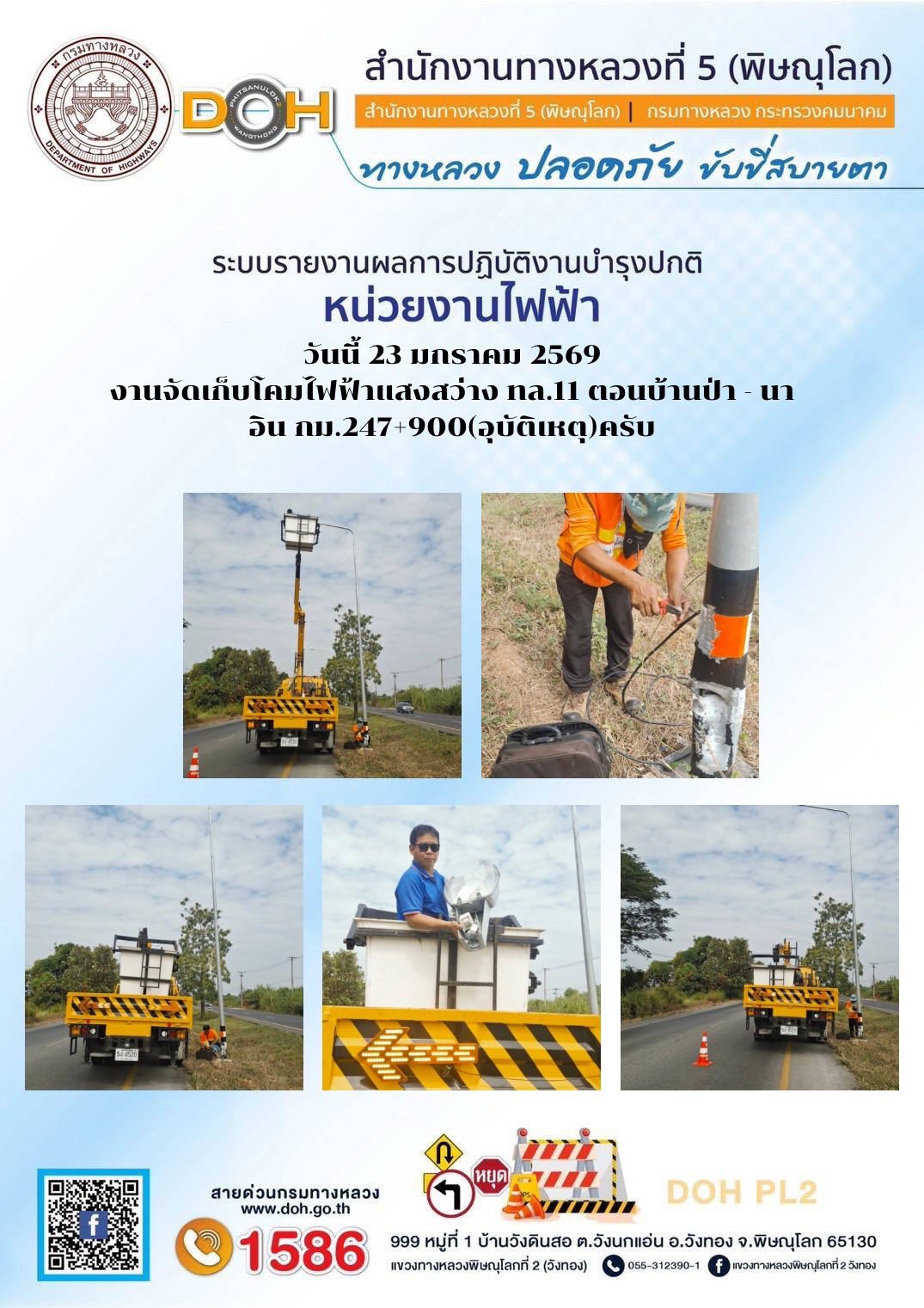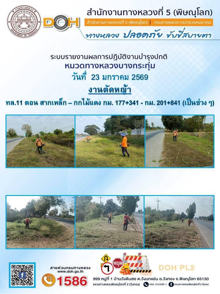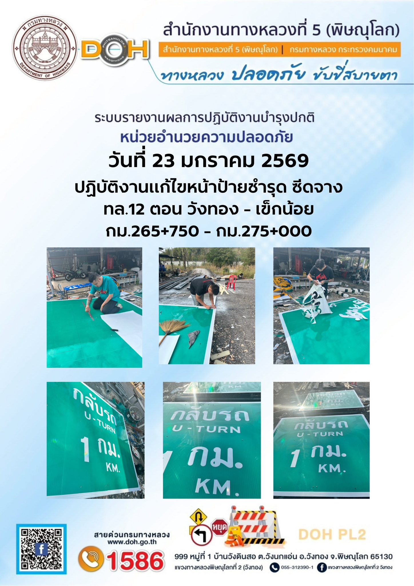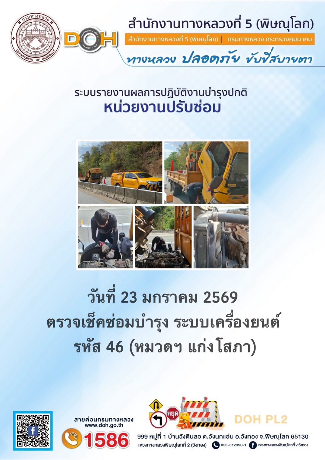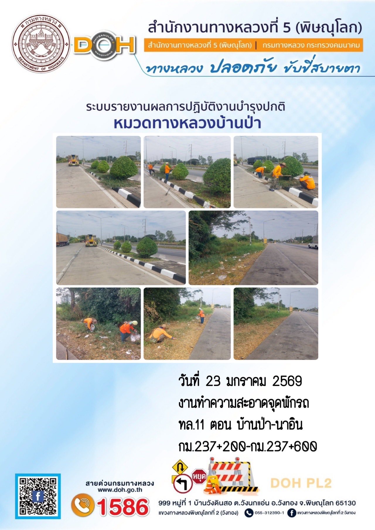 การปฏิบัติงานของ หมวดทางหลวง และ หน่วยงานในสังกัด เพื่ออำนวยความสะดวก และปลอดภัยให้กับประชาชนผู้ใช้เส้นทาง ประจำวันศุกร์ ที่ 23 มกราคม 2569