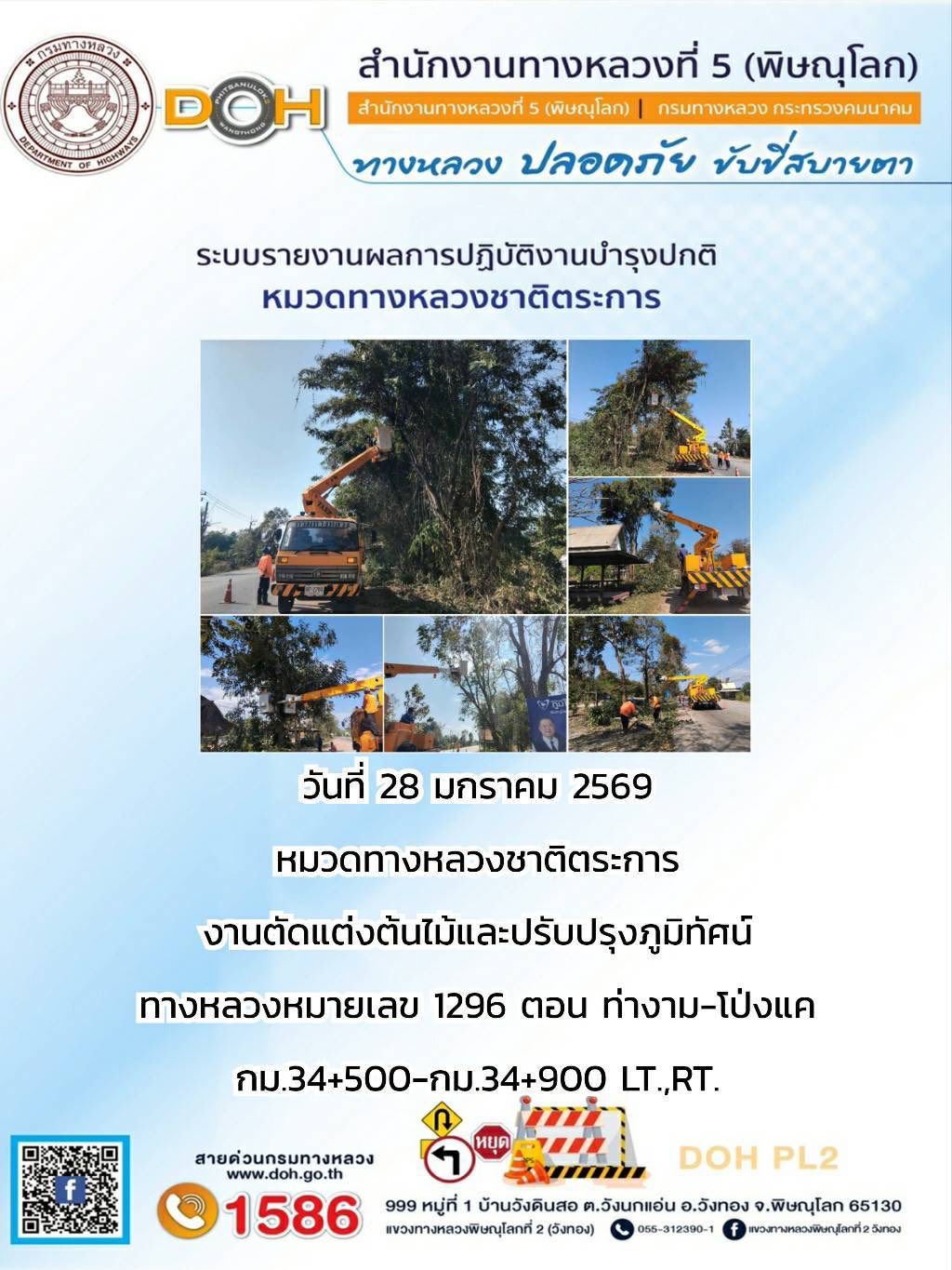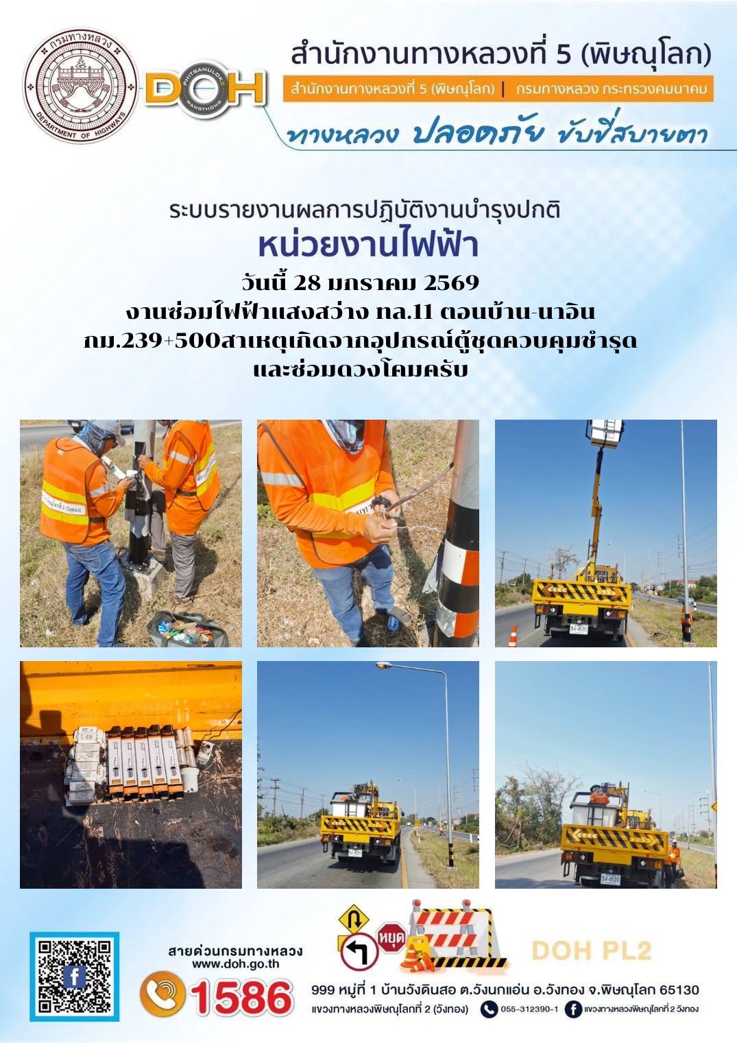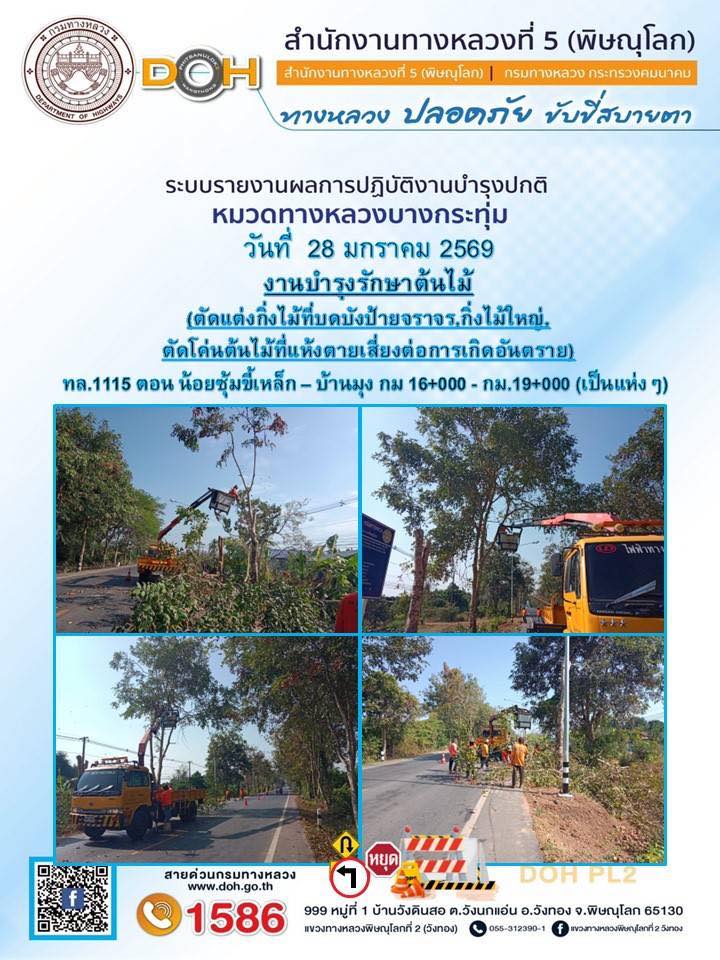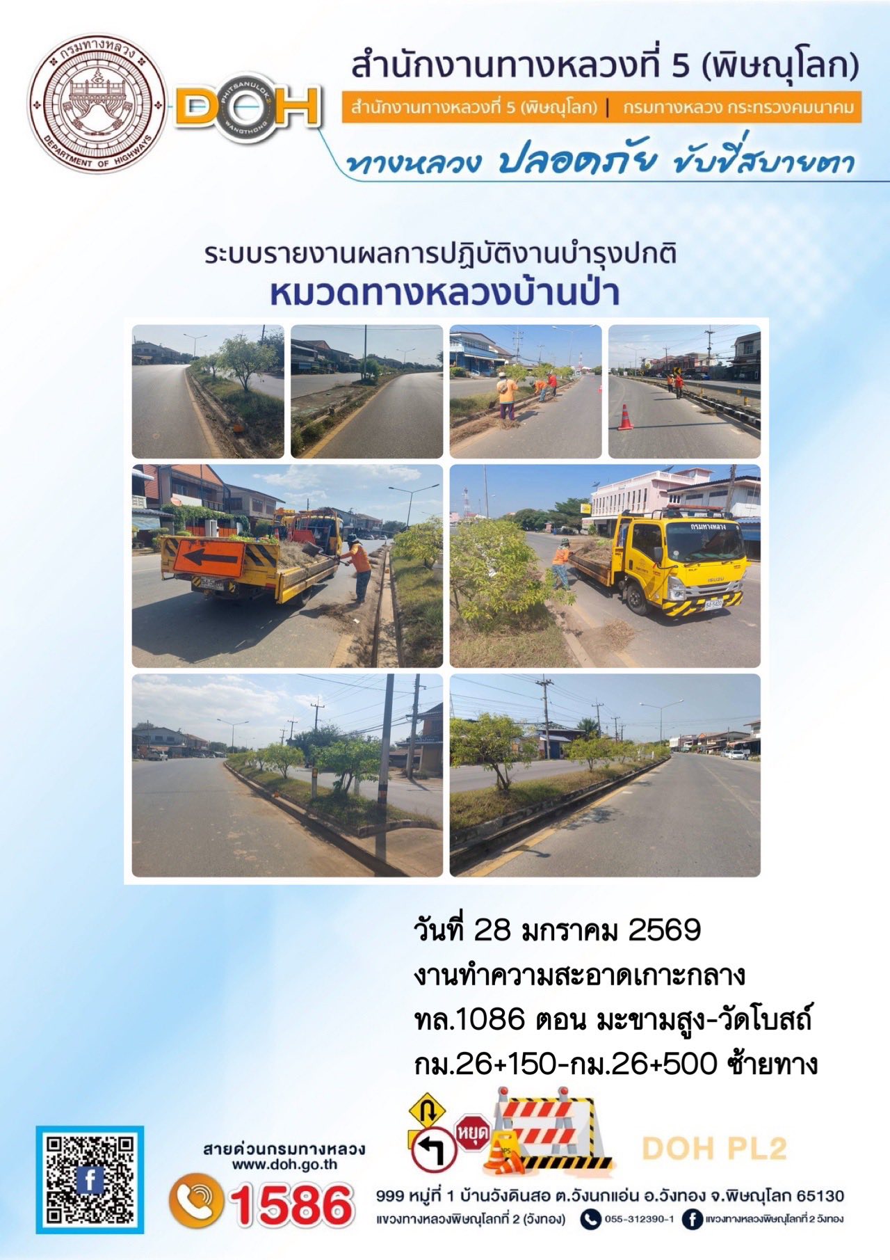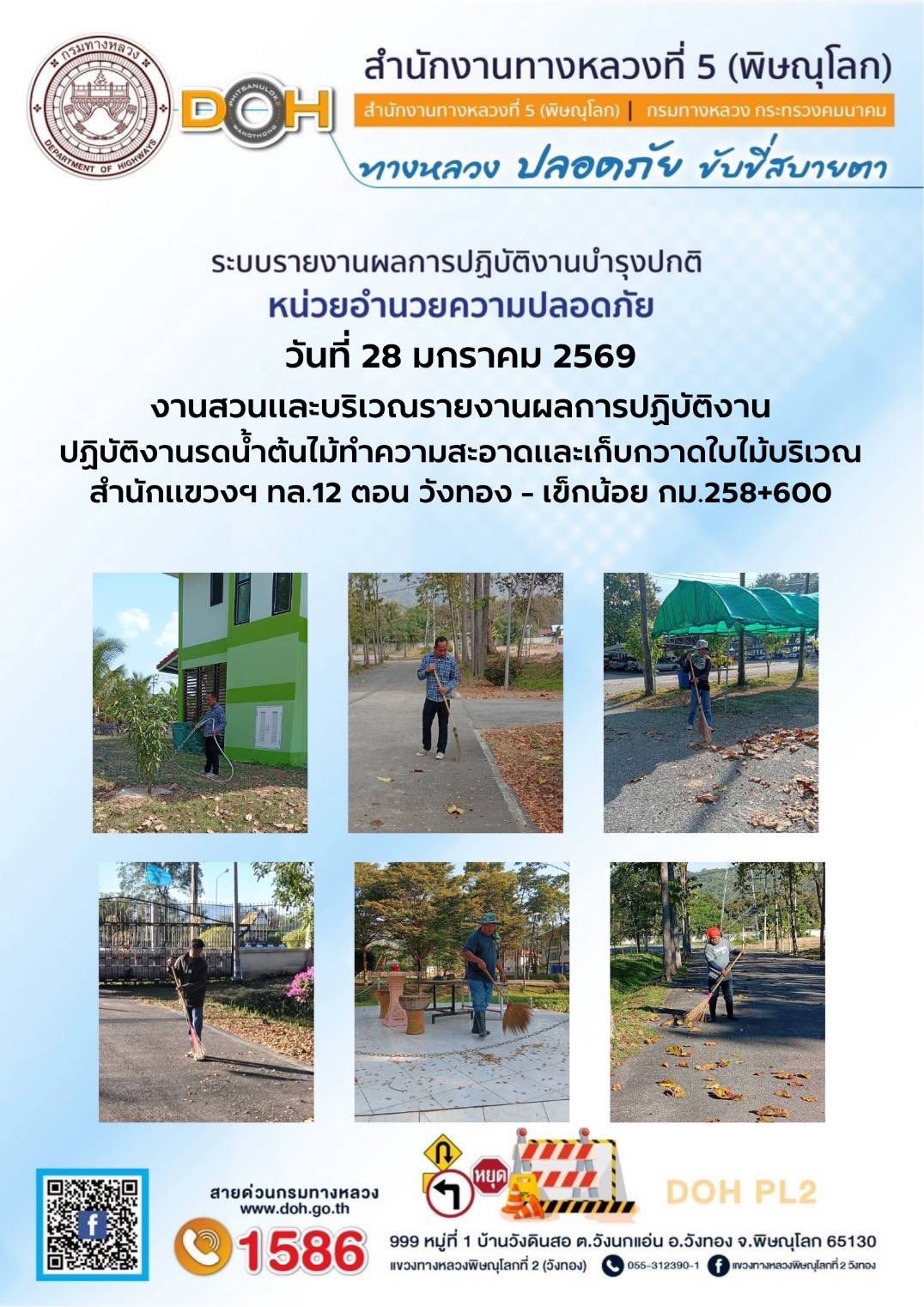 การปฏิบัติงานของ หมวดทางหลวง และ หน่วยงานในสังกัด เพื่ออำนวยความสะดวก และปลอดภัยให้กับประชาชนผู้ใช้เส้นทาง ประจำวันพุธ ที่ 28 มกราคม 2569