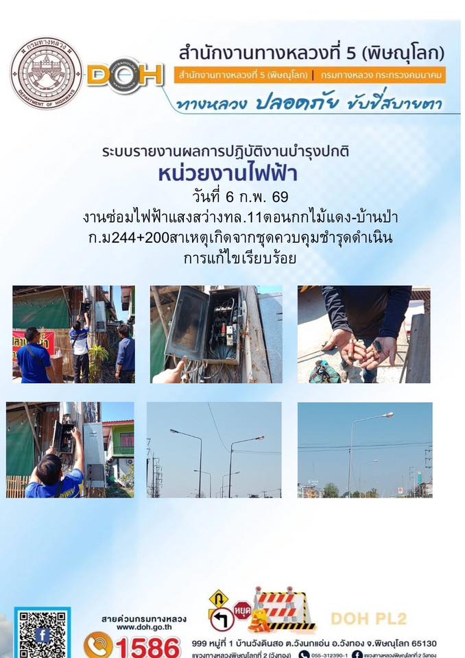 การปฏิบัติงานของ หมวดทางหลวง และ หน่วยงานในสังกัด เพื่ออำนวยความสะดวก และปลอดภัยให้กับประชาชนผู้ใช้เส้นทาง ประจำวันศุกร์ ที่ 6 กุมภาพันธ์ 2569