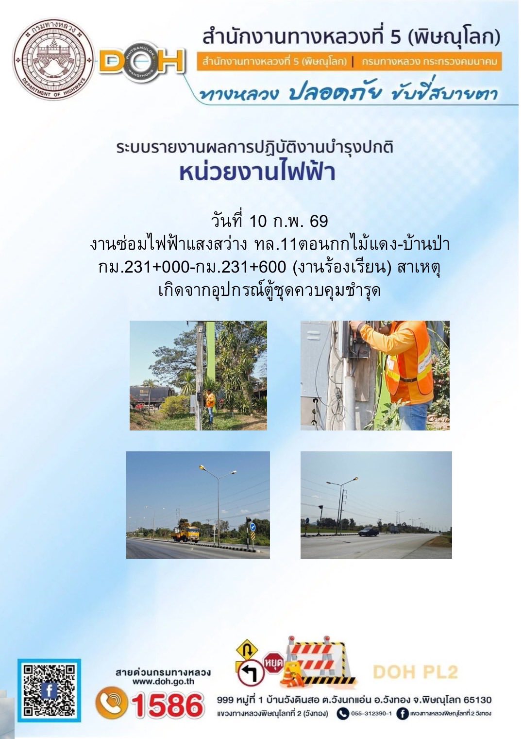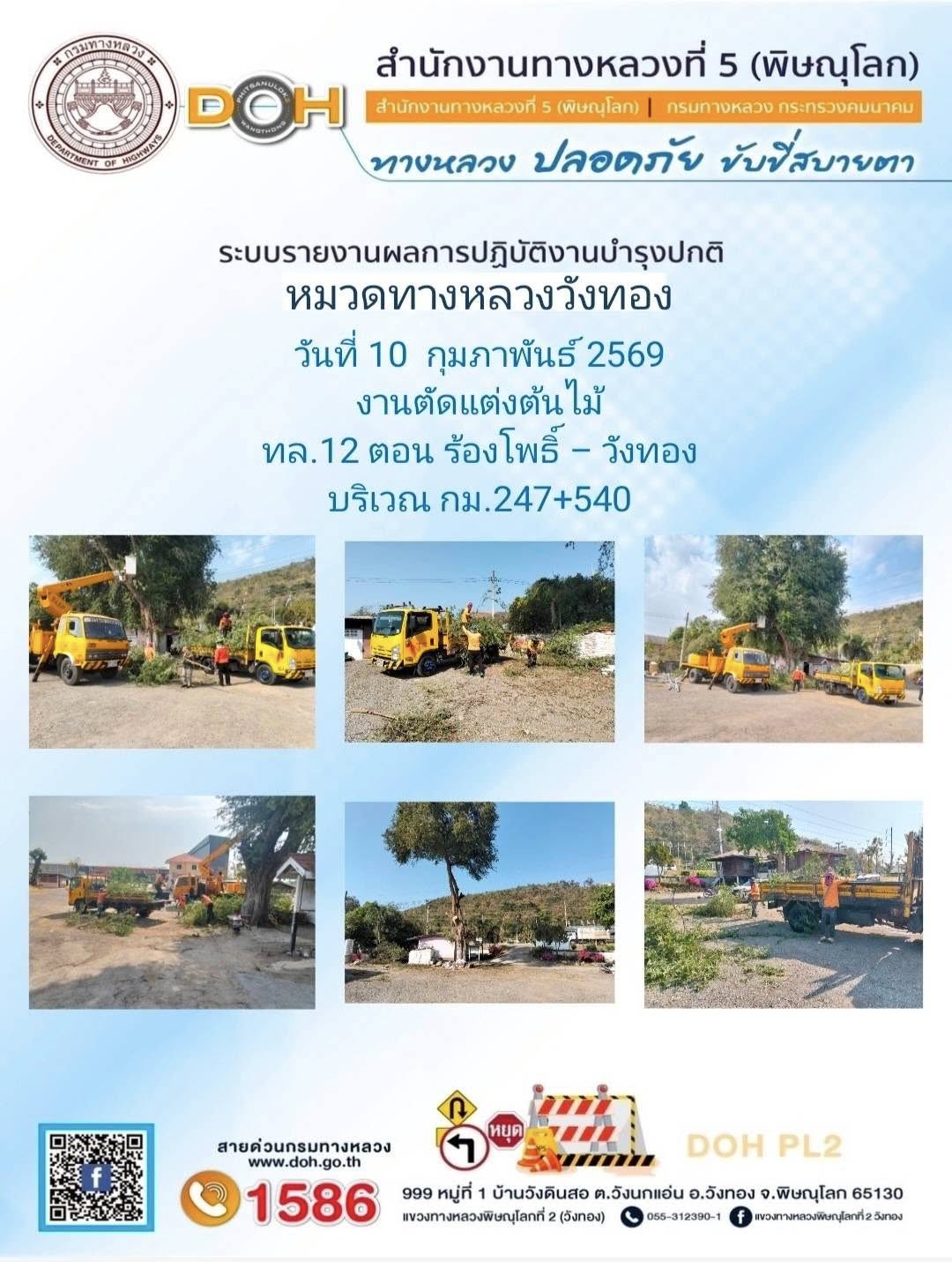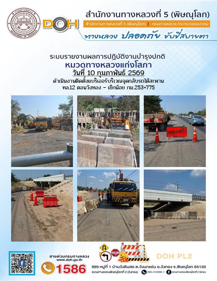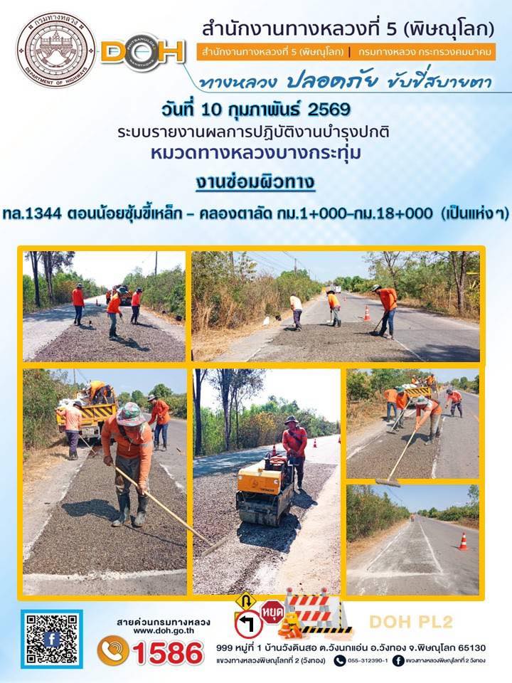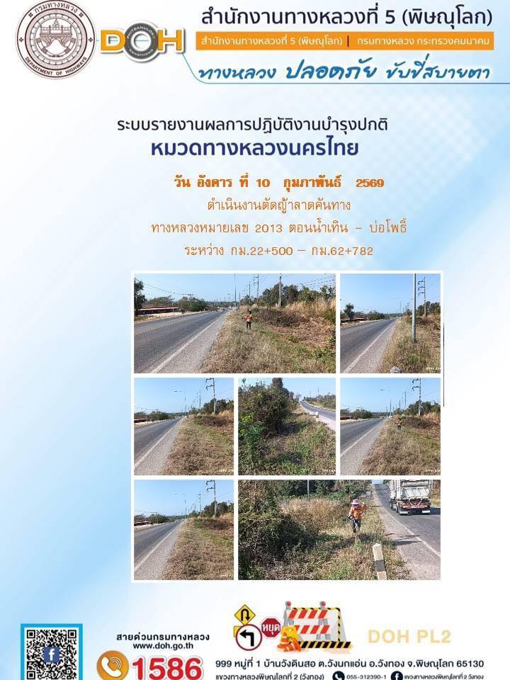 การปฏิบัติงานของ หมวดทางหลวง และ หน่วยงานในสังกัด เพื่ออำนวยความสะดวก และปลอดภัยให้กับประชาชนผู้ใช้เส้นทาง ประจำวันอังคาร ที่ 10 กุมภาพันธ์ 2569
