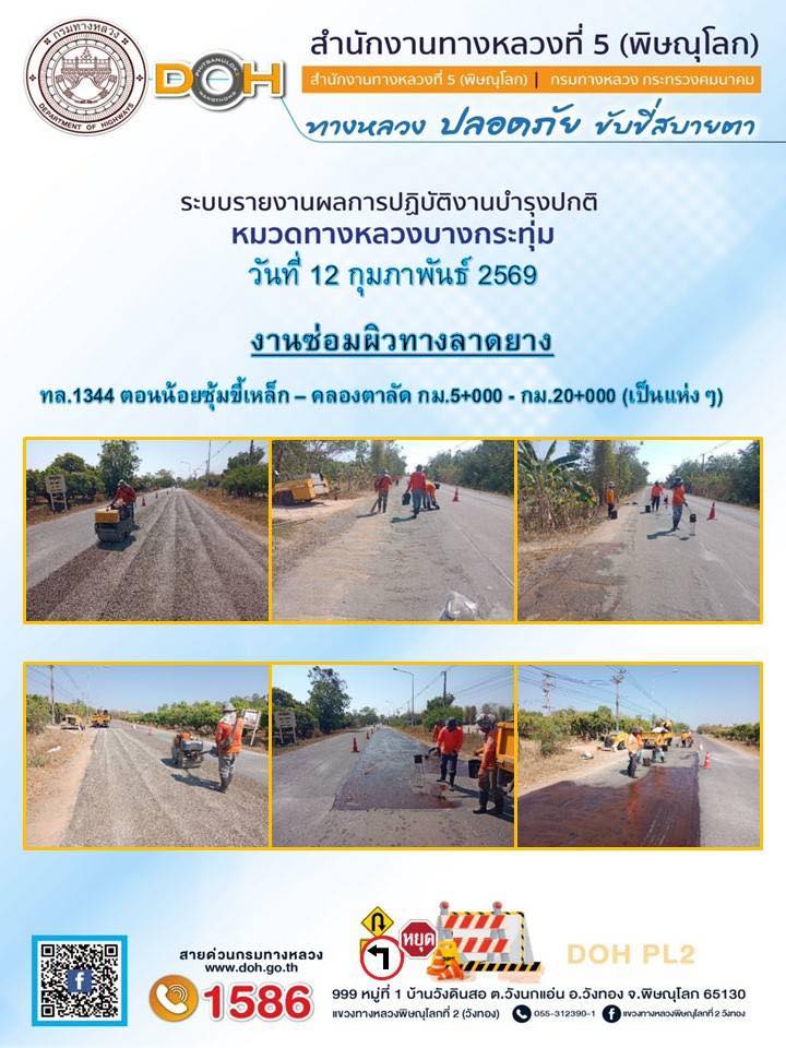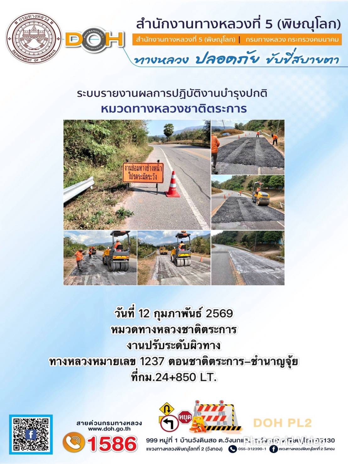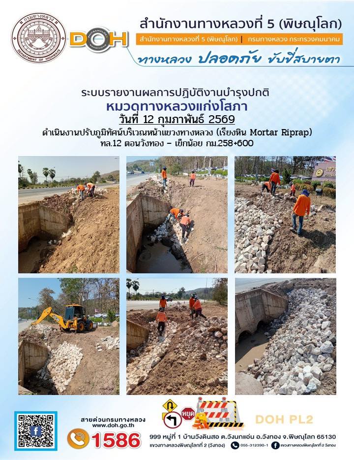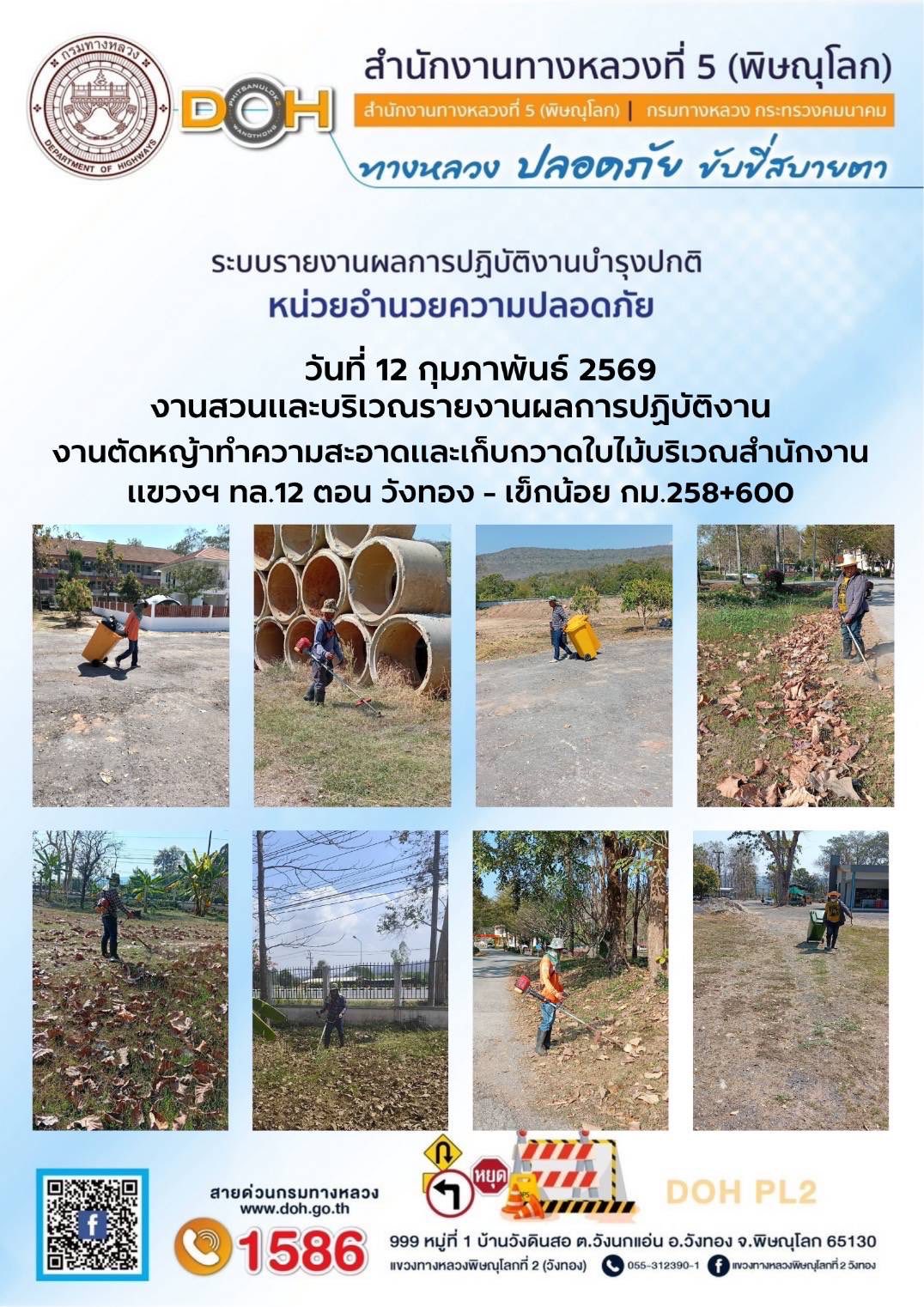 การปฏิบัติงานของ หมวดทางหลวง และ หน่วยงานในสังกัด เพื่ออำนวยความสะดวก และปลอดภัยให้กับประชาชนผู้ใช้เส้นทาง ประจำวันพฤหัสบดี ที่ 12 กุมภาพันธ์ 2569