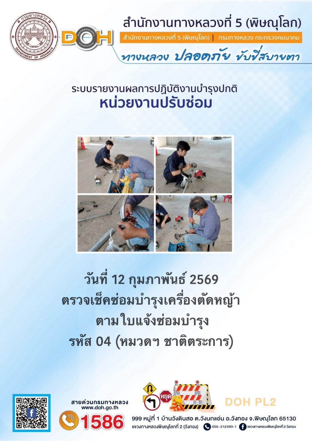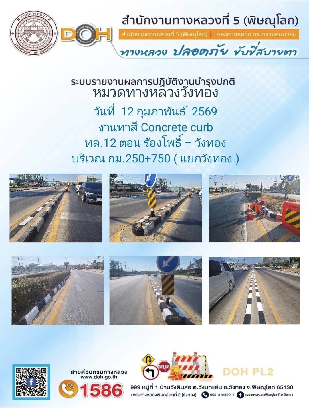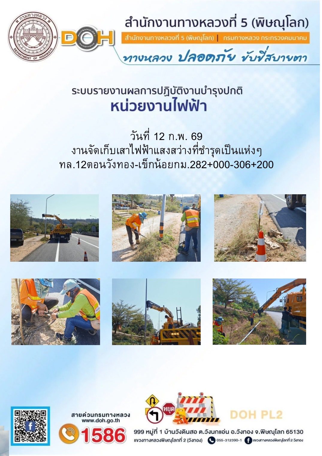 การปฏิบัติงานของ หมวดทางหลวง และ หน่วยงานในสังกัด เพื่ออำนวยความสะดวก และปลอดภัยให้กับประชาชนผู้ใช้เส้นทาง ประจำวันพฤหัสบดี ที่ 12 กุมภาพันธ์ 2569