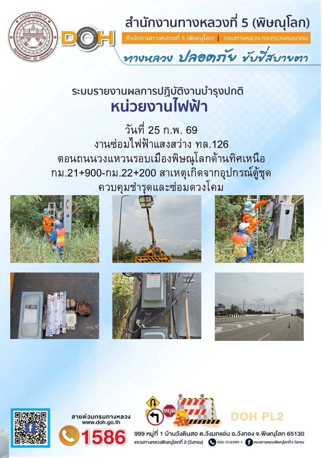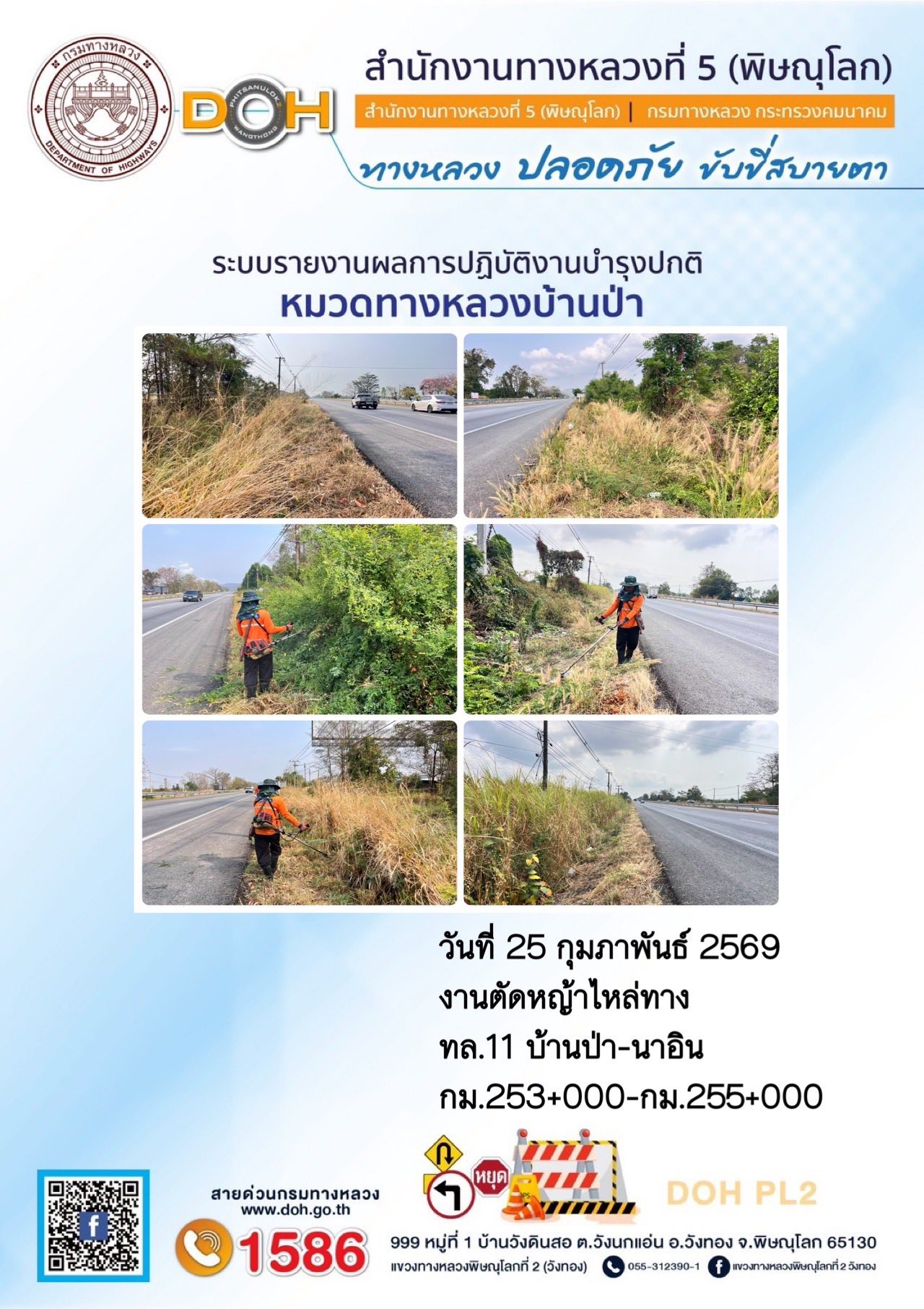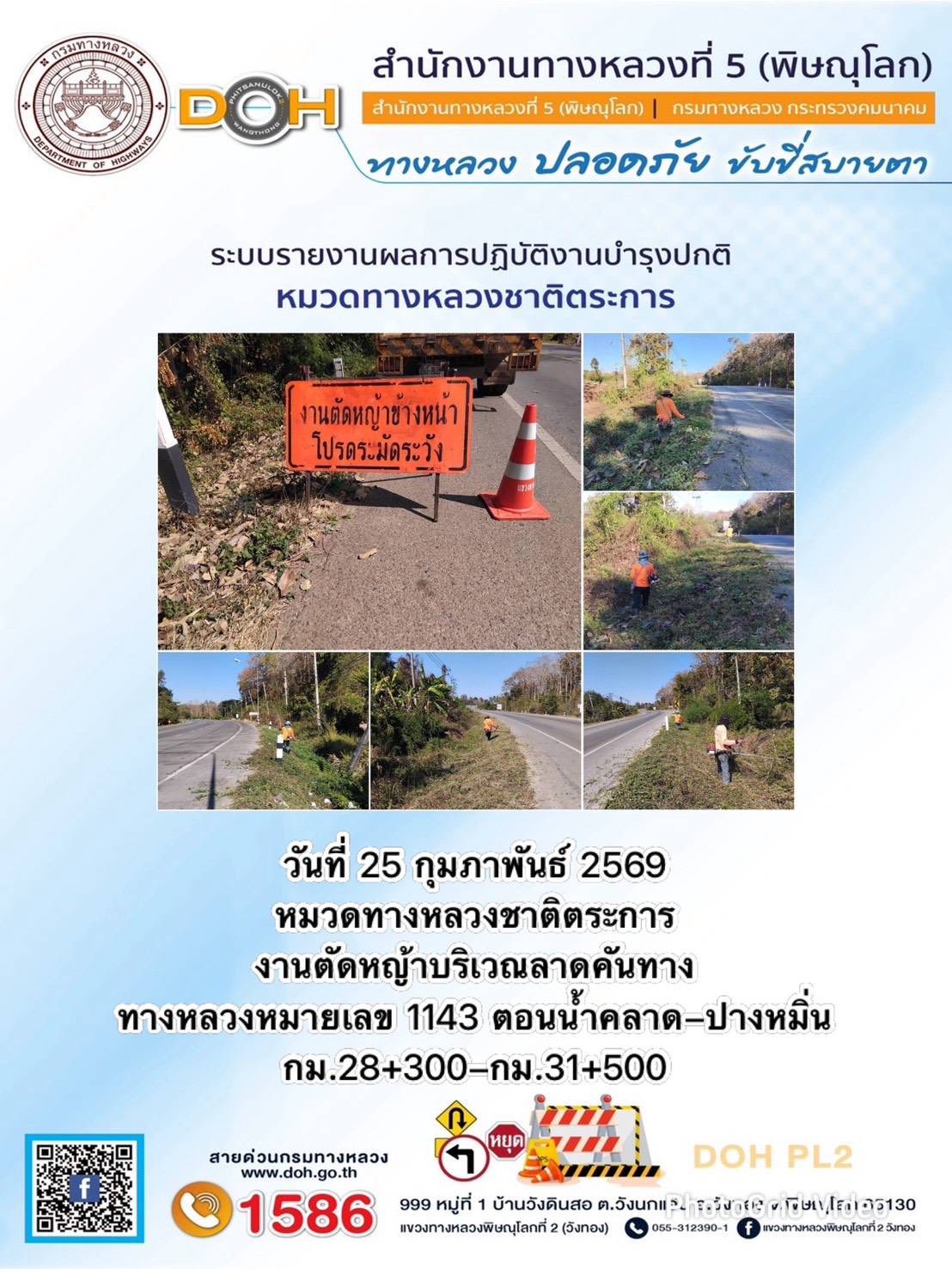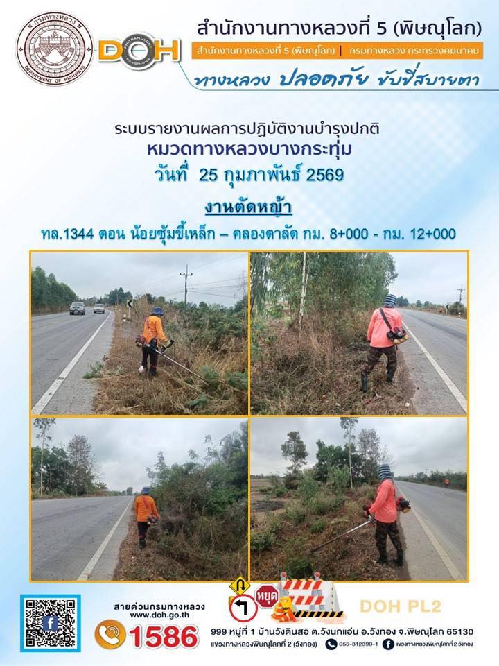 การปฏิบัติงานของ หมวดทางหลวง และ หน่วยงานในสังกัด เพื่ออำนวยความสะดวก และปลอดภัยให้กับประชาชนผู้ใช้เส้นทาง ประจำวันพุธ ที่ 25 กุมภาพันธ์ 2569
