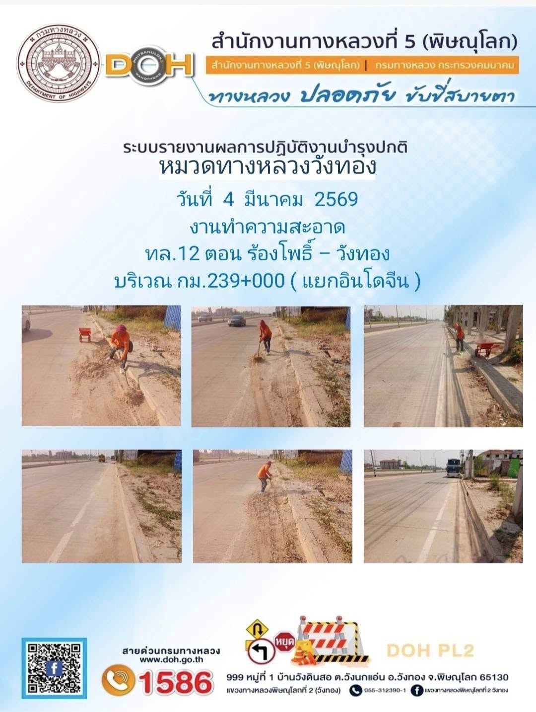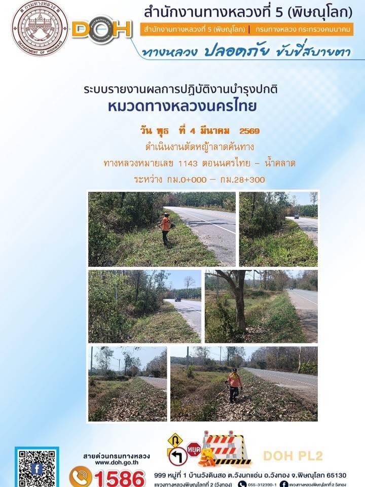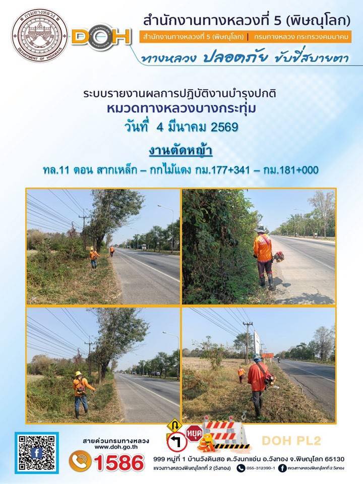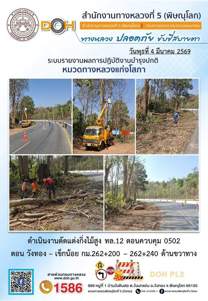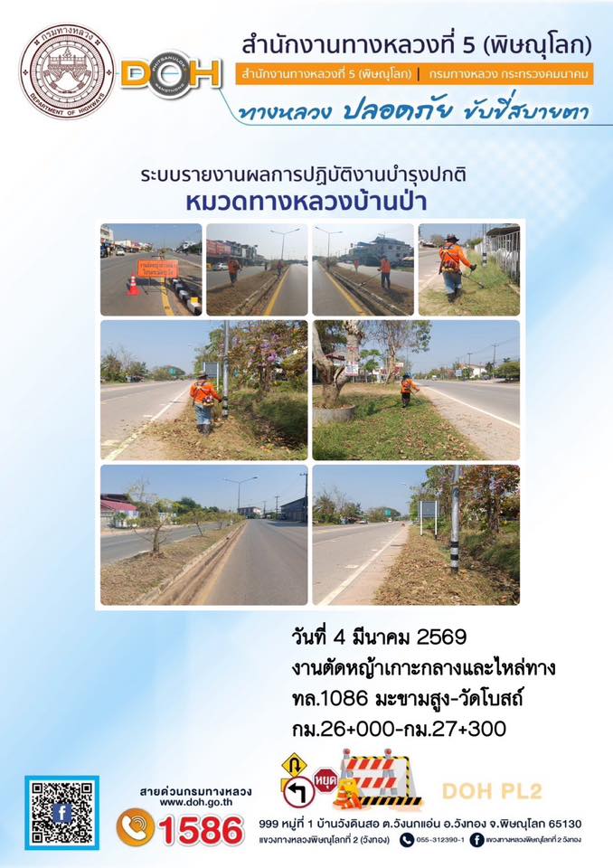 การปฏิบัติงานของ หมวดทางหลวง และ หน่วยงานในสังกัด เพื่ออำนวยความสะดวก และปลอดภัยให้กับประชาชนผู้ใช้เส้นทาง ประจำวันพุธ ที่ 4 กุมภาพันธ์ 2569