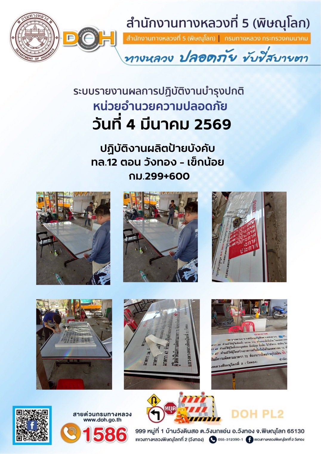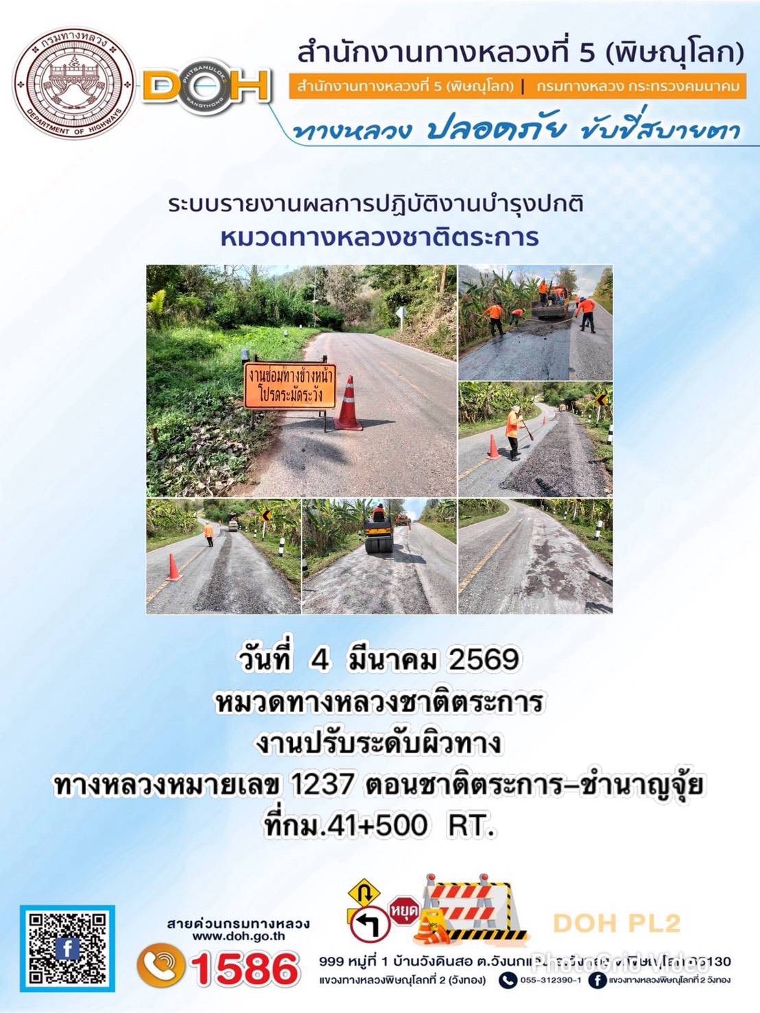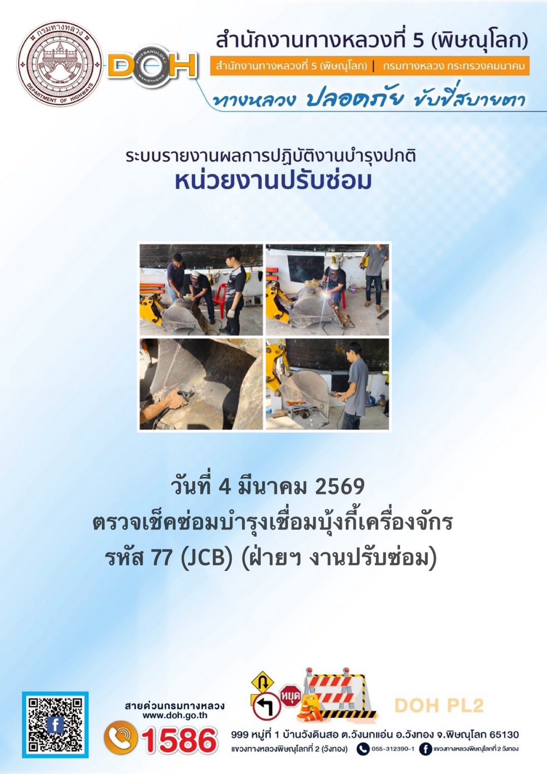 การปฏิบัติงานของ หมวดทางหลวง และ หน่วยงานในสังกัด เพื่ออำนวยความสะดวก และปลอดภัยให้กับประชาชนผู้ใช้เส้นทาง ประจำวันพุธ ที่ 4 กุมภาพันธ์ 2569