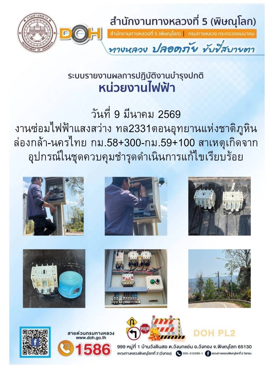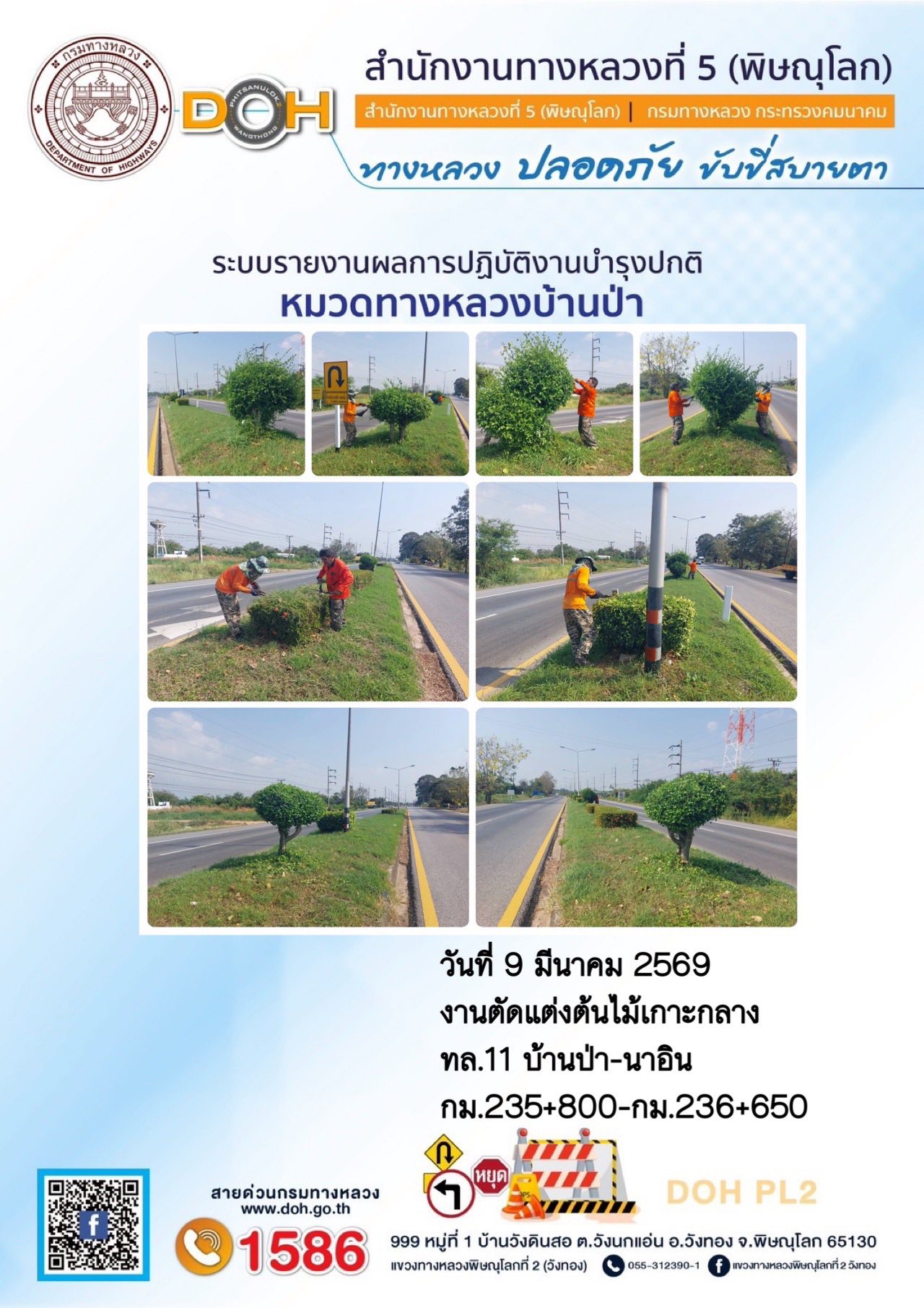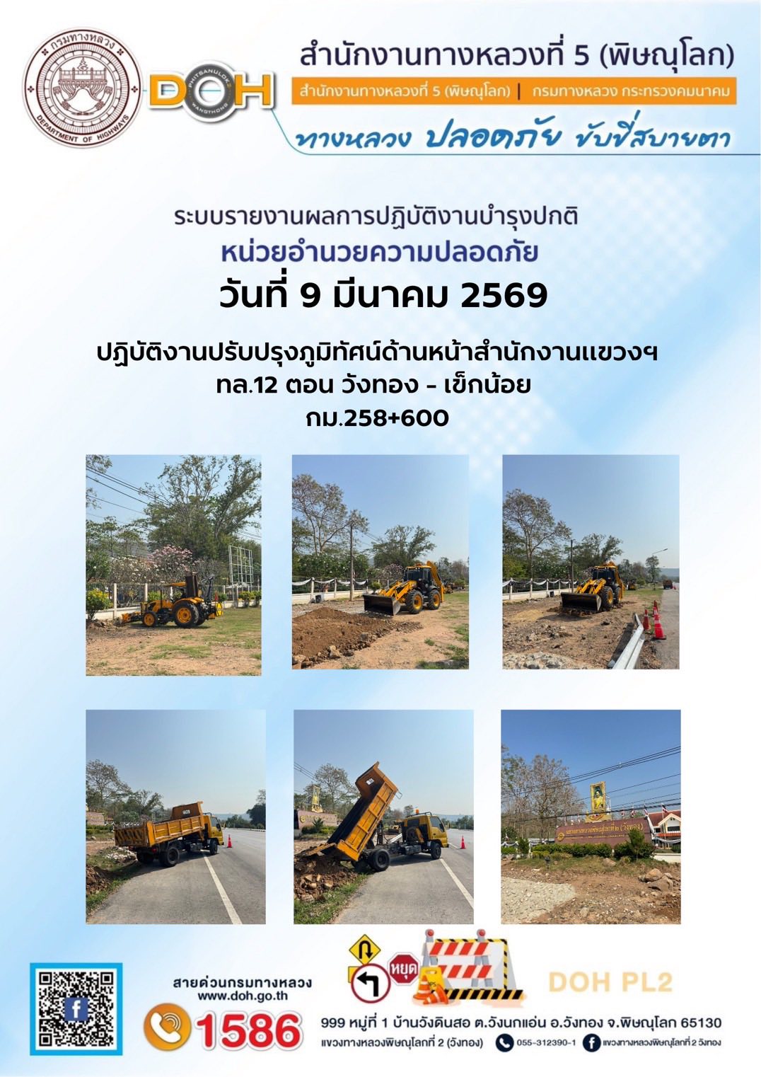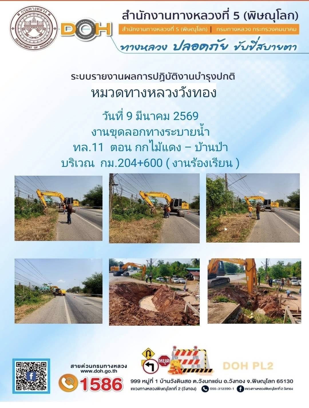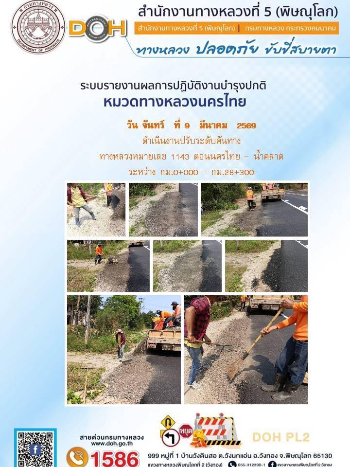 การปฏิบัติงานของ หมวดทางหลวง และ หน่วยงานในสังกัด เพื่ออำนวยความสะดวก และปลอดภัยให้กับประชาชนผู้ใช้เส้นทาง ประจำวันจันทร์ ที่ 9 กุมภาพันธ์ 2569
