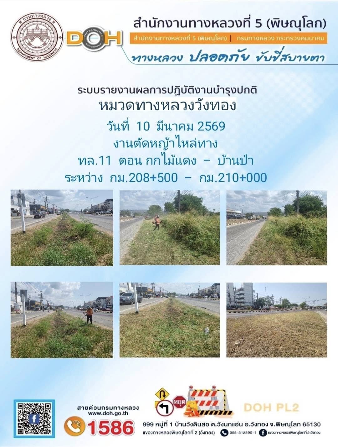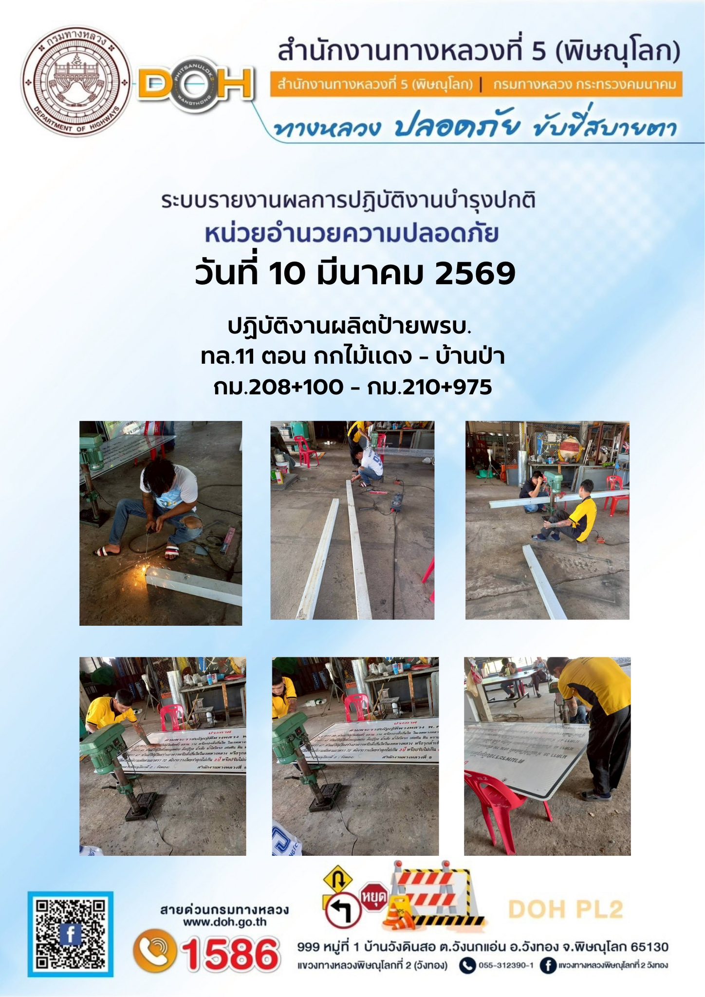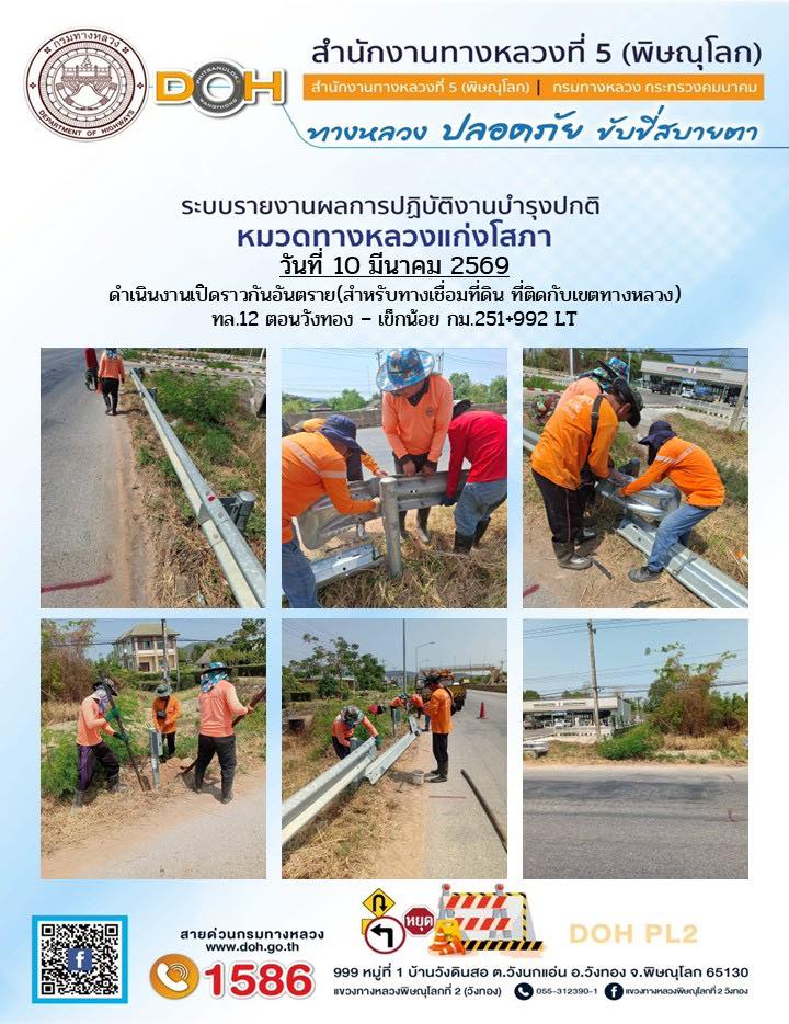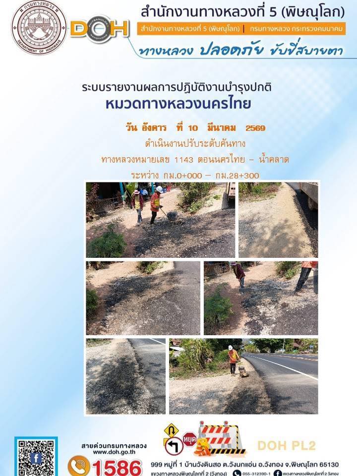 การปฏิบัติงานของ หมวดทางหลวง และ หน่วยงานในสังกัด เพื่ออำนวยความสะดวก และปลอดภัยให้กับประชาชนผู้ใช้เส้นทาง ประจำวันอังคาร ที่ 10 กุมภาพันธ์ 2569