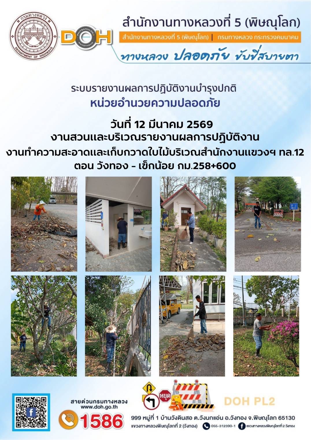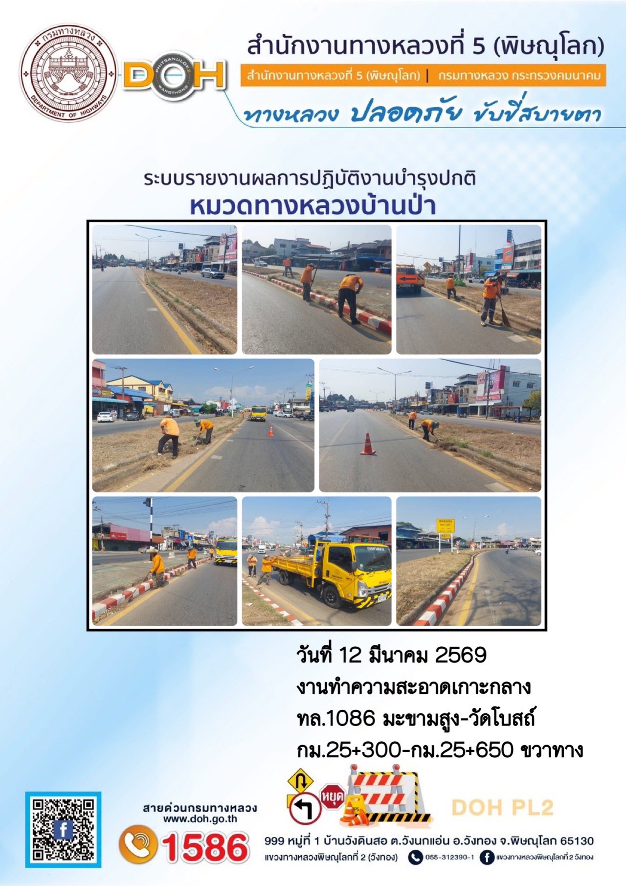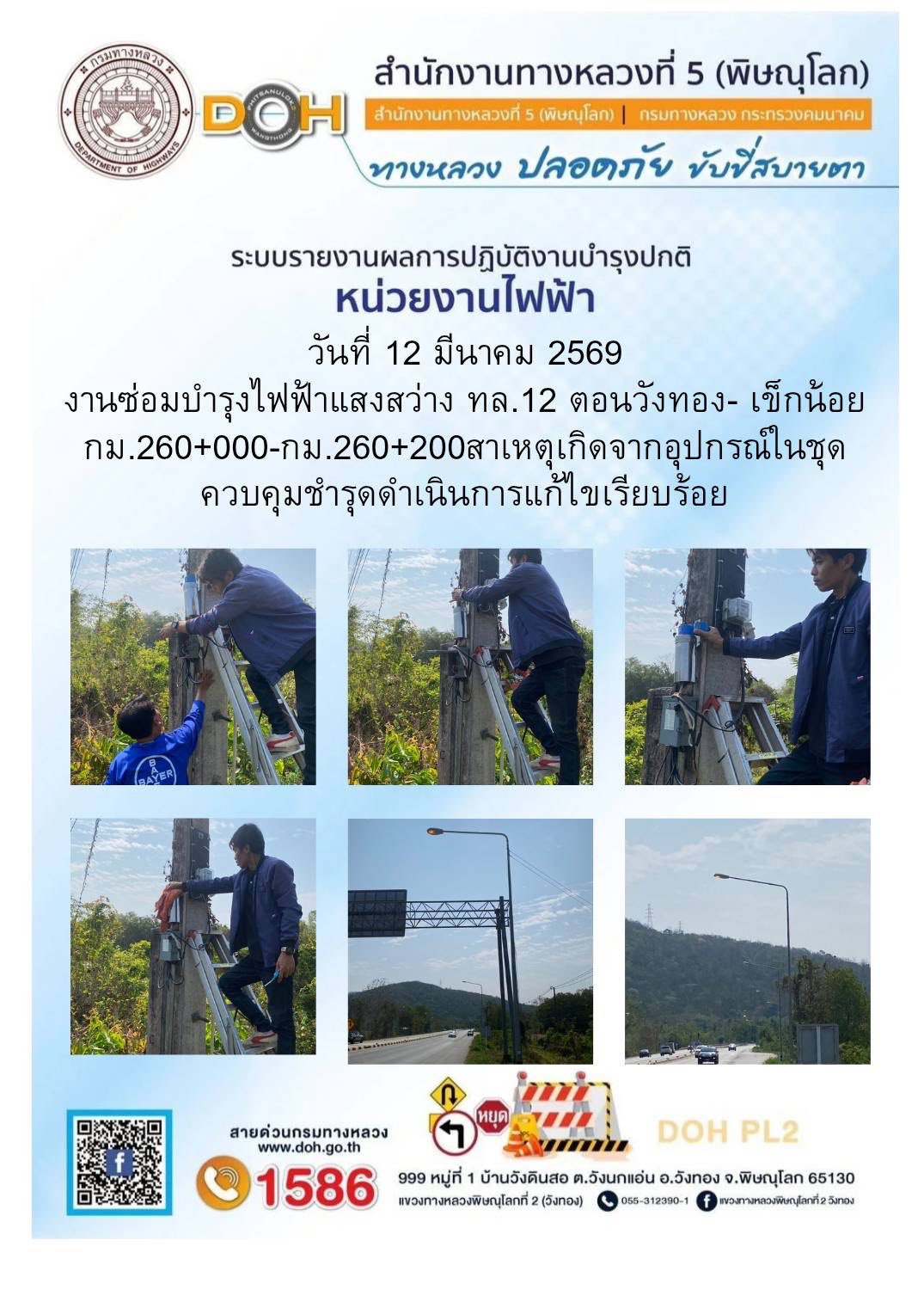 การปฏิบัติงานของ หมวดทางหลวง และ หน่วยงานในสังกัด เพื่ออำนวยความสะดวก และปลอดภัยให้กับประชาชนผู้ใช้เส้นทาง ประจำวันพฤหัสบดี ที่ 12 กุมภาพันธ์ 2569