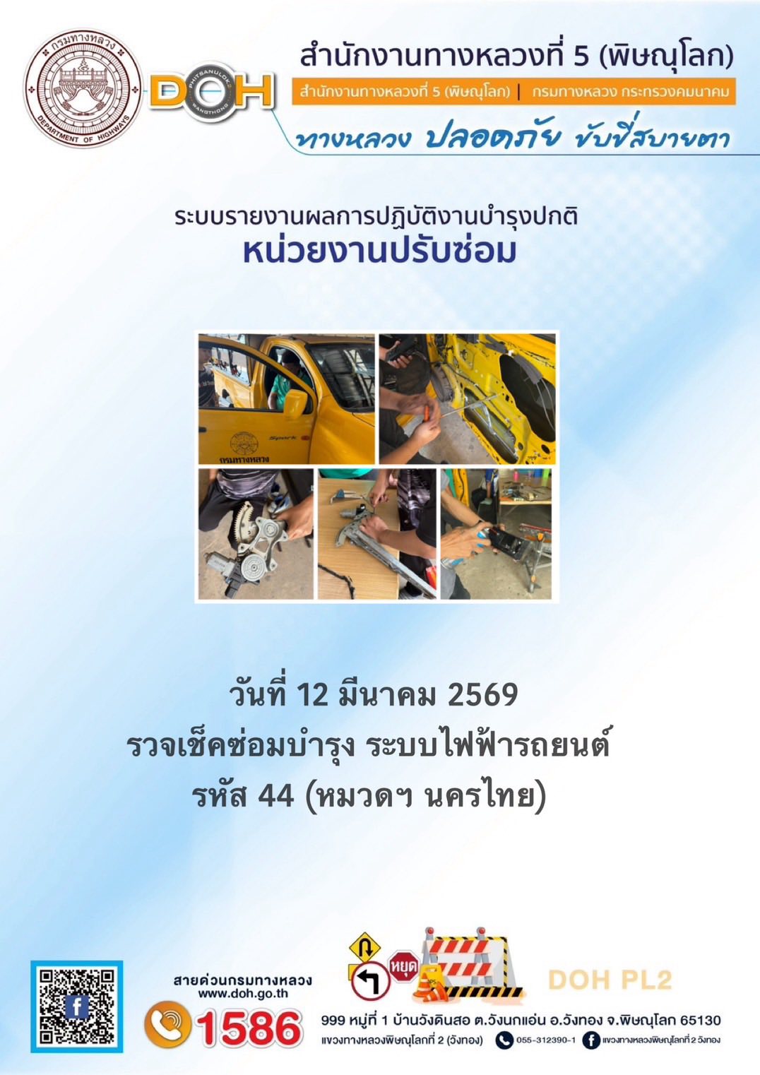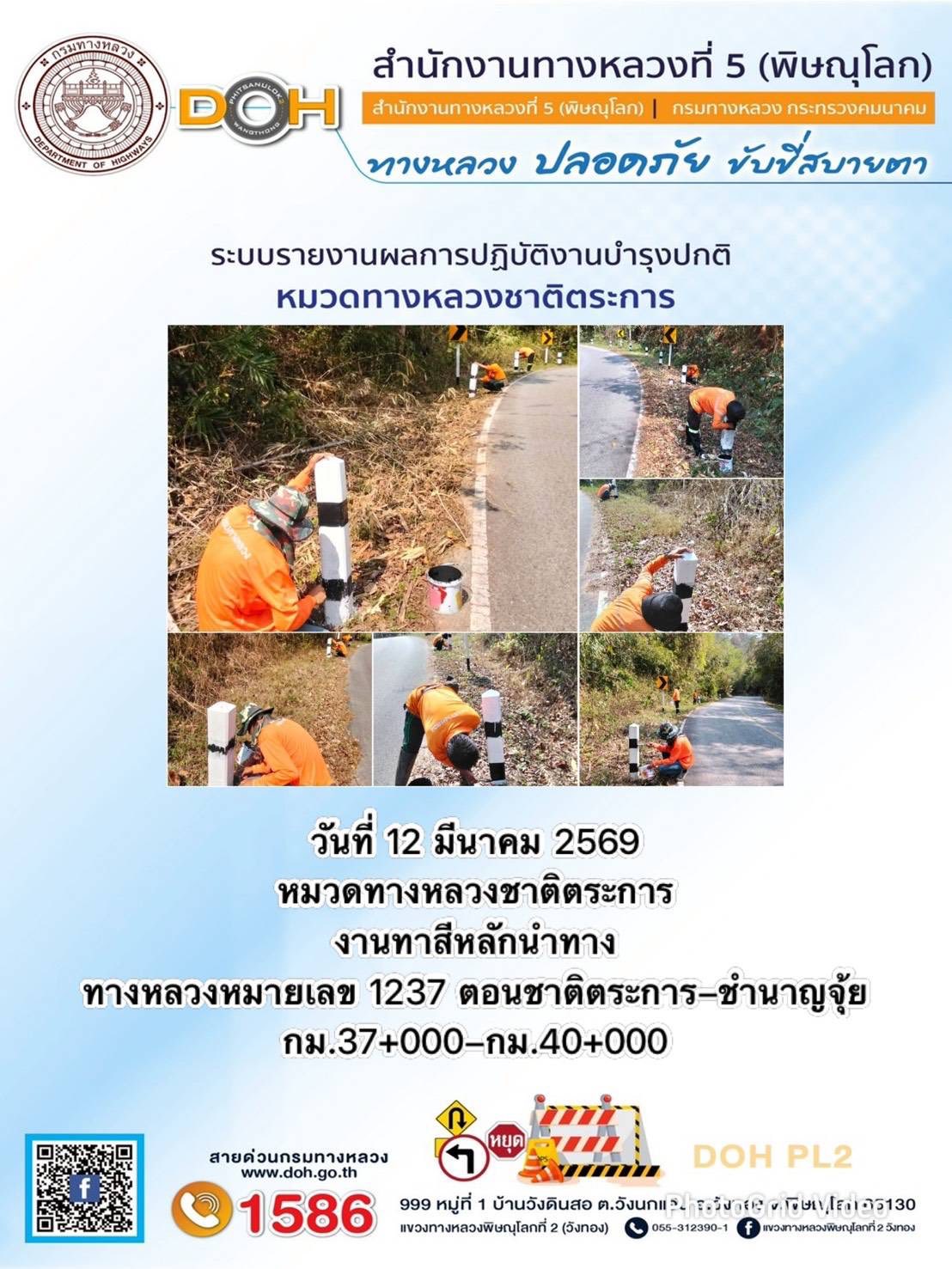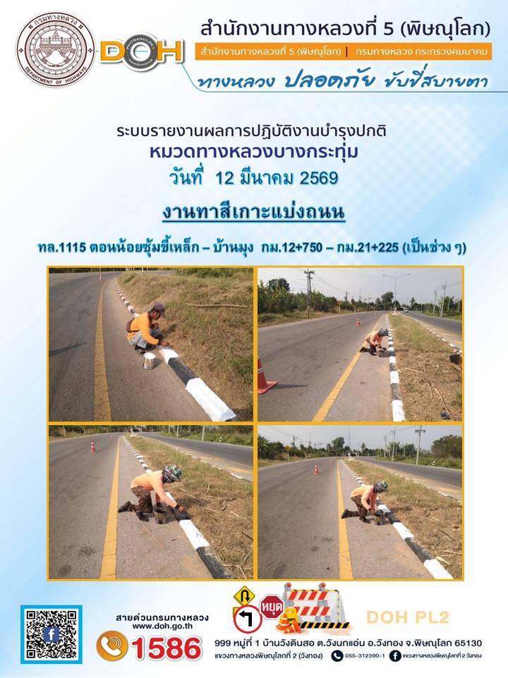 การปฏิบัติงานของ หมวดทางหลวง และ หน่วยงานในสังกัด เพื่ออำนวยความสะดวก และปลอดภัยให้กับประชาชนผู้ใช้เส้นทาง ประจำวันพฤหัสบดี ที่ 12 กุมภาพันธ์ 2569