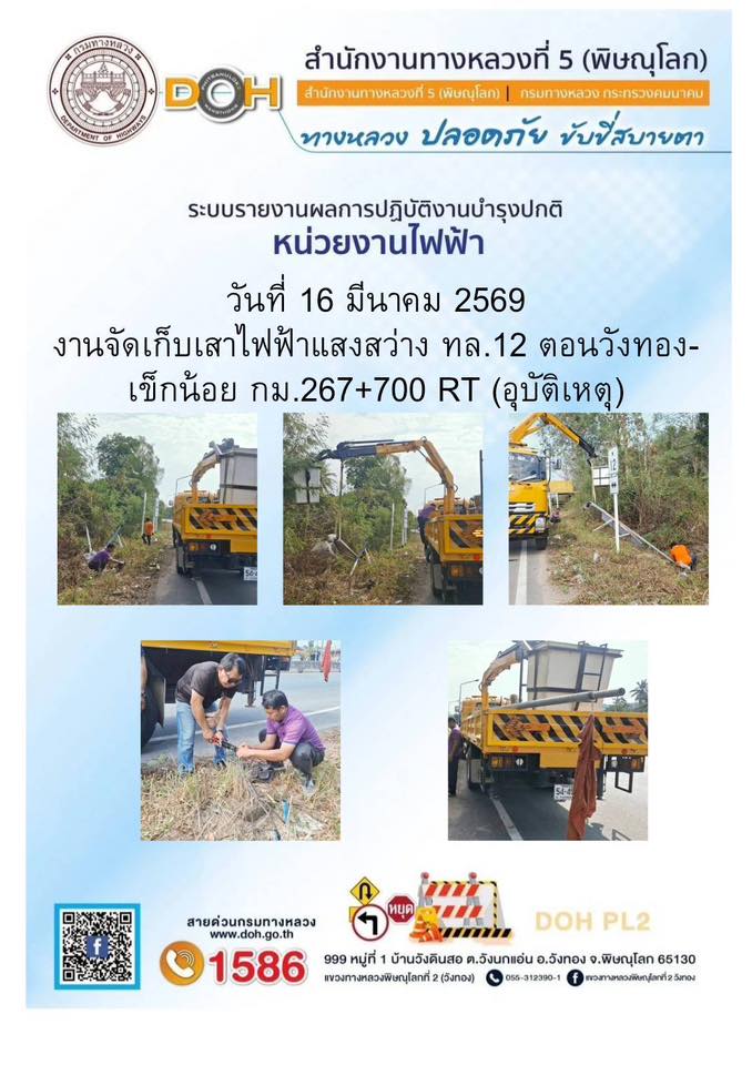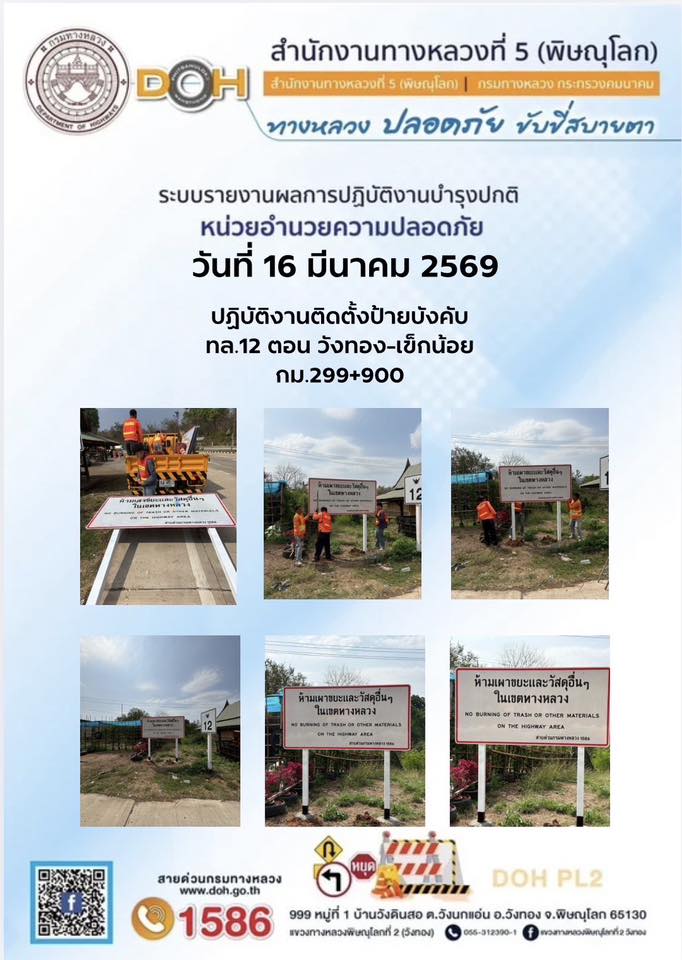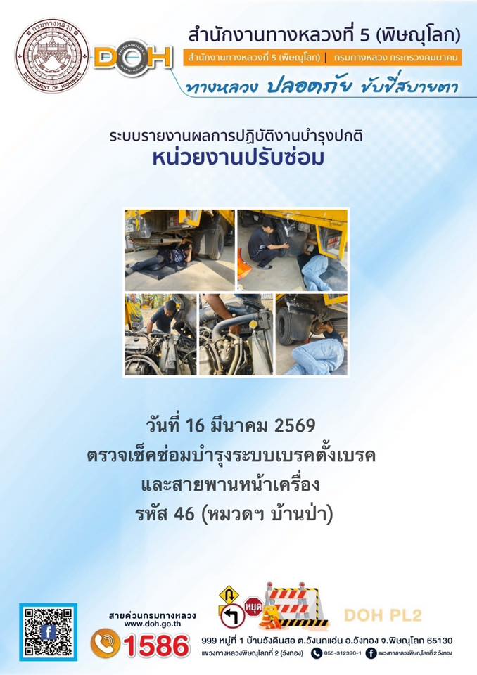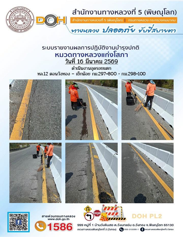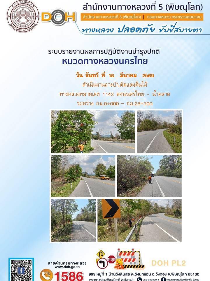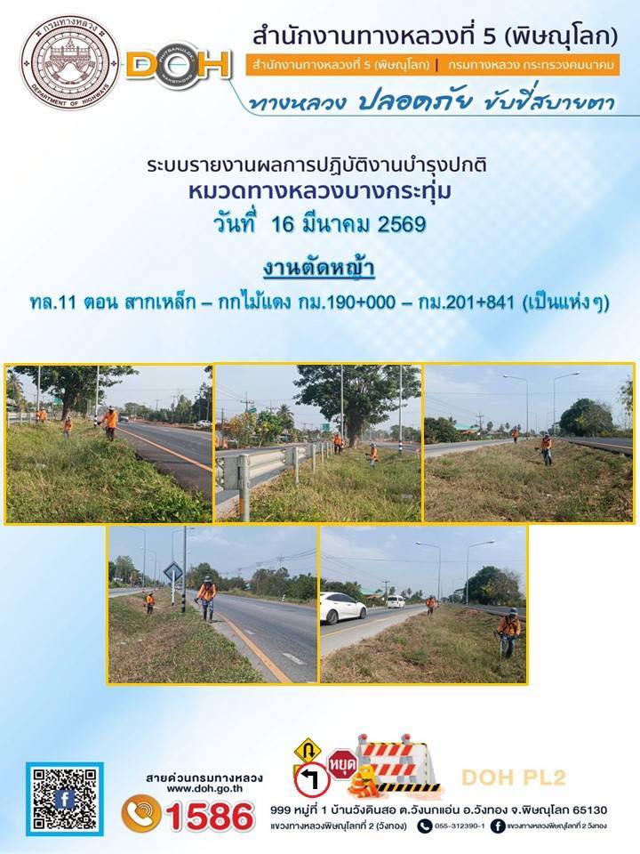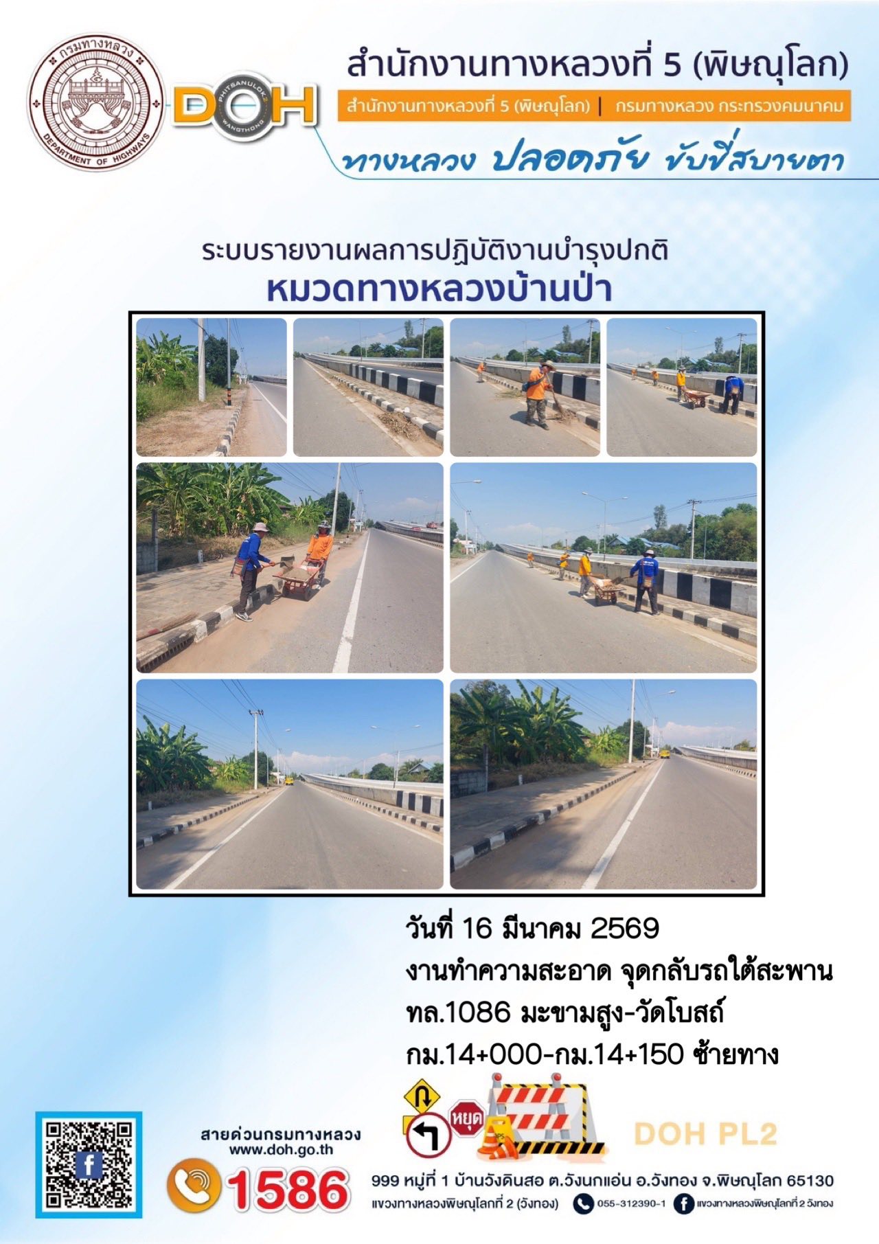 การปฏิบัติงานของ หมวดทางหลวง และ หน่วยงานในสังกัด เพื่ออำนวยความสะดวก และปลอดภัยให้กับประชาชนผู้ใช้เส้นทาง ประจำวันจันทร์ ที่ 16 กุมภาพันธ์ 2569